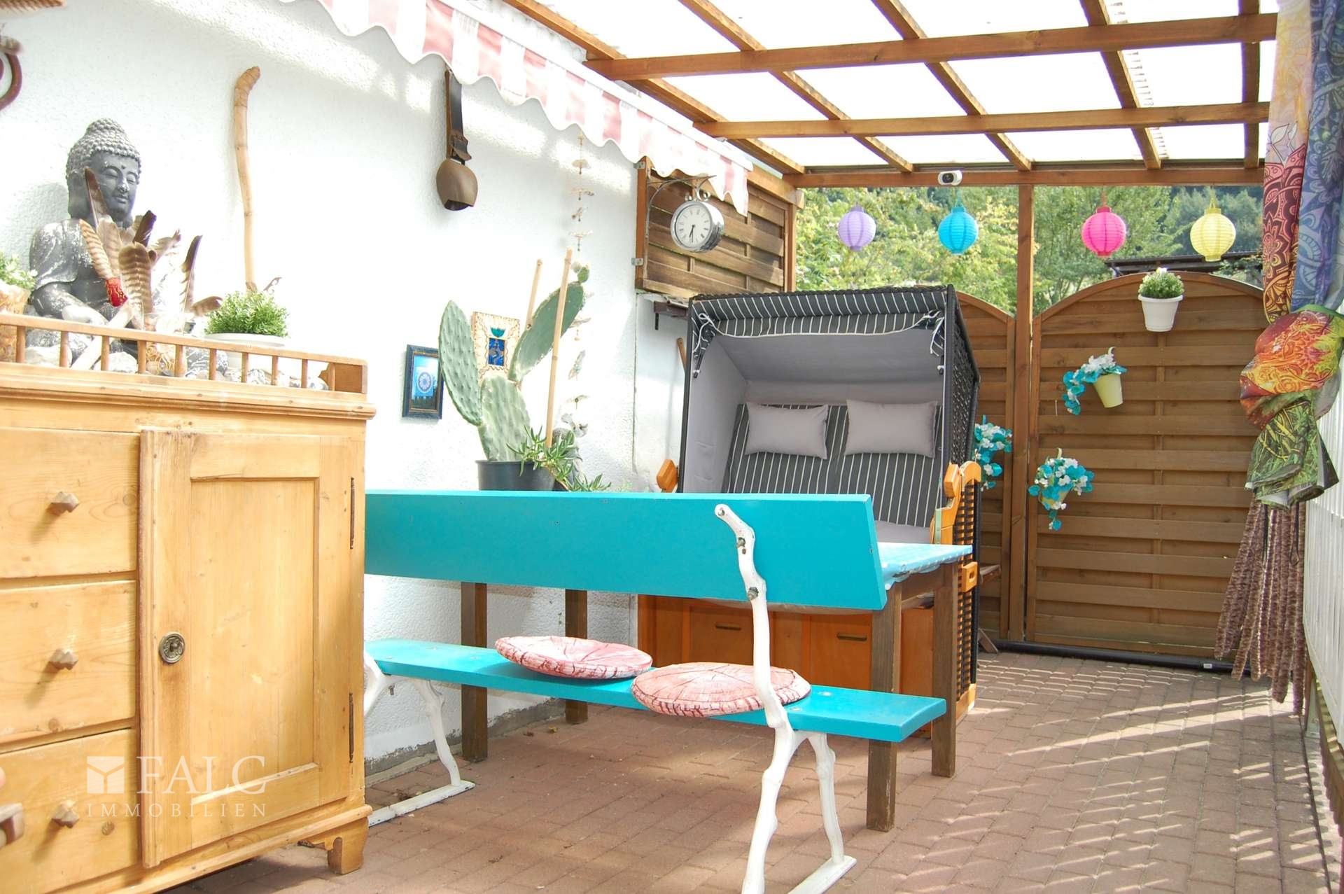 Eine grüne Oase darf bei einer Immobilie natürlich nicht fehlen. In Ihrem zukünftigen Garten, in dem sich ein Schuppen befindet, können Sie aufatmen und eine Pause vom Alltag einlegen. Erzeugen Sie hier Ihren ganz persönlichen Wohlfühlfaktor. Außerdem können Sie sich an einem gepflasterten und überdachten Freisitz erfreuen. Dort lassen sich auch an regnerischen Tagen schöne Stunden im Freien verbringen. Optimalen Sonnenschutz erhalten Sie durch eine unter dem Dach verbaute Markise.