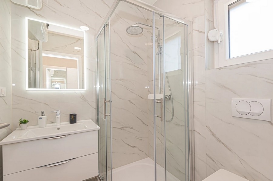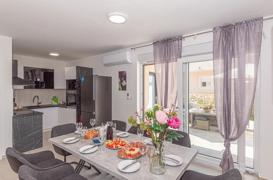Im Außenbereich gibt es einen Swimmingpool, eine Sommerküche und zwei Stellplätze. Die Doppelhaushälfte befindet sich in ruhiger Lage nahe dem Strand von Martinska.