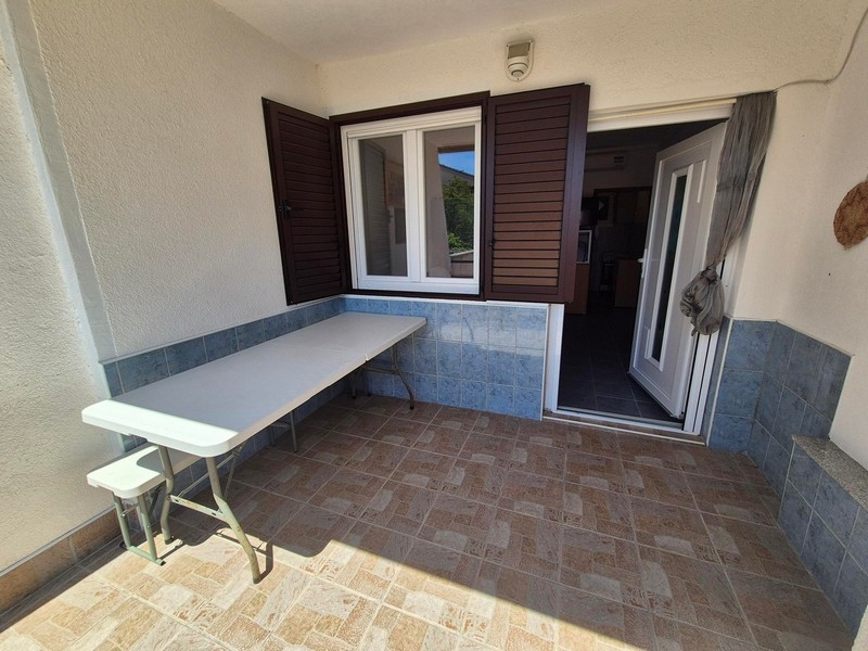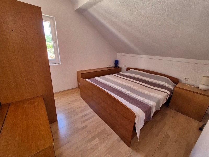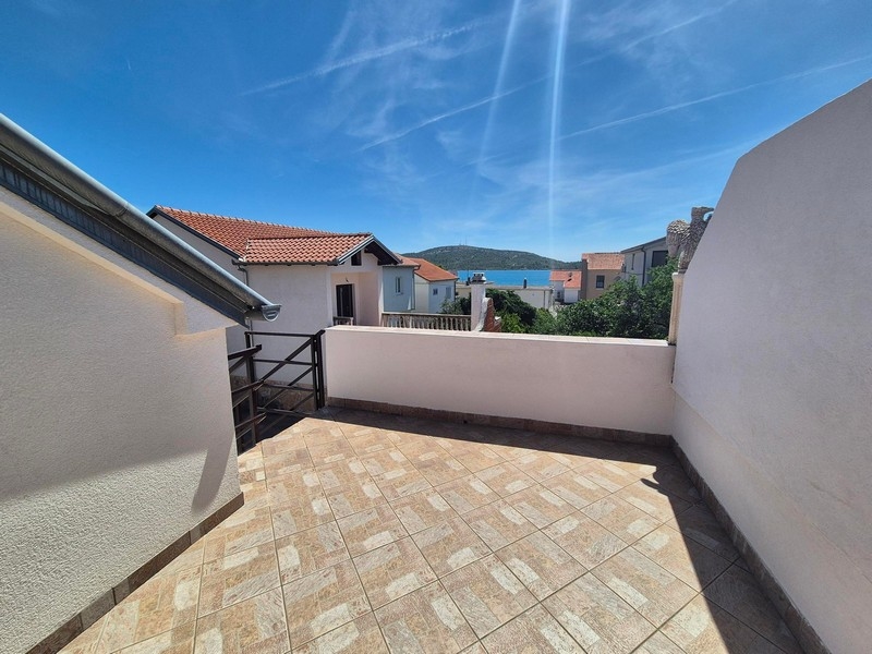 Bei diesem Angebot handelt es sich um eine zentral gelegene Doppelhaushälfte (als Wohnung auf zwei Etagen im Grundbuch eingetragen) mit schönem Meerblick in Pirovac, Region Sibenik.