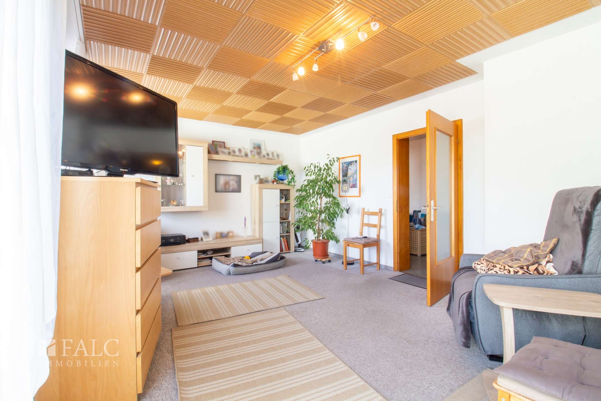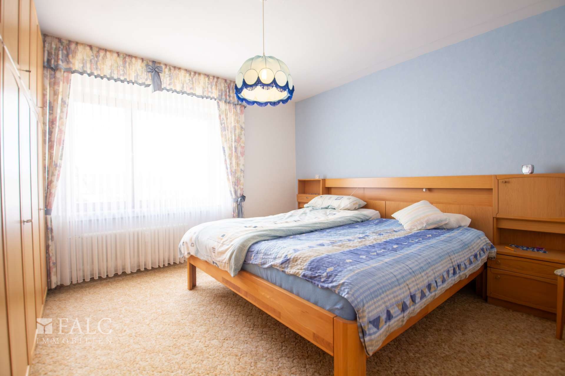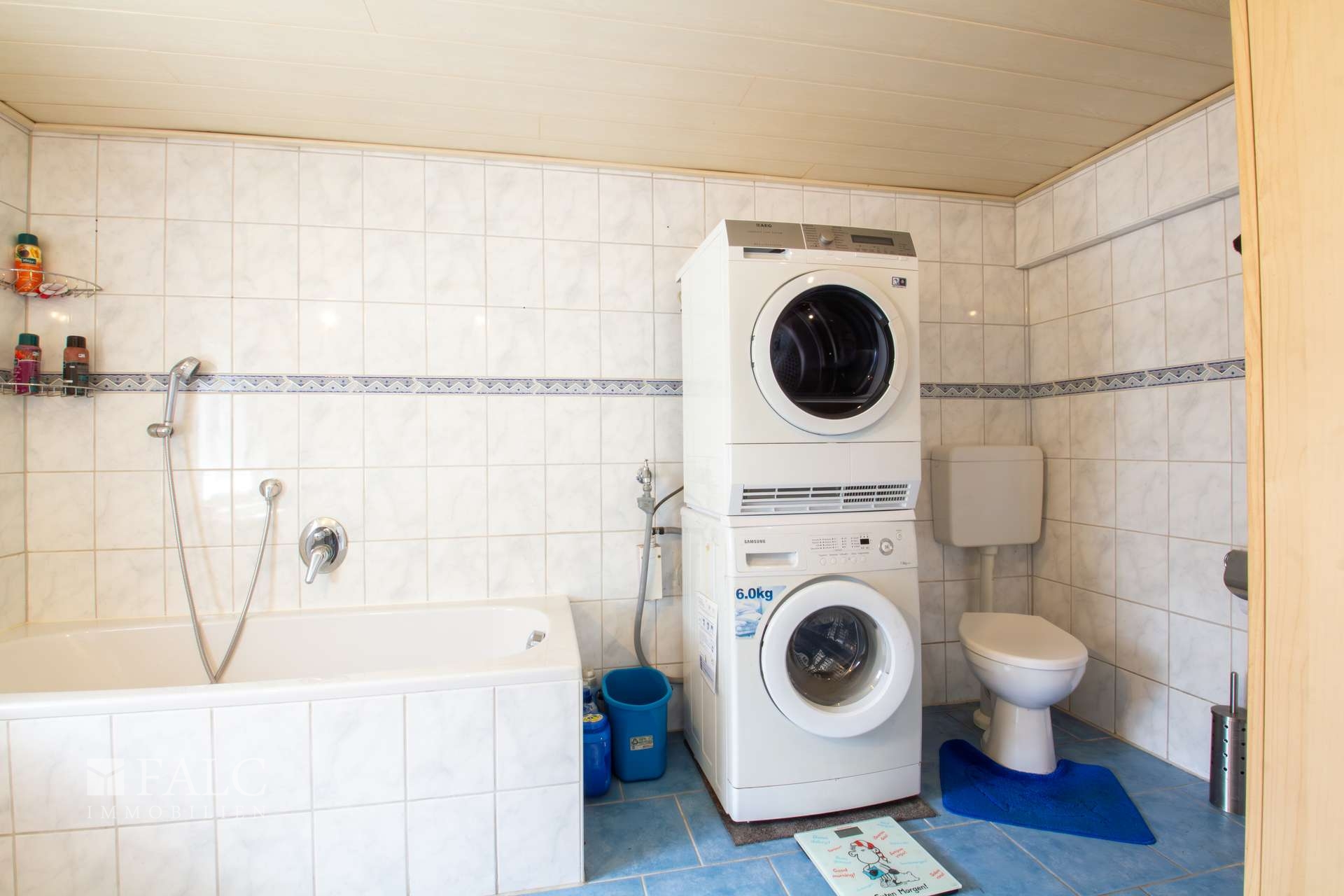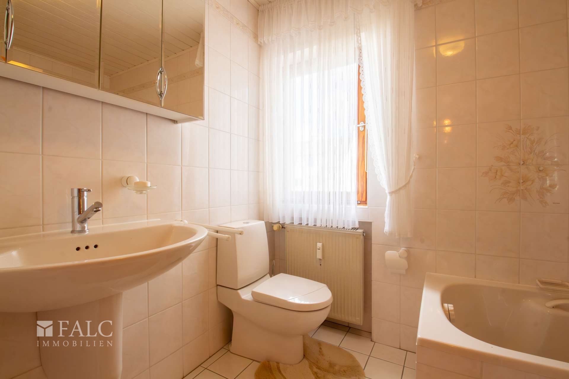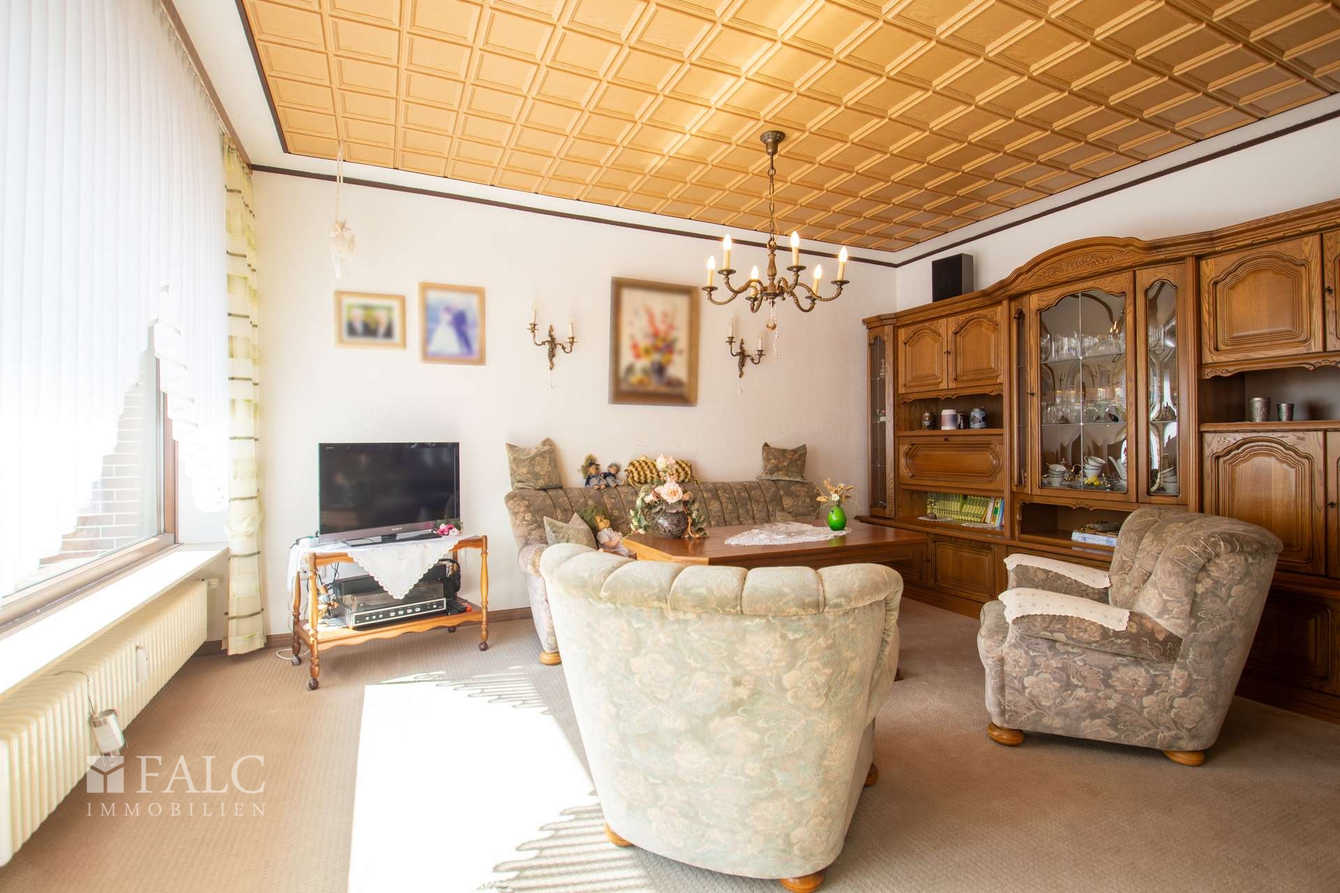 Im folgenden Text wird die Ausstattung des Zweifamilienhauses näher beschrieben. In den Wohnräumen des Wohnhauses sind die Böden im Erdgeschoss mit Teppich und Laminat ausgestattet. In der Küche liegt ein Linoleumboden. Das Dachgeschoss ist mit Teppich und Linoleum ausgestattet. Die Böden im Kellergeschoss sind gefliest. Die zweifachverglasten Holzfenster sind aus dem Baujahr. Einige Fenster wurden im Jahre 2021 durch zweifachverglaste Kunststofffenster erneuert. Alle Fenster sind mit Rollläden ausgestattet. Als Innentüren wurden braune Holztüren und Holztüren mit Glasausschnitt verwendet. Die Verbindungen vom Erd- ins Dachgeschoss und vom Erd- ins Kellergeschoss erfolgen über massive Treppen. Das Haus wird über eine Ölzentralheizung aus dem Jahre 1990 beheizt. In allen Wohnräumen sind Heizkörper vorhanden. Die Warmwassererzeugung erfolgt ebenfalls über die Ölzentralheizung. In der Dachgeschosswohnung wird in der Küche das Wasser über einen Boiler erwärmt. Das Badezimmer im Erdgeschoss ist aus den 90’er Jahren. Es ist mit hellen Wandfliesen raumhoch gefliest. Es verfügt über eine Badewanne und eine Dusche. Das Badezimmer im Dachgeschoss ist raumhoch mit hellen Fliesen gefliest. Es verfügt über eine Badewanne. Das Dach des Wohnhauses ist mit Kunstschieferplatten eingedeckt. Die Dachgeschosswohnung ist derzeit für eine Kaltmiete in Höhe von 370,- Euro vermietet.