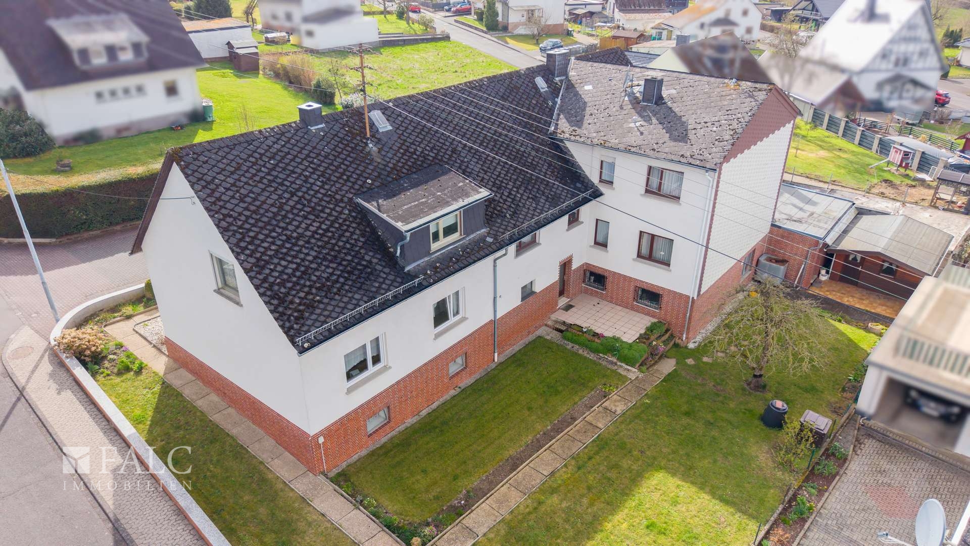Bei der angebotenen Immobilie handelt es sich um ein Einfamilienhaus mit angebautem Zweifamilienhaus. Das Einfamilienhaus ist ungefähr aus dem Jahre 1924 und hatte eine Scheune als Anbau. Diese wurde im späteren Verlauf abgerissen und im Jahre 1967 an dieser Stelle ein Zweifamilienhaus errichtet, welches ab 1968 bezogen wurde. Das Einfamilienhaus und die Dachgeschosswohnung im Zweifamilienhaus sind derzeit vermietet. Die Erdgeschosswohnung ist derzeit nicht bewohnt und kann vermietet oder selbstgenutzt werden.