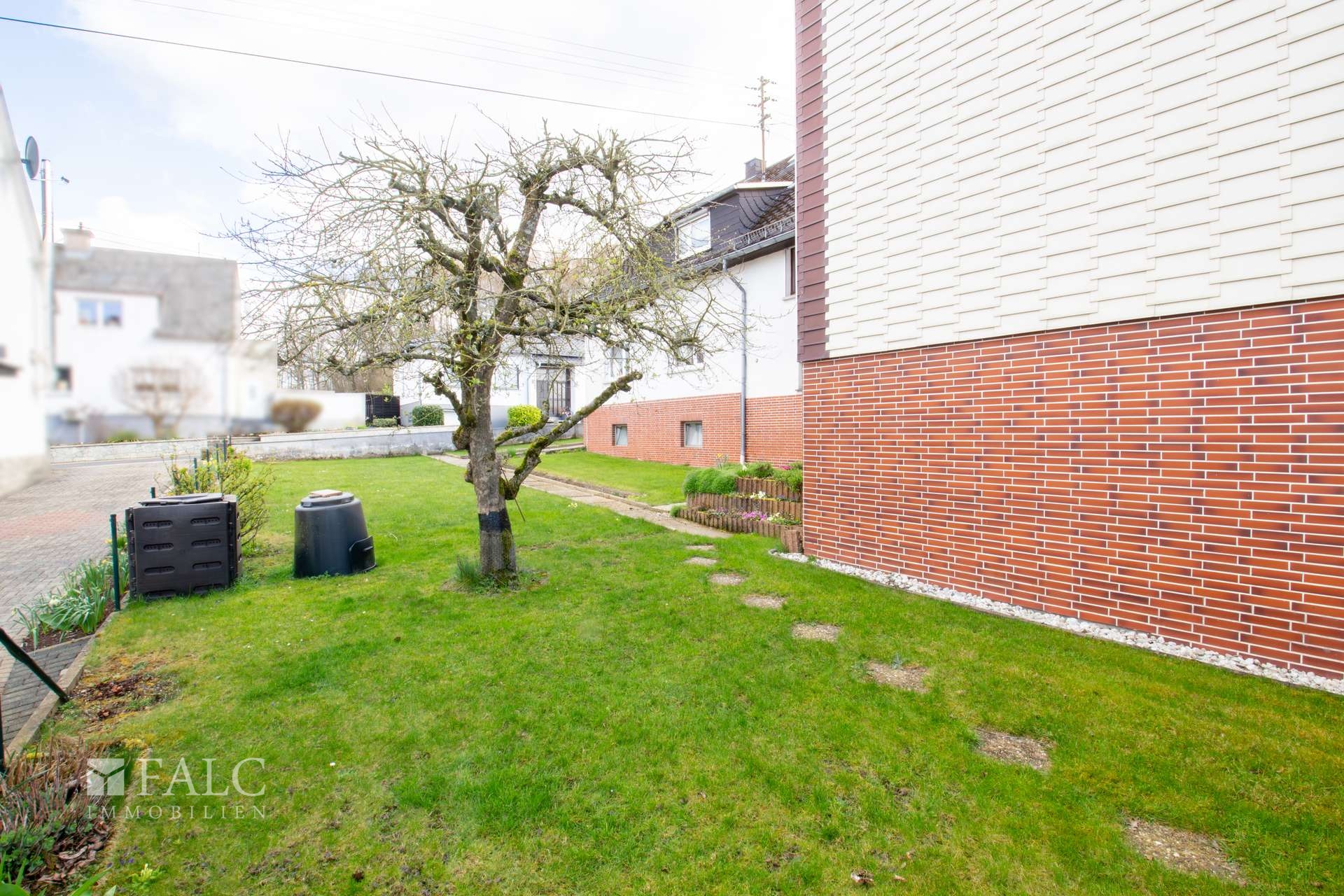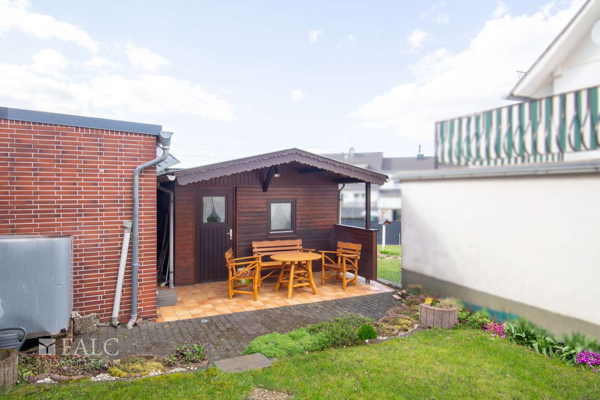 Das Grundstück ist auf der Rückseite eingefriedet und mit Rasenflächen, Sträuchern und einer kleinen Terrasse angelegt. Das Highlight ist eine kleine gemütliche Gartenhütte, die besonders im Sommer für Feste und Feiern einlädt.