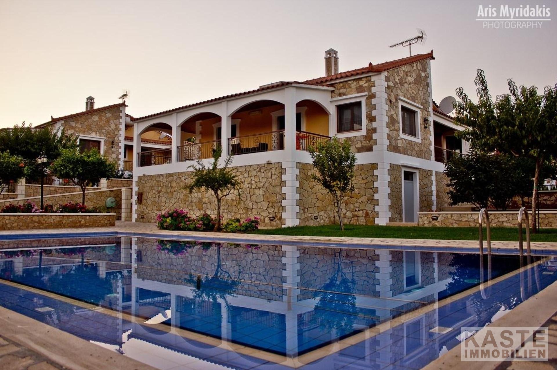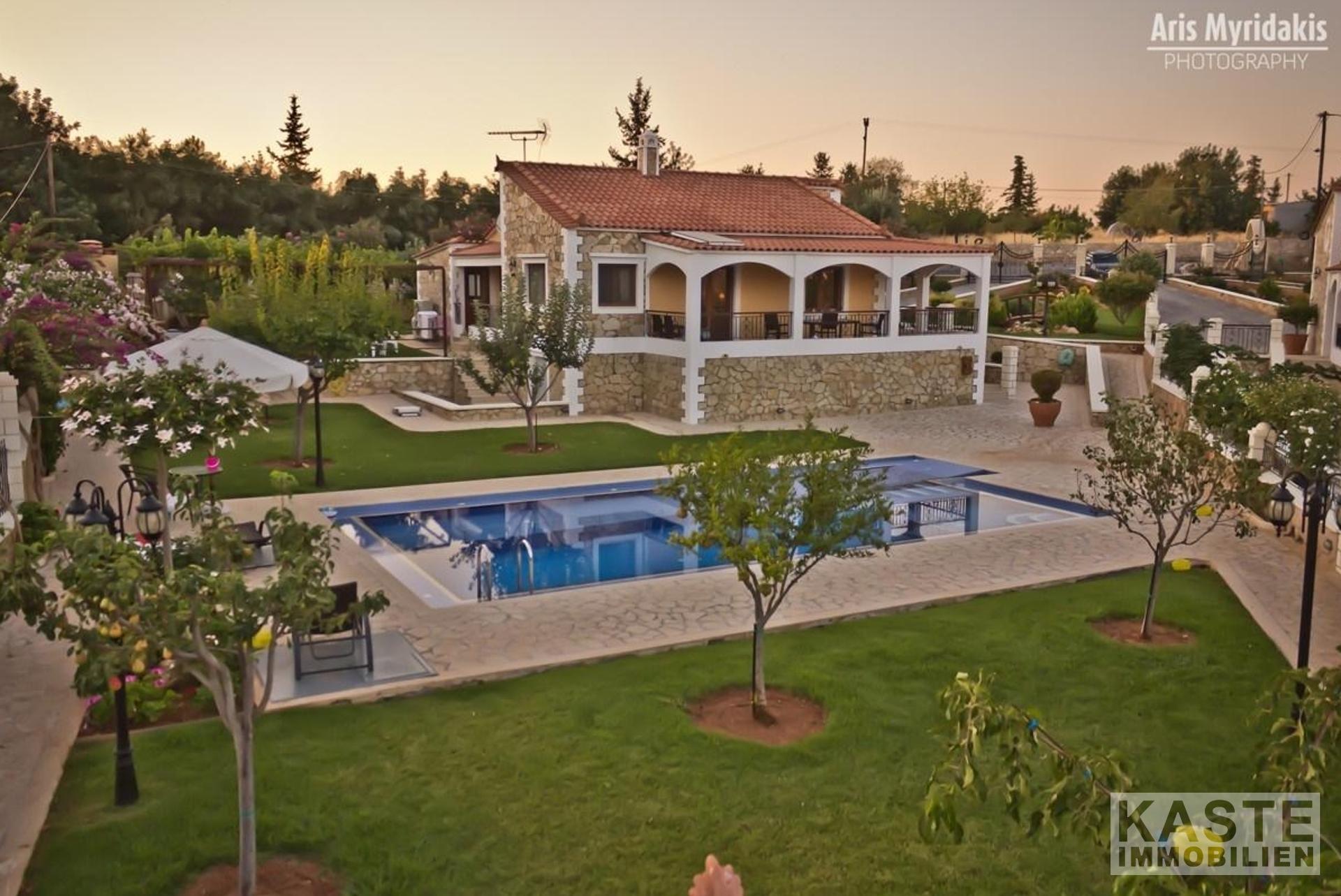 Die 3 Villen wurden im Einklang mit den traditionellen Steinhäusern von Kreta gebaut. Sie sind alle voll möbliert und jedes Haus liegt in seinem eigenen privaten Grundstück mit eigenem Pool. Die Villen bestehen aus jeweils 2 Schlafzimmern, 2 Bädern und einem offenen Küchen-, Wohn- und Essbereich. Jede hat ihren eigenen Pool. Sie sind sehr gut gepflegt und befinden sich auf 2000qm umzäunten Privatgrundstück. Die Villen haben eine Garage, die Einfahrt kann als zusätzlicher Parkplatz genutzt werden.