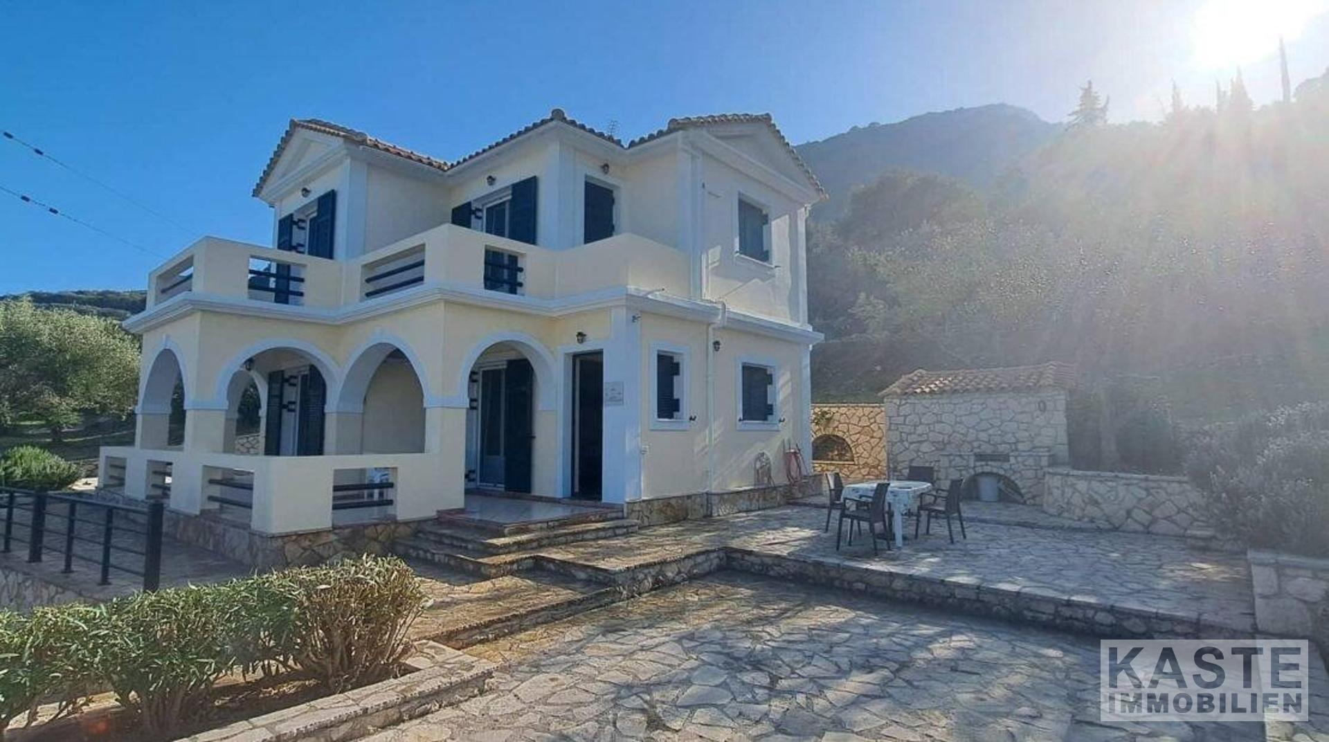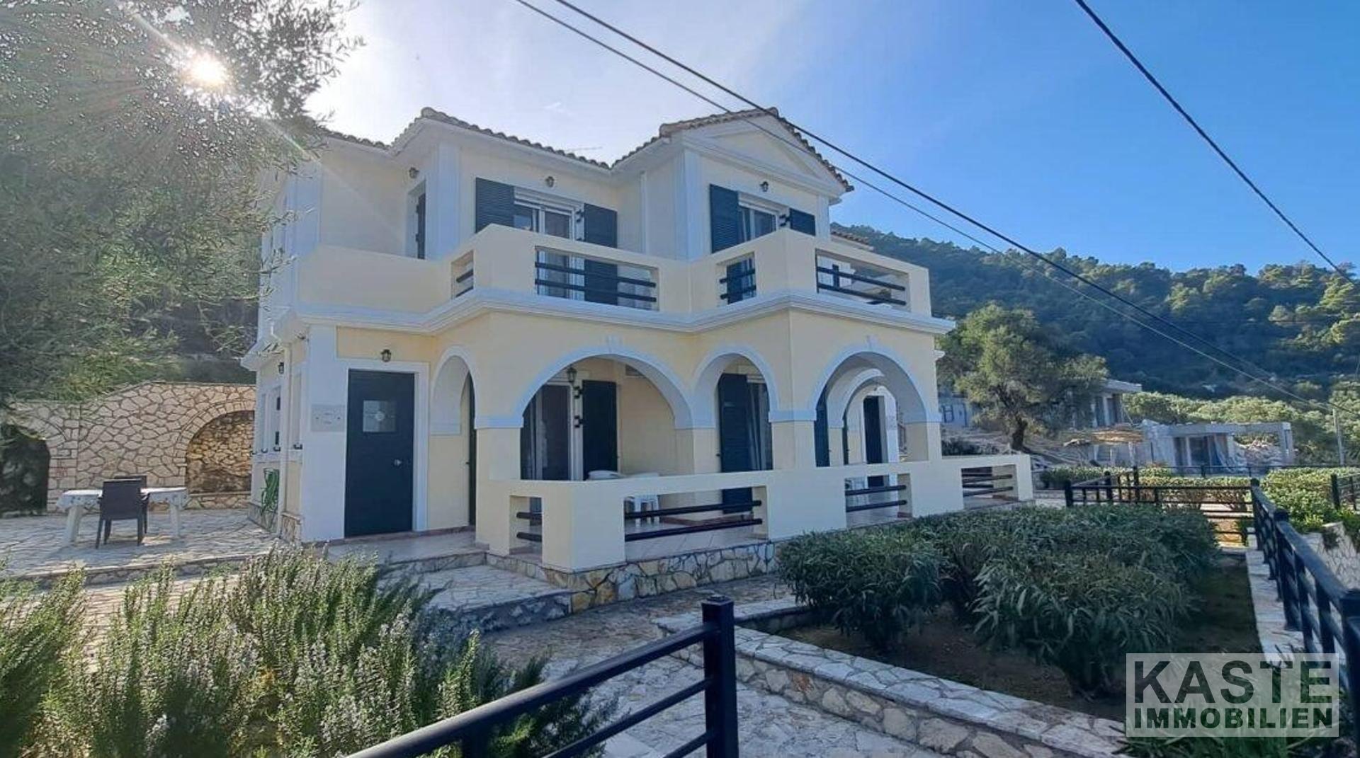 Diese exklusive Villa mit atemberaubendem Panoramablick befindet sich in Marathia, einem äußerst begehrten Ort auf Zakynthos. Die großzügige Immobilie besteht aus einem dreischlafzimmerigen Hauptgebäude mit einer Wohnfläche von 120 m2, wobei zwei der Schlafzimmer sich im oberen Stockwerk befinden, sowie einem separaten Apartment mit einem Schlafzimmer und einer Fläche von 60 m2. Das Anwesen wird in vollständig ausgestattetem Zustand angeboten, inklusive der hochwertigen Innen- und Außendekoration.