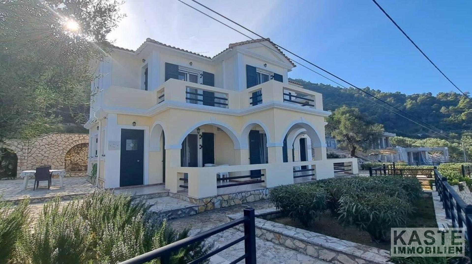 Diese exklusive Villa mit atemberaubendem Panoramablick befindet sich in Marathia, einem äußerst begehrten Ort auf Zakynthos. Die großzügige Immobilie besteht aus einem dreischlafzimmerigen Hauptgebäude mit einer Wohnfläche von 120 m2, wobei zwei der Schlafzimmer sich im oberen Stockwerk befinden, sowie einem separaten Apartment mit einem Schlafzimmer und einer Fläche von 60 m2. Das Anwesen wird in vollständig ausgestattetem Zustand angeboten, inklusive der hochwertigen Innen- und Außendekoration.