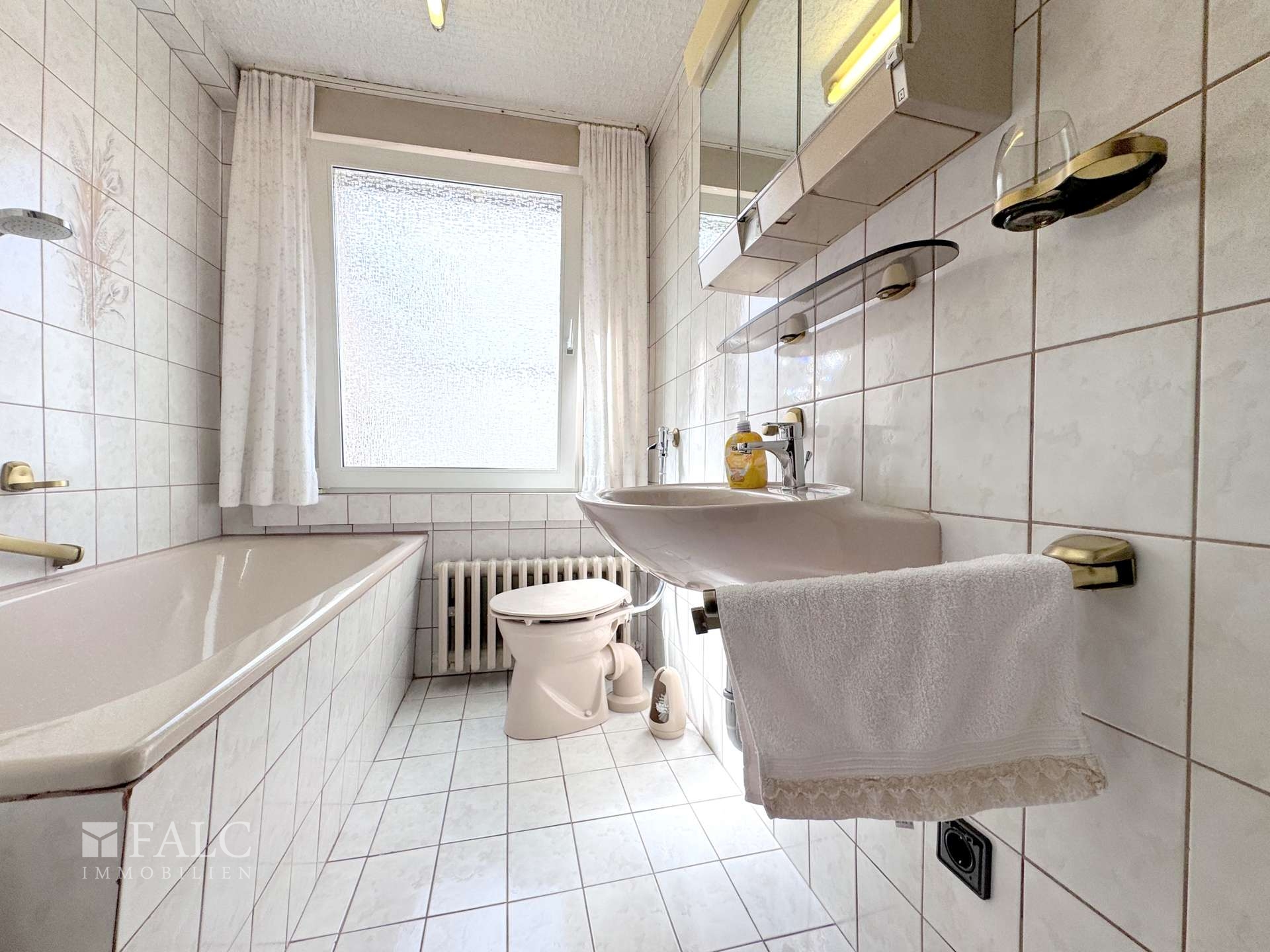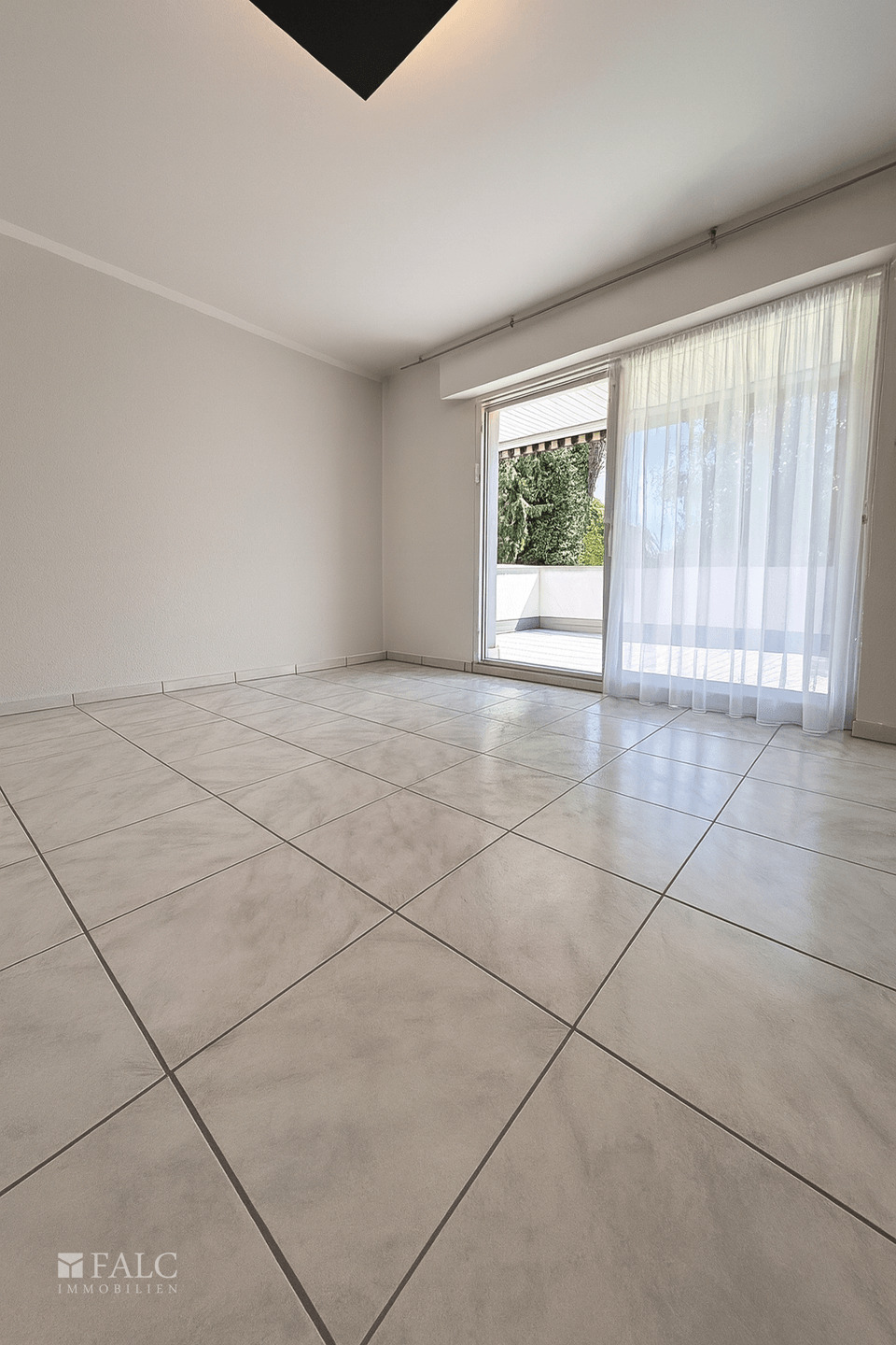 Die Obergeschosswohnung umfasst rund 80 m² und wurde 1996 umfassend modernisiert. Neben einem neu gestalteten Badezimmer erhielt die Wohnung pflegeleichte Fliesen- und Parkettböden, die für eine helle und moderne Wohnatmosphäre sorgen. 2017 wurde zudem der Balkon erneuert, der vom Wohnzimmer und Schlafzimmer aus begehbar ist und einen angenehmen Blick in den Garten eröffnet. Diese Wohnung bietet somit zeitgemäßen Komfort in einem gepflegten Umfeld.