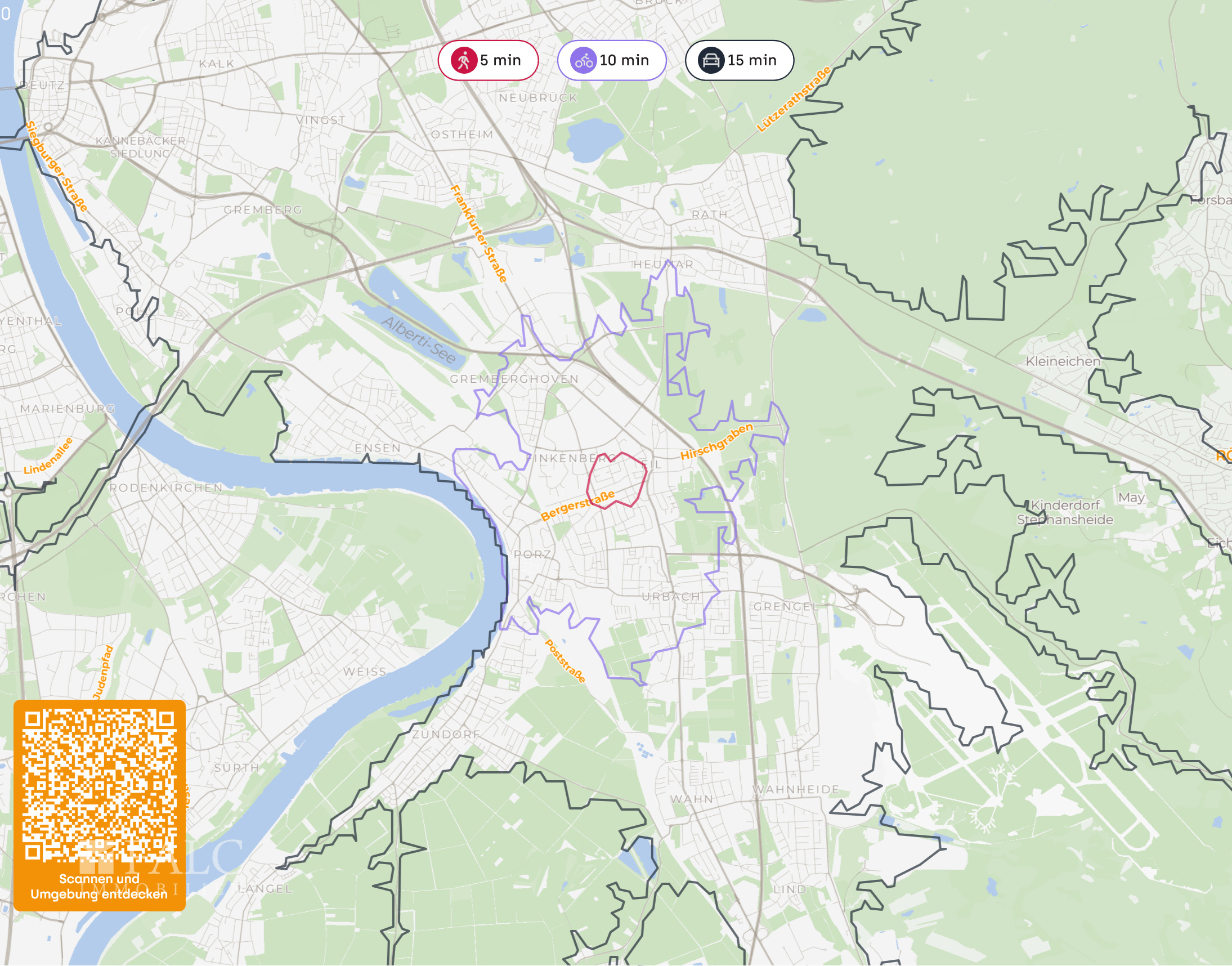 Darüber hinaus besticht die Lage durch eine große Nähe zu attraktiven Naherholungsgebieten. Die Wahner Heide und der Königsforst bieten mit weitläufigen Wald- und Wiesenflächen ideale Möglichkeiten für Spaziergänge, Radtouren und sportliche Aktivitäten. Auch das Rheinufer lädt zum Verweilen ein.