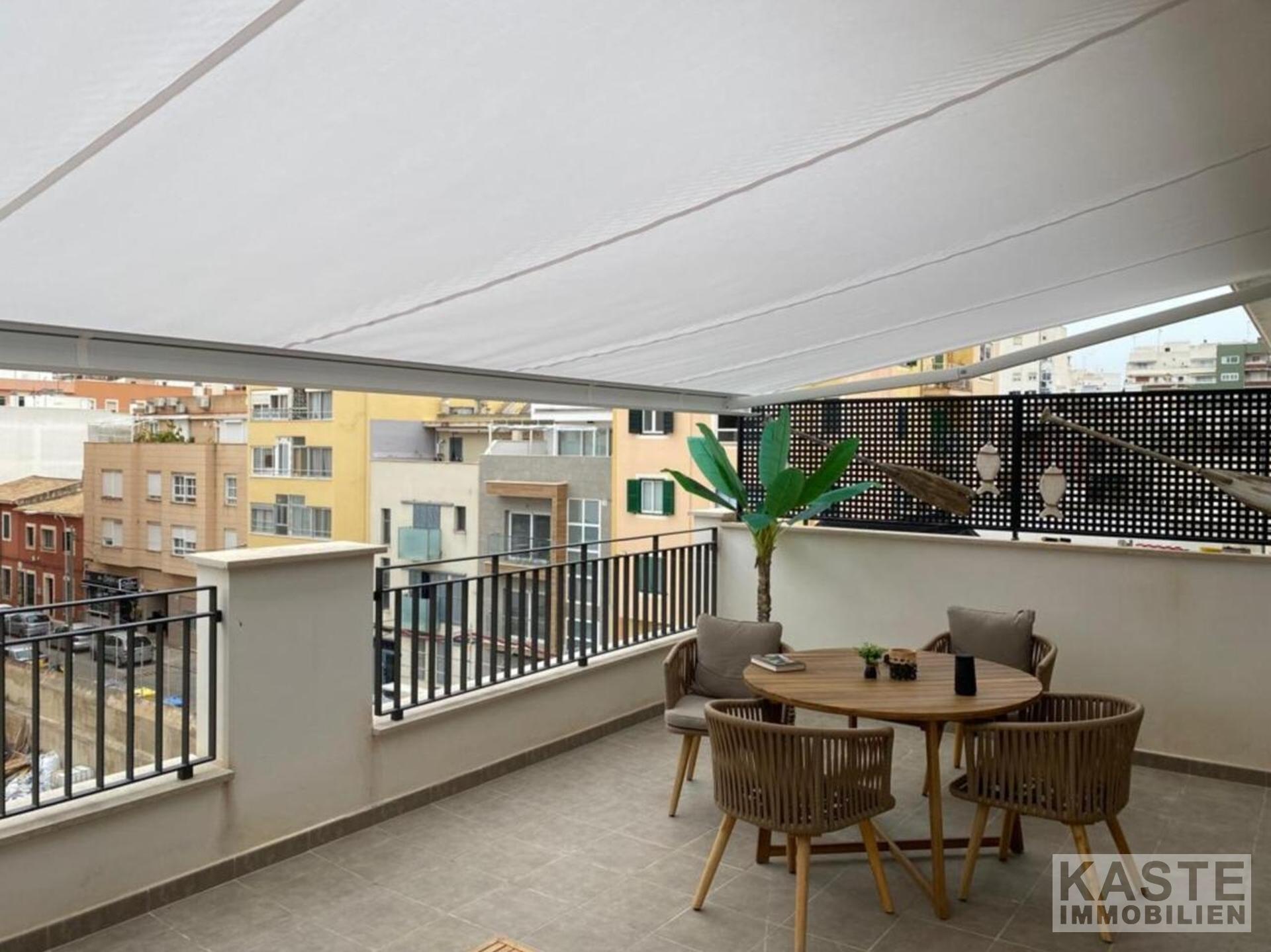 Bei diesem Objekt handelt es sich um einen Duplex der sich über zwei Etagen erstreckt, mit privatem Aufzug. Im ersten Stock gibt es ein großes, helles Wohnzimmer mit Küche und Gäste-WC. In der ersten Etage befinden sich 3 Schlafzimmer mit zwei Bädern. Die Wohnung hat eine Terrasse von 16 m2 und einen Parkplatz, der mit dem Aufzug des Gebäudes erreichbar ist.