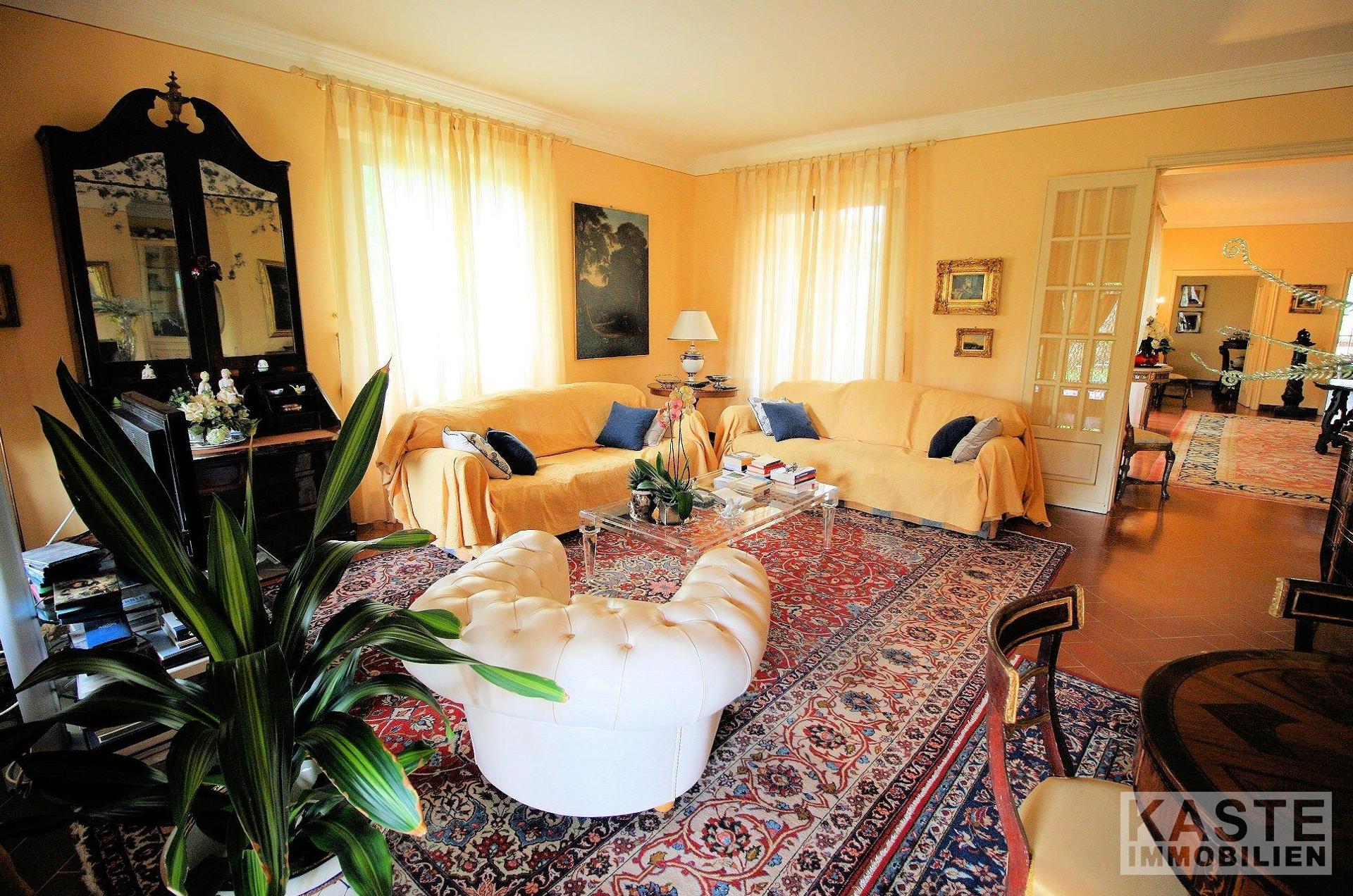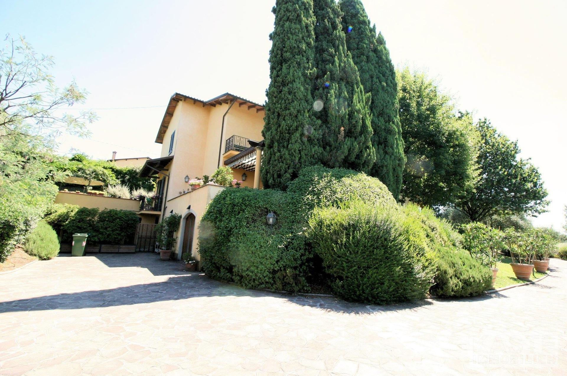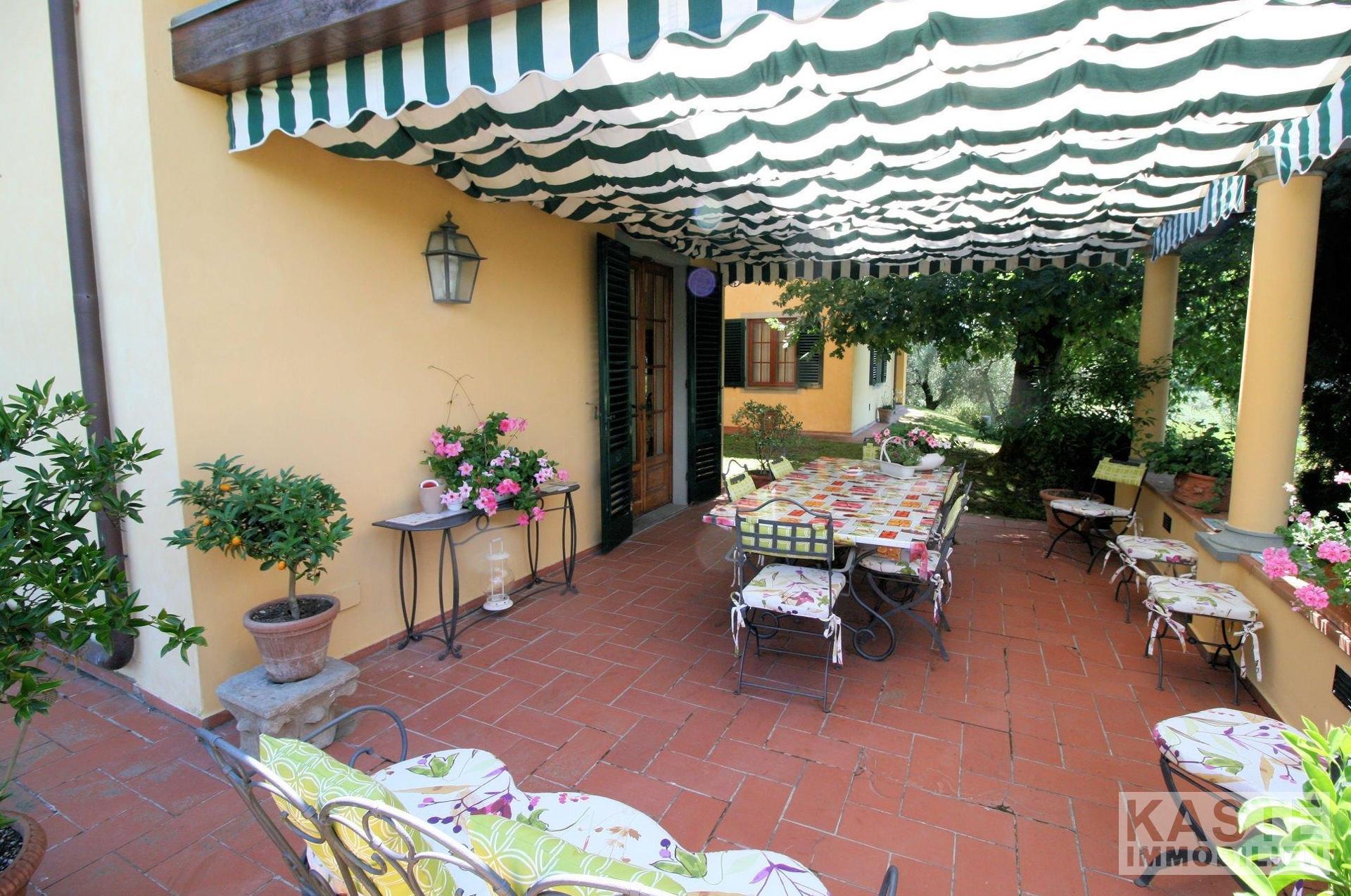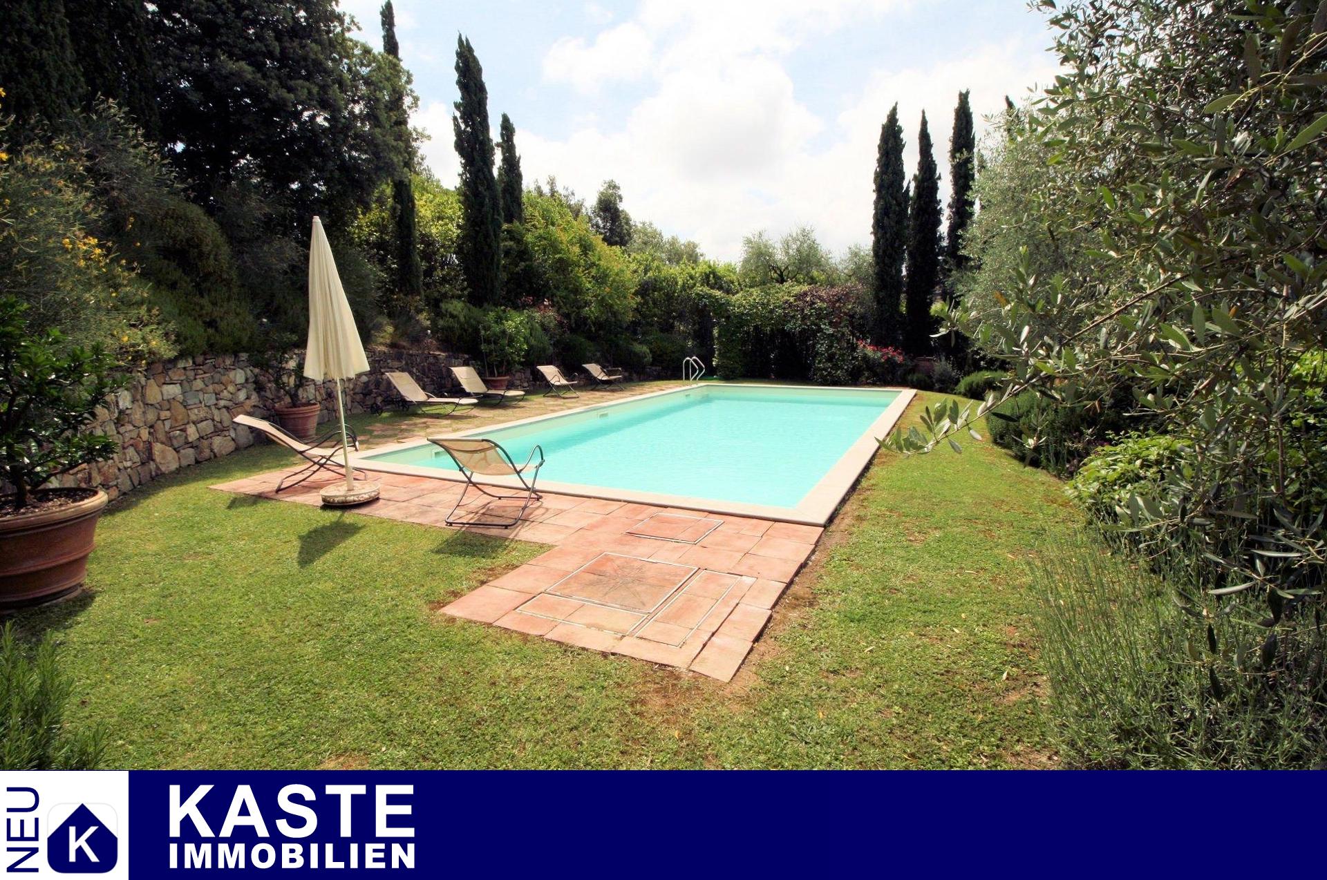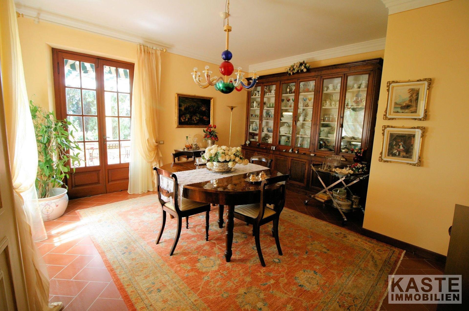 Die Villa steht in der Mitte des Grundstücks und ist komplett eingezäunt. Das Grundstück ist etwa 5000 qm groß. Die Villa ist von einem Park umgeben, der ca. 54.000 qm umfasst. Der sehr gepflegte Garten mit Blumen und Pflanzen sorgt für ein besonderes Flair. Außerdem gibt es einige Dutzend Olivenbäume, die genug Oliven für den Bedarf der Familie produzieren. In einem privaten Bereich in der Nähe der Villa gibt es einen schönen Swimmingpool von 11×5 m mit einer breiten Sonnenterrasse. Sie erreichen die Villa über eine von Bäumen umgebene Straße mit Zypressen und Hecken, die die Villa aufwerten. Die Villa ist 518 qm groß und besitzt 2 Etagen + 1 Keller. Das Erdgeschoss hat einen großzügigen Eingangsbereich, eine große Küche im Lucca-Stil mit Hauswirtschaftsraum, ein Esszimmer mit Zugang zur Terrasse, auf der Sie schöne Mahlzeiten im Freien mit Verwandten und Freunden genießen können, ein Wohnzimmer mit Kamin und Zugang zur Veranda. Eine Holztreppe führt in den ersten Stock, wo sich ein Badezimmer und die Schlafzimmer befinden. Außerdem befindet sich dort ein Hauptschlafzimmer mit begehbarem Kleiderschrank und Bad mit Jacuzzi und direktem Zugang zur Terrasse mit herrlichem Panoramablick, ein weiteres Schlafzimmer inklusive Bad, 2 weitere Schlafzimmer und ein weiteres Bad. Im Untergeschoss gibt es ein großes Wohnzimmer, einen Studioraum, eine Waschküche, einen Hauswirtschaftsraum und ein Badezimmer. Die Villa ist in perfektem Zustand und hat eine sehr gute Ausstattung.