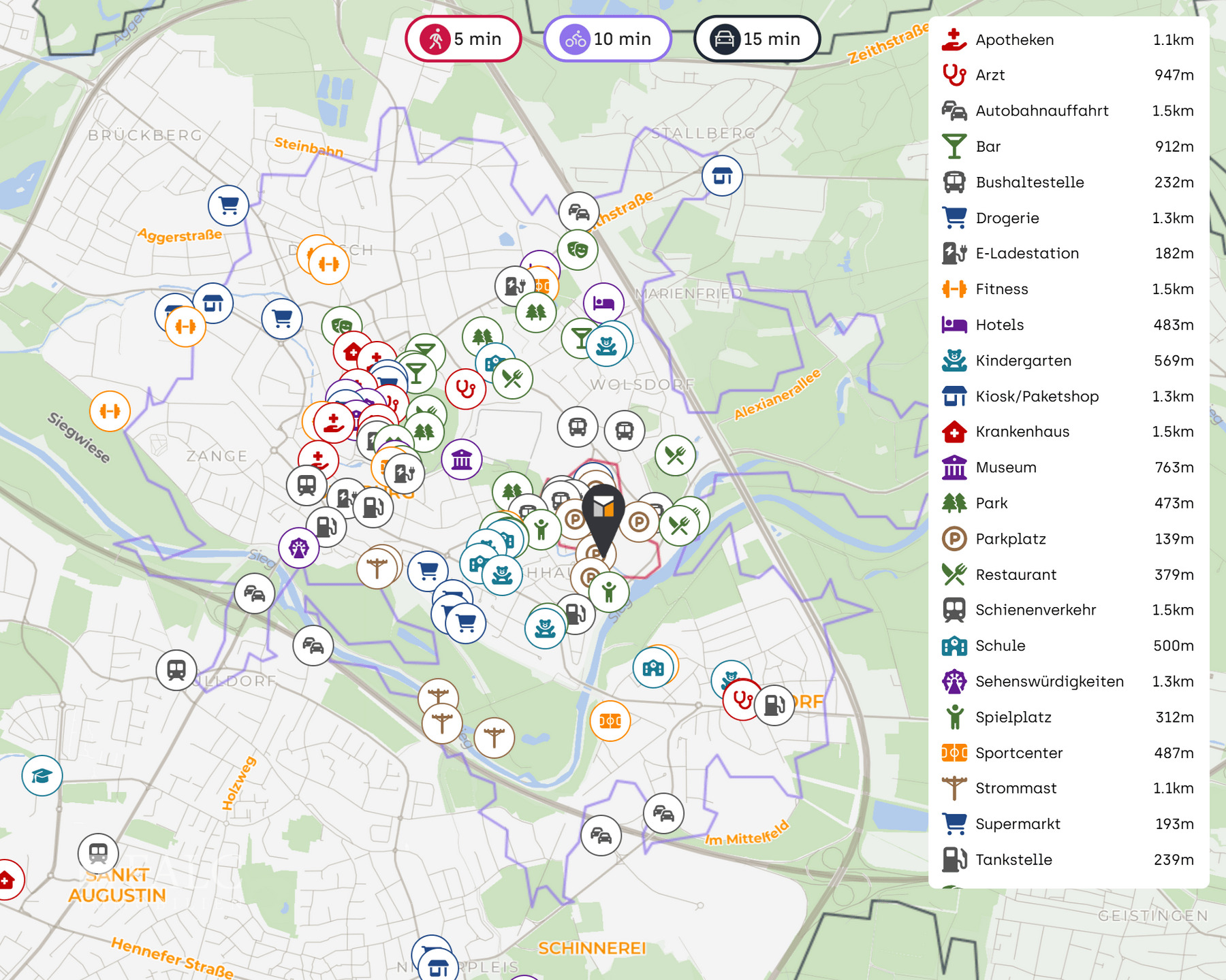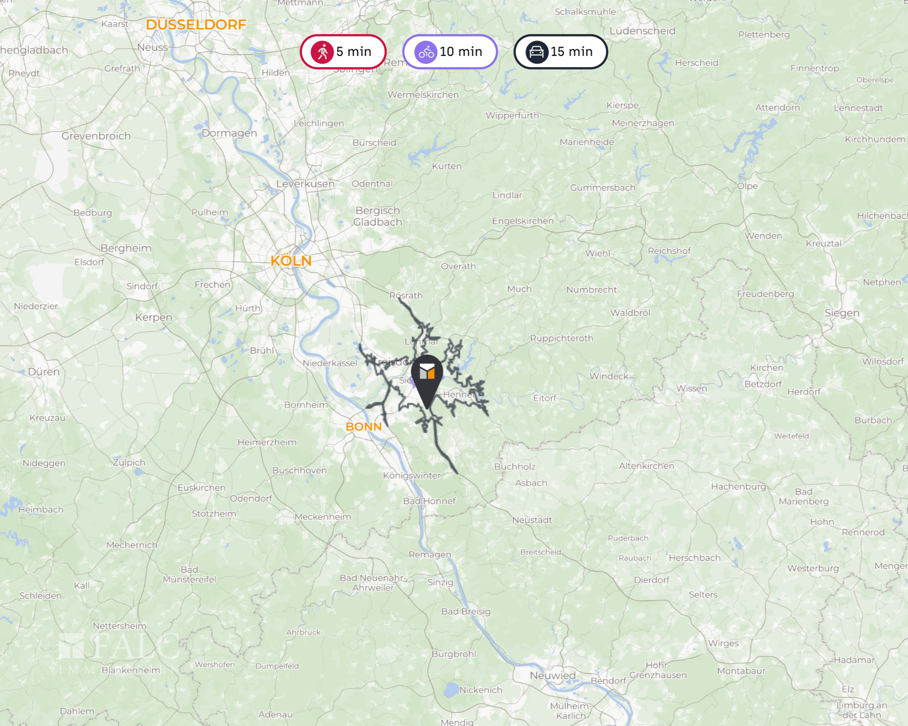 - die Autobahn, insbesondere die A 3 und die A 560 - den ICE-Bahnhof Siegburg (2,5 km) - den Flughafen Köln/Bonn (9 km).