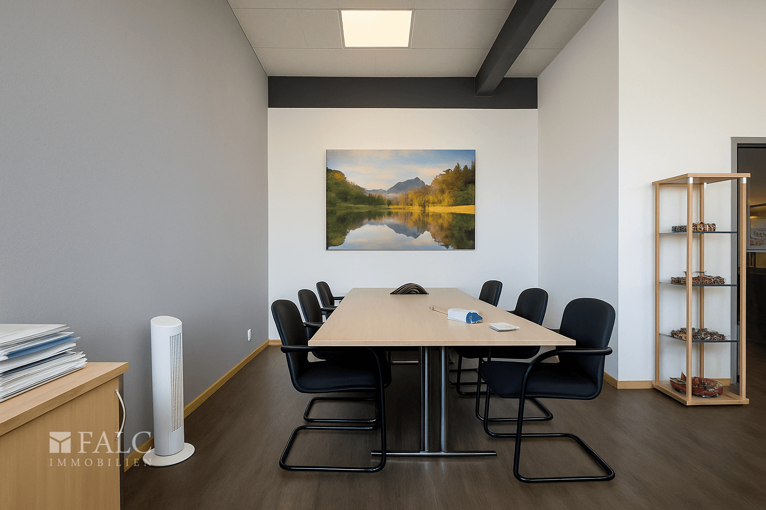 Dieses Büro vereint modernes Design mit praktischer Funktionalität und bietet Gewerbetreibenden ein repräsentatives Arbeitsumfeld mit Wohlfühlfaktor.