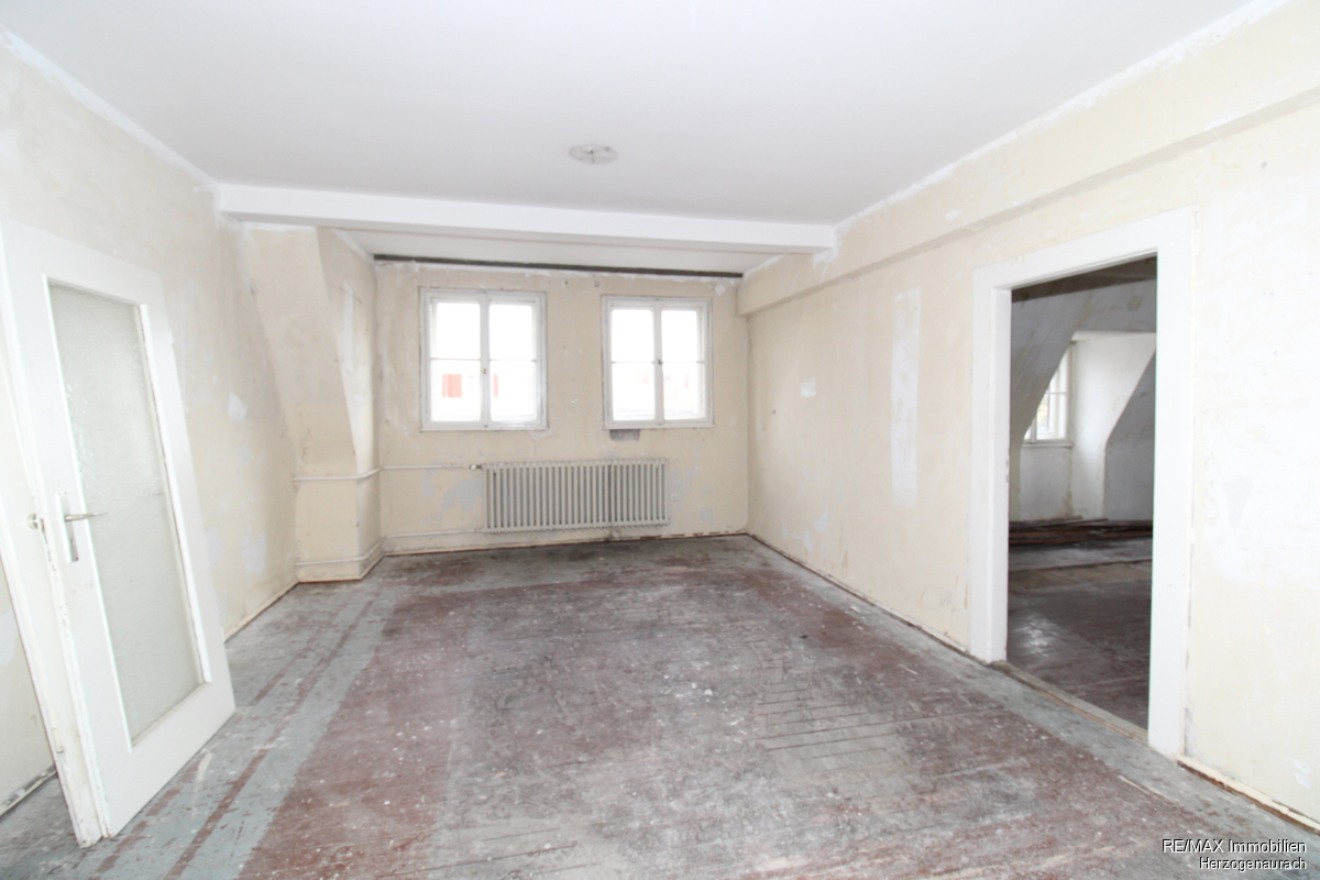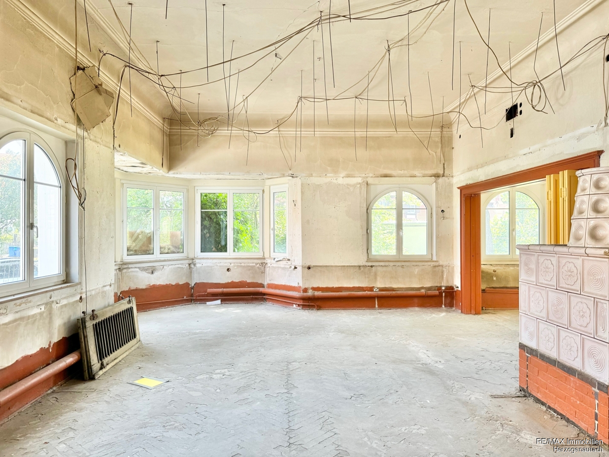 1. Obergeschoss – Große Wohnung: Im ersten Obergeschoss befindet sich eine großzügige Wohnung, die mit etwas Vision und Sanierung zu einem modernen und stilvollen Wohnbereich ausgebaut werden kann. Die hohen Decken, großen Fenster und die charakteristische Architektur bieten ein besonderes Flair und Potenzial für ein einmaliges Wohnkonzept.