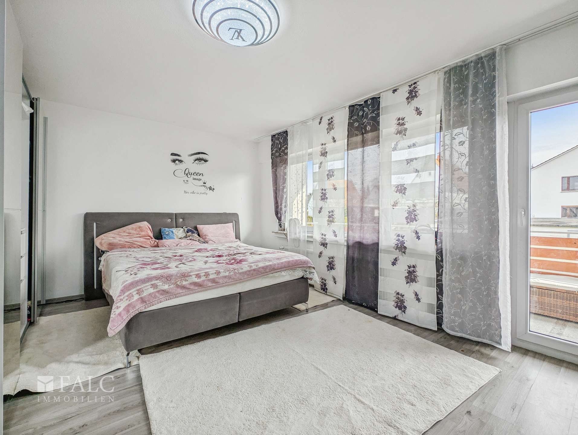 Im Obergeschoss befinden sich die privaten Rückzugsorte der Familie. Drei Schlafzimmer bieten jedem Familienmitglied seinen eigenen Raum zur Entfaltung. Das Hauptschlafzimmer ist großzügig geschnitten und verfügt über einen eigenen Balkon zur Südseite, auf dem Sie beim morgentlichen Kaffee den Blick in den Garten genießen werden. Ein weiteres Zimmer kann als Kinderzimmer, Gästezimmer oder Homeoffice genutzt werden. Das Badezimmer auf dieser Etage ist mit einer Badewanne und einer separaten Dusche ausgestattet.