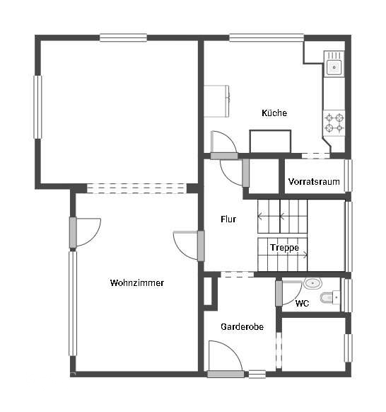 Die Küche ist funktional gestaltet und bietet mit angrenzender Vorratskammer genügend Stauraum sowie Arbeitsfläche, um kulinarische Kreationen zu verwirklichen.