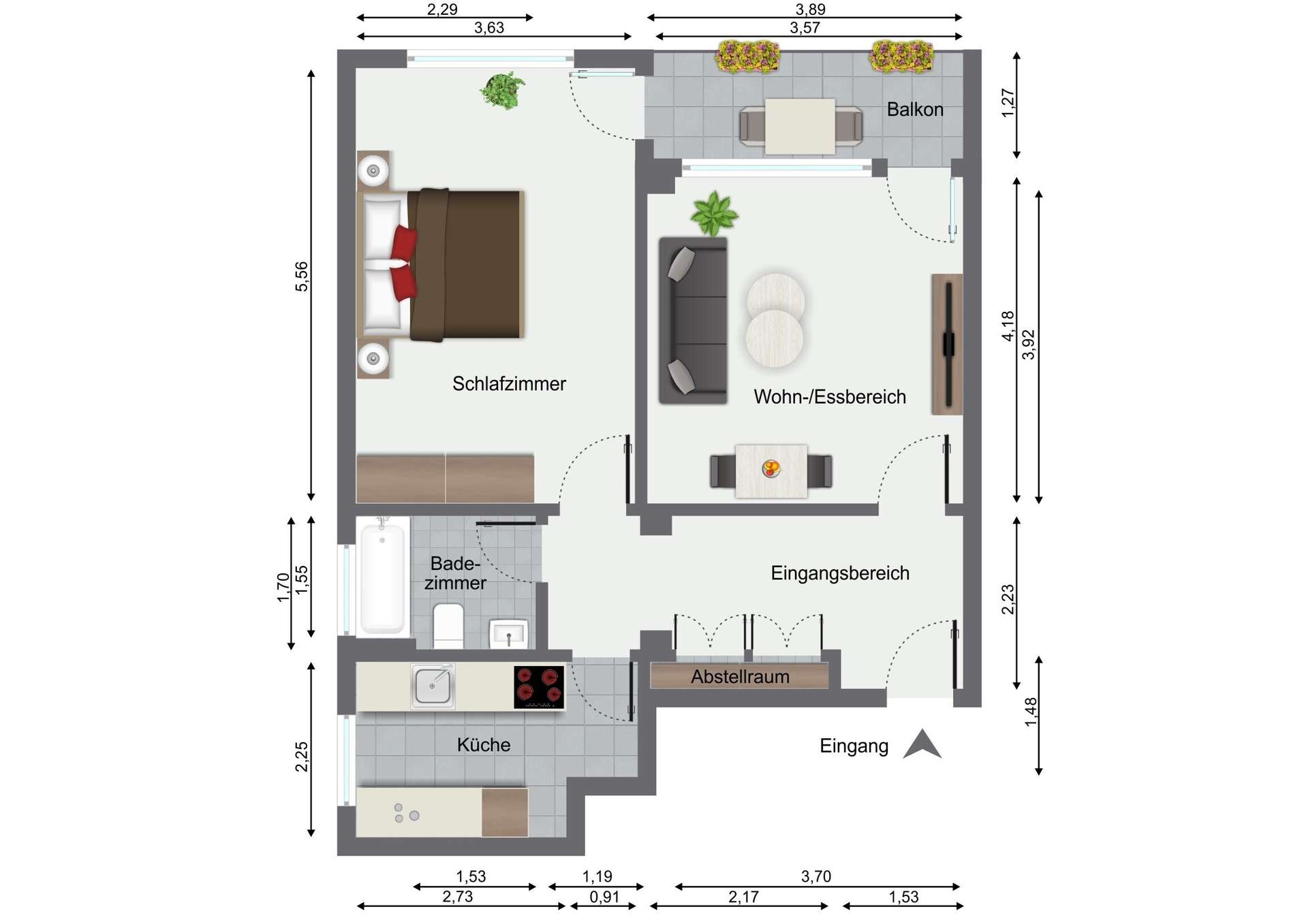 Stellen Sie jetzt ihre Anfrage und Sie erhalten den Zugang zum virtuellen Rundgang, der ihn einen optimalen Eindruck gibt, wie die Wohnung aufgeteilt ist.