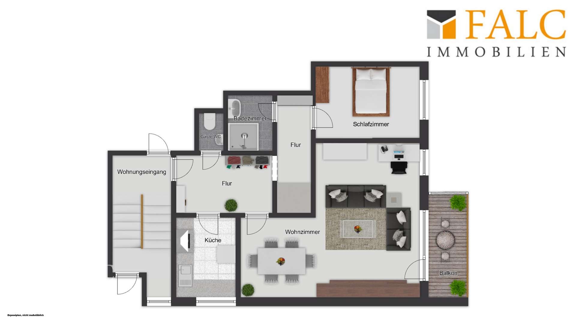Bitte beachten Sie, dass die im Exposé gezeigten Bilder mithilfe von KI erstellt wurden. Die dargestellte Einrichtung dient ausschließlich der Visualisierung möglicher Möblierungsvarianten.