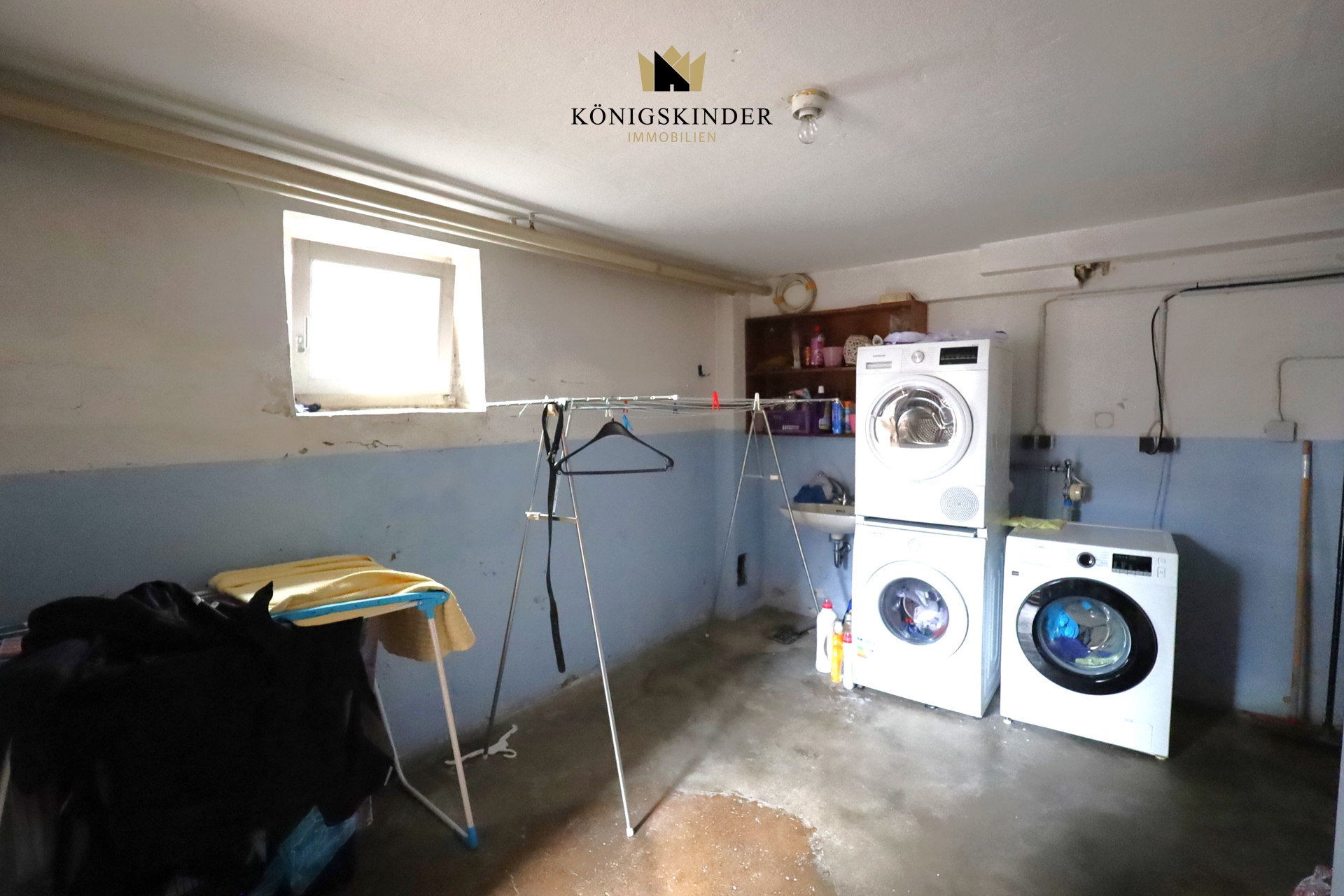Im Detail: das Wohnhaus ist voll unterkellert mit dem damals üblichen Gewölbekeller für Vorräte, dazu ein normaler Keller mit Abstellraum, Waschküche und Heizungsraum.