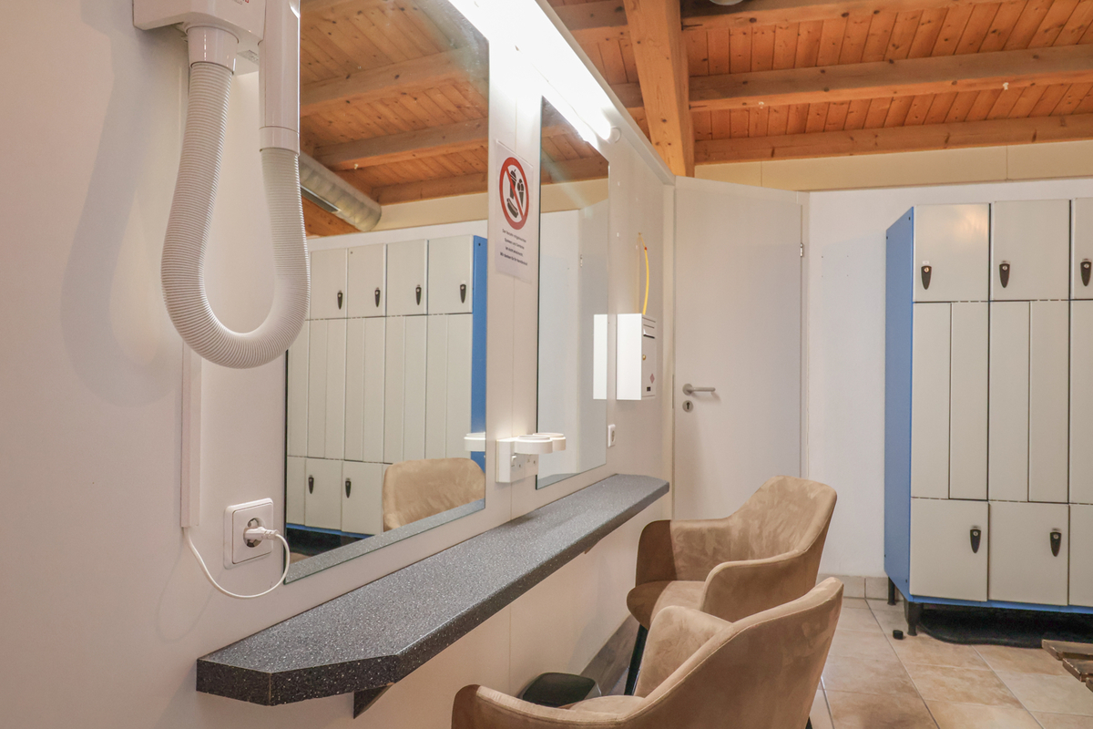 •Gäste-WCs & Umkleidekabinen •Restaurant mit 45 Sitzplätzen + Sonnenterrasse für 35 Gäste •Gastro-Küche mit Kühlhaus •1 Behandlungsraum für Massagen & Anwendungen •Ausreichend Parkplätze vorhanden