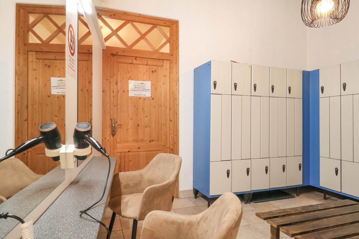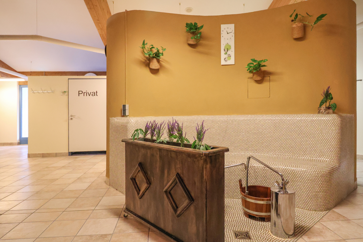 •Außenbereich mit Kneippschlauch, Kaltwasserkübel & Schwallbrause •Drei Erlebnisduschen, Fußbecken und weitere Erfrischungsmöglichkeiten •Holzbeheizter Hot-Tub im Garten für ein einzigartiges Badeerlebnis