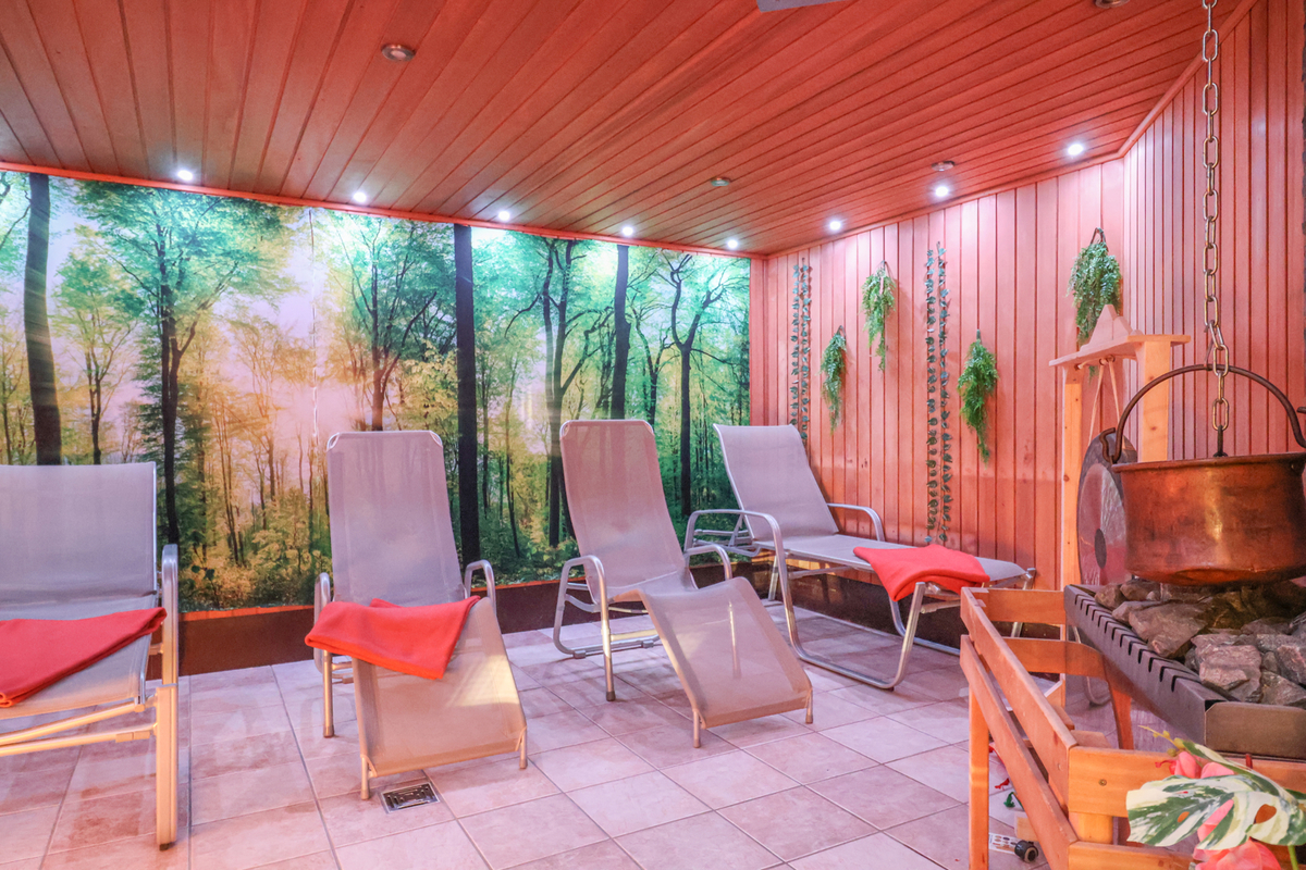 •KELO-Blockhaus-Sauna (95°C) – mit dem aromatischen Duft 100-jährigen KELO-Holzes vom Polarkreis •Kräuter-Sauna (70°C) •Zirbelkiefer-Sauna (80°C) •Salz-Sauna – mit der Heilkraft des Salzes •Physiotherm-Infrarotkabine