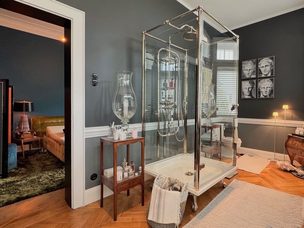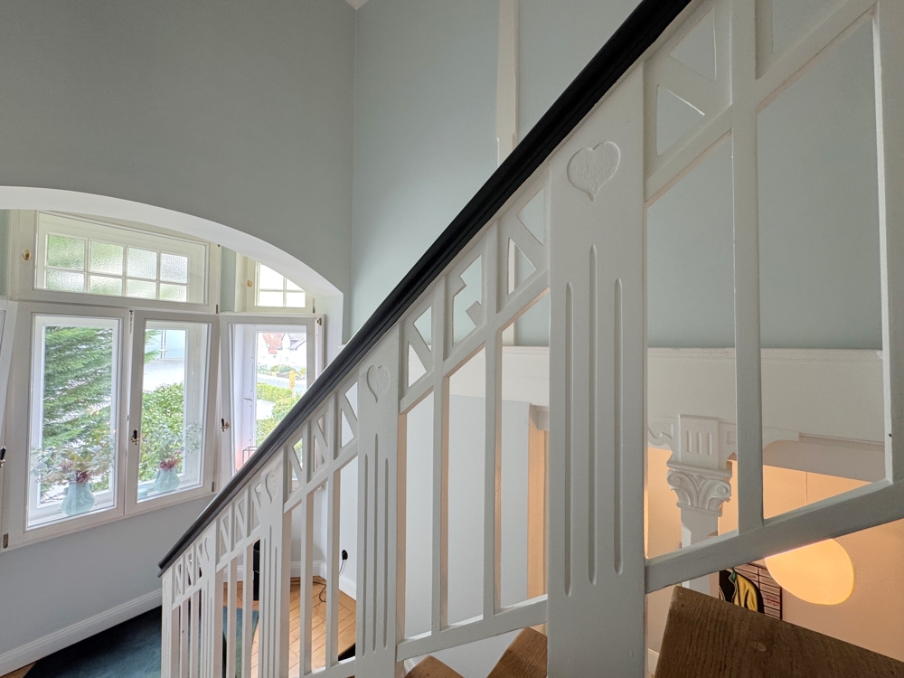 Eine Rarität auf dem Immobilienmarkt: Historische Stadtvilla, erlesen mit viel Feingefühl renoviert und sogar mit eigenem Ufer zur Werre. Haben Sie eine höchste Erwartungshaltung - Sie werden nicht enttäuscht! Das Erd- und das Obergeschoss bieten Ihnen ca. 347 m² Wfl., das in Perfektion ausgebaute Dachgeschoss noch weitere ca. 68 m² Nfl. und der Vollkeller steht in der Qualität durch Gästezimmer, Ankleide, Gästebad, Sauna und Weinkeller nicht hinten an. Die dank des vorhandenen Denkmalschutzes liebevollen Details sind wohltuend präsent und wurden punktgenau ergänzt. Eine Auswahl an Besonderheiten sind Jugendstilfliesen, Jade-Marmorboden, Kaminumfassung aus dem 17. Jahrhundert, Eggersmann-Einbauküche mit Betonarbeitsplatte und Kochinsel, alpine anmutende österreichische Stube, die aus Altholz einer Skihütte gefertigt wurde, begehbarer Geschirrschrank, neuwertiger Kaminofen, italienisches Echtholzparkett und italienische Fliesen, modernisierte Luxus-Badezimmer, englische Armaturen bis hin zu einem Day-Bed, einer freistehenden Kupfer-Badewanne und einem "Bootshaus" mit Freisitz am Ufer der Werre. Die Anlage eines eigenen Bootssteges ist bereits genehmigt. Sämtliche Arbeiten wurden von renommierten Fachunternehmen durchgeführt. Die Elektro- und Wasserinstallationen wurden vollständig erneuert, wie auch die Gasheizung. Das Dach wurde perfekt gedämmt und um ein neues Rettungsfenster ergänzt. Die vielen weiteren Fenster ermöglichen einen weiten Rundumblick über Herford. Eine kleine Kupfer-Spitzhaube gleicht einem Türmchen und ist ein Hingucker der wunderschönen ausgearbeiteten Fassade. Das schöne Grundstück erstreckt sich im wesentlichen hinter dem Haus und bietet Groß und Klein ein geschütztes und ungestörtes Leben. Dies Exposé kann bei der Ausstattungsvielfalt nur annähernd eine vollständige Beschreibung abbilden. Wir laden Sie daher zu einem gemeinsamen Besichtigungstermin ein. Herzlich willkommen!