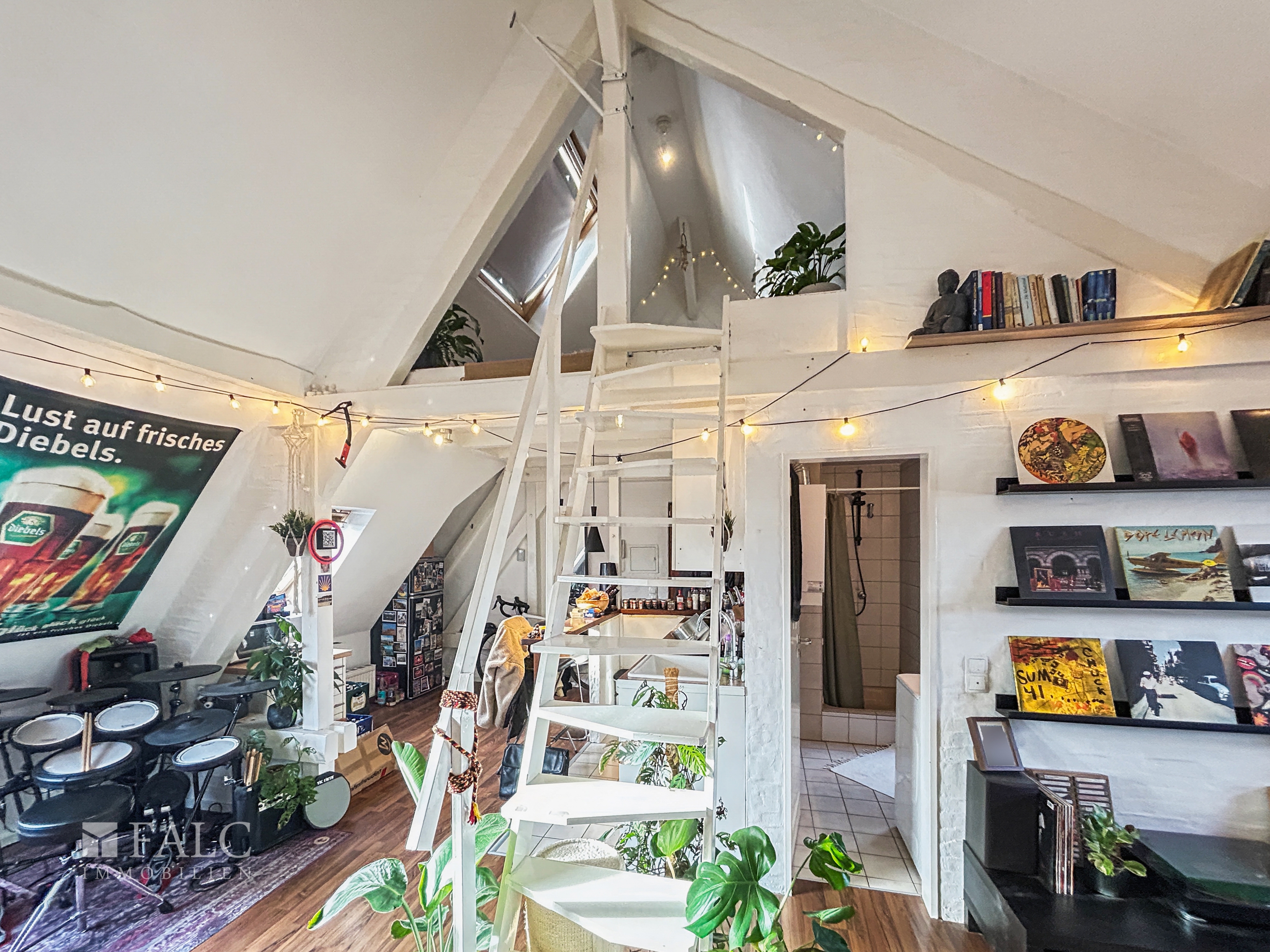 Beide Wohnungen überzeugen durch einen großzügigen, offenen Wohn- und Essbereich mit separater Küche sowie ein helles Tageslichtbad. Die Schlafzimmer befinden sich jeweils auf einer Empore und nutzen die hohen Dachgeschossdecken optimal, was ein besonderes Raumgefühl schafft.