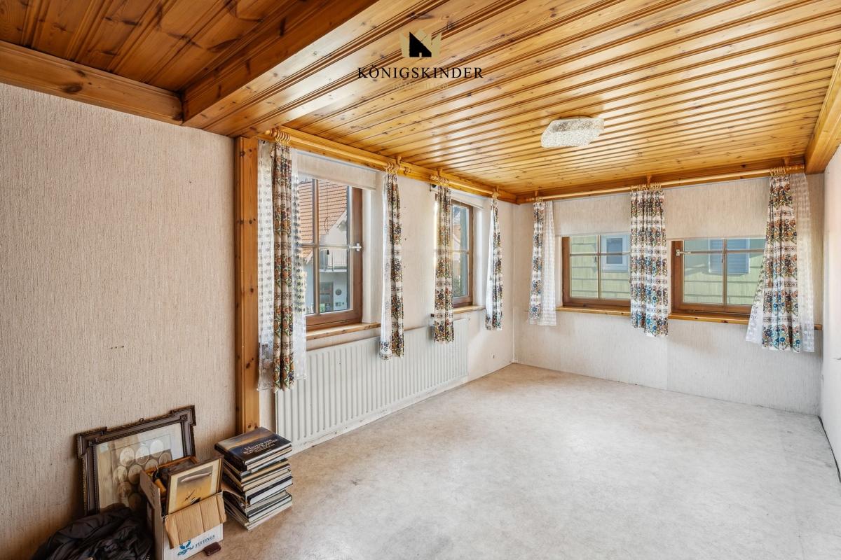 Weitläufiger Garten mit viel Gestaltungspotenzial...Schraubergarage mit integrieret Montagegrube...Überdachter Platz für Wohnmobil oder CamperCharismatischer GewölbekellerLichtdurchflutetes Zimmer im Erdgeschoss – vielseitig nutzbarEinladender Eingangsbereich mit rustikalem Charme – der erste Eindruck zähltKüche mit Potenzial – funktional, hell und bereit für neue Ideen...Gemütlichkeit pur – Kachelofen für wohlige Wärme und behagliches Ambiente Großzügiger Balkon – ein Platz zum Durchatmen...Charmantes Dachgeschoss mit viel Holz und Möglichkeiten zur individuellen GestaltungPlatz für Träume, Hobbys oder Gäste – drei separate Räume im Dachgeschoss bieten vielfältige NutzungsmöglichkeitenEin Haus, das auf neue Geschichten wartet...