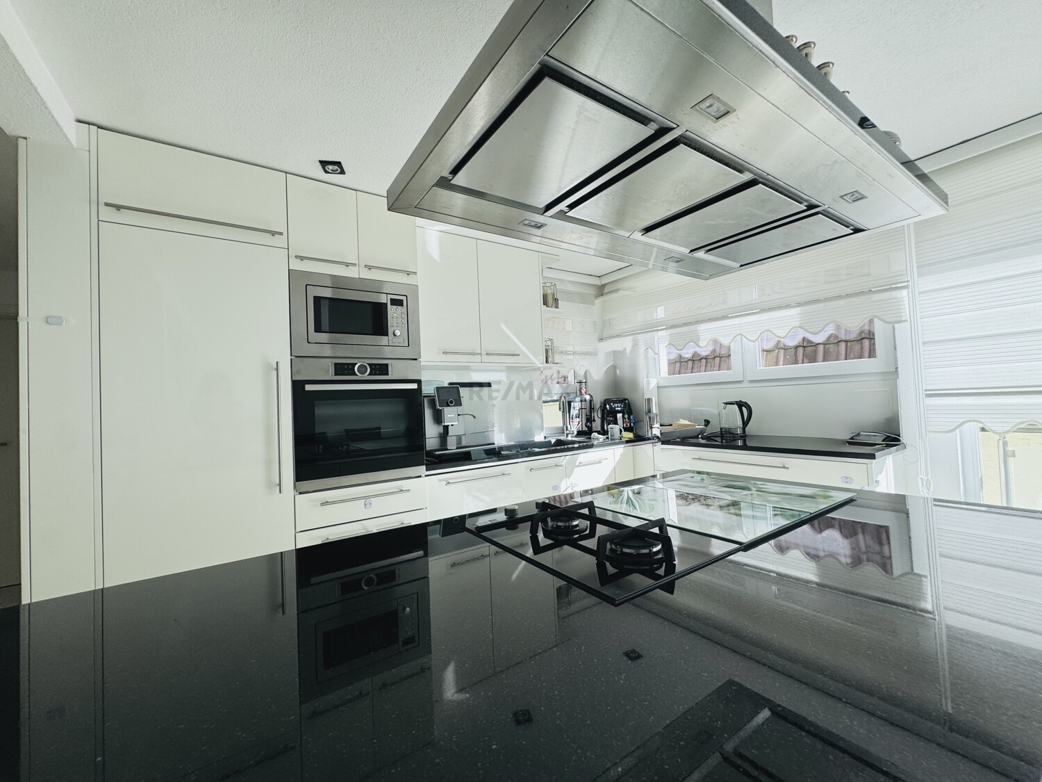 Die hochwertige Küche mit Kochinsel, Induktions- und Gasherd, Granitplatte und vom Schreiner gefertigten Badmöbeln können gegen einen Aufpreis von 20.000 € mit erworben werden.