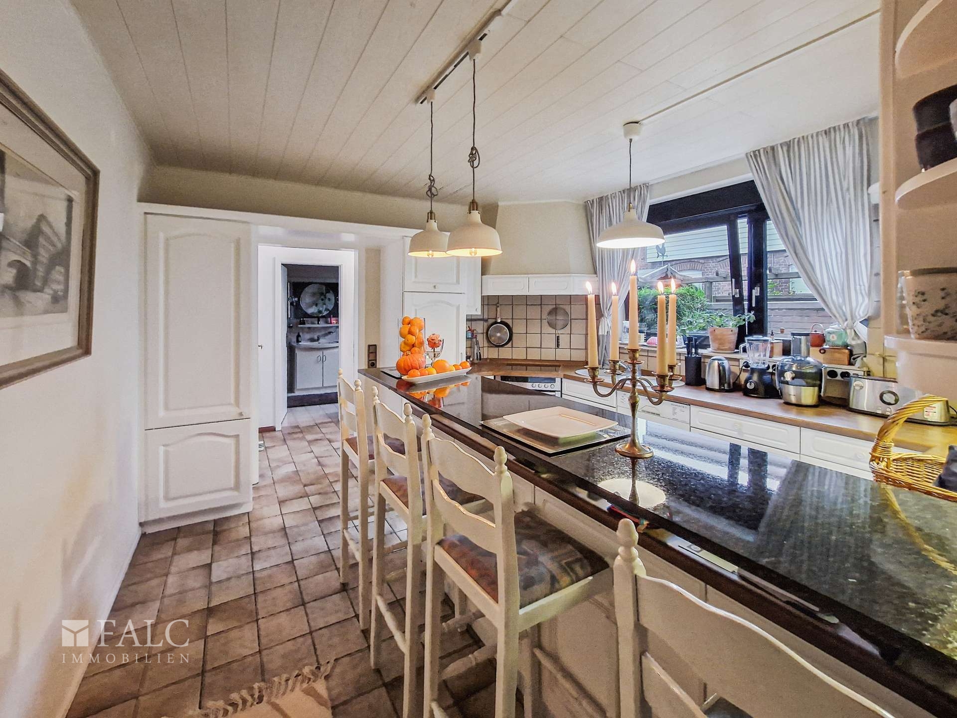 Erdgeschoss – Wohnen mit Stil und Atmosphäre Der großzügige Wohn- und Essbereich öffnet sich zur sonnigen Terrasse und zum herrlichen Garten. Ein Kaminofen sorgt für behagliche Wärme, während Klinkerelemente und moderne Fliesenböden ein harmonisches Ambiente schaffen. Die große Küche mit Thekenbereich und geschmackvoller Einbauküche im Landhausstil ist der ideale Treffpunkt für Familie und Freunde. Ein großes Badezimmer mit Badewanne und Dusche rundet das Raumangebot auf dieser Ebene ab.