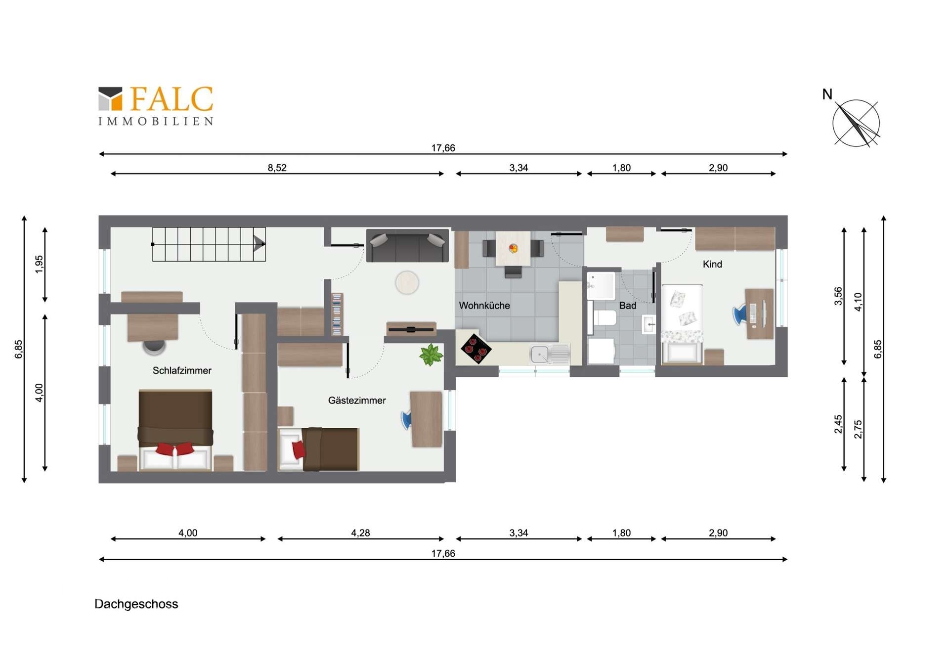 Dachgeschoss: - großzügige Wohnküche mit Chillout- und Essbereich - schöne Einbauküche im Landhausstil - drei weitere Zimmer zur freien Verfügung - modernes Tageslichbadezimmer mit Dusche - geschmackvolle Dielen- und Fliesenböden