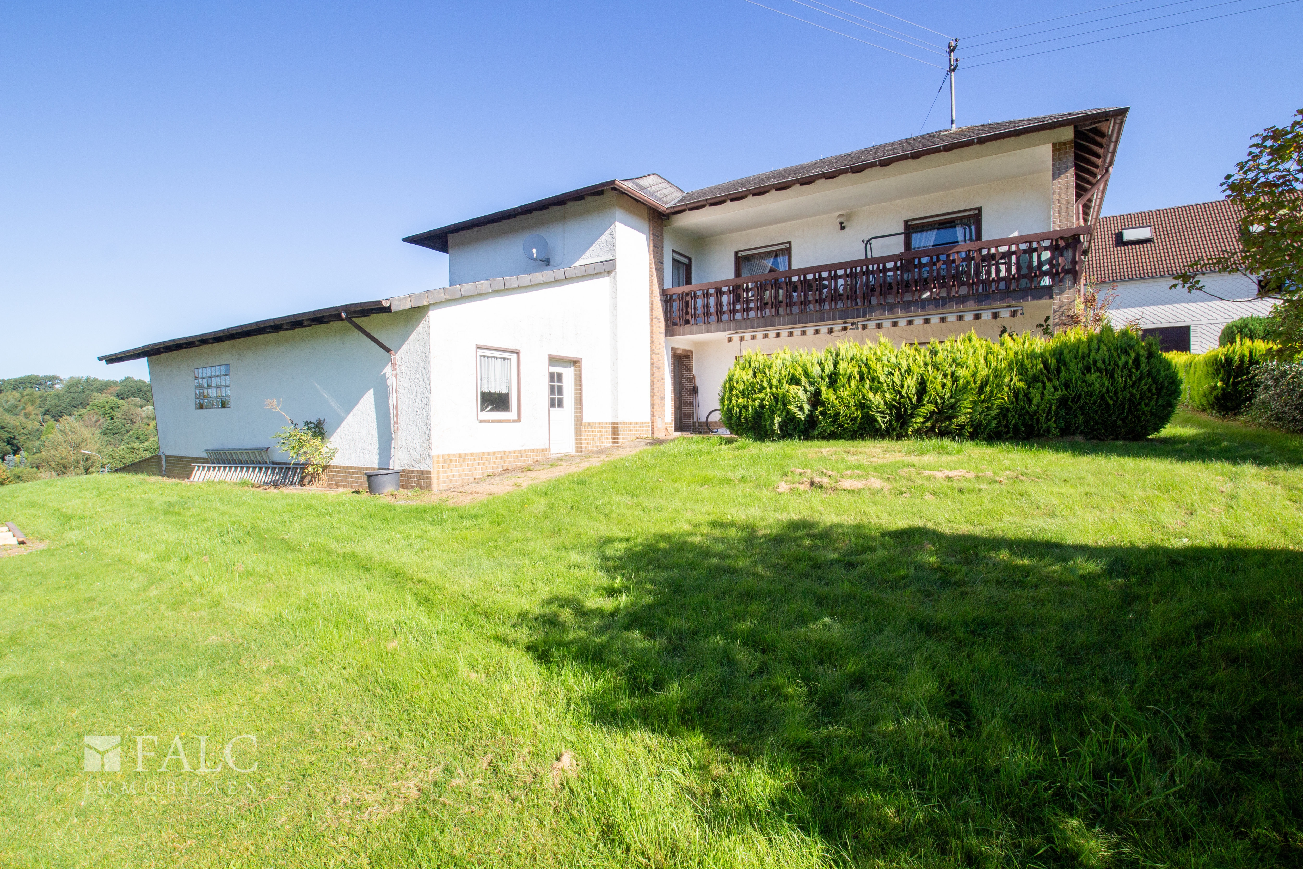 Im Jahre 1977 wurde dieses Einfamilienhaus erbaut und im weiteren Verlauf durch einen Anbau einer Doppelgarage und den Ausbau einer Einliegerwohnung im Untergeschoss erweitert. Schon beim Betreten fühlt man das behagliche Ambiente, welches das Haus ausstrahlt sowie die Liebe und Sorgfalt, mit welcher es die kompletten Jahre gepflegt wurde. Sie betreten das Haus und werden im gemeinsamen Treppenhaus empfangen. Von hier aus gelangen Sie zur ca. 133 m² großen Erdgeschosswohnung. Eine Küche, eine Badezimmer mit Badewanne und Dusche, ein Gäste WC, ein Kinderzimmer und ein Elternschlafzimmer mit Ankleide gehören zum Raumprogramm dieser Etage. Das Highlight ist das ca. 51 m² große Wohn- und Esszimmer mit einem möglichen Kaminanschluss. Die großzügig angeordneten Fenster mit Blick zur benachbarten Wiese sorgen für einen hellen und sonnendurchfluteten Wohnbereich. Der angrenzende überdachte Süd Balkon ist vom Wohnzimmer aus begehbar und bietet Ihnen einen herrlichen Weitblick in den romantischen Westerwald. Über eine Bodeneinschubtreppe in der Diele gelangen Sie auf den nicht ausgebauten Speicher des Wohnhauses. Dieser ist als Kaltdach ausgeführt und bietet Ihnen genügend Abstellfläche. Im Untergeschoss bzw. Souterrain des Wohnhauses befindet sich die ca. 117 m² große Einliegerwohnung. Diese ist über das gemeinsame Treppenhaus erreichbar und kann zusätzlich über den Hintereingang im Garten erschlossen werden. Zum Raumprogramm dieser Wohnung gehört ein Badezimmer mit Badewanne, ein Büro, zwei Schlafzimmer und eine Küche mit separatem Vorratsraum. Das Highlight dieser Wohnung ist auch hier das ca. 31 m² große Wohn- und Esszimmer. Die großzügig angeordneten Fenster mit Blick zur benachbarten Wiese sorgen für genügend Helligkeit im Wohnraum. Weiterhin befindet sich im Untergeschoss der Heizungsraum sowie der Zugang zur großen Doppelgarage und Werkstatt. Die beiden letzteren sind hervorragend für einen Handwerker geeignet. Weiterhin kann sogar die Einliegerwohnung als Bürofläche genutzt werden. Das Grundstück ist eingefriedet und wurde mit Sträuchern, Hecken, Bäumen und einer Rasenfläche angelegt. Zwei Gewächshäuser stehen Ihnen zum Anpflanzen von Gemüse zur Verfügung. Eine kleine Holzhütte für das Lagern von Holz oder Gartengeräten runden das Grundstücksangebot ab.