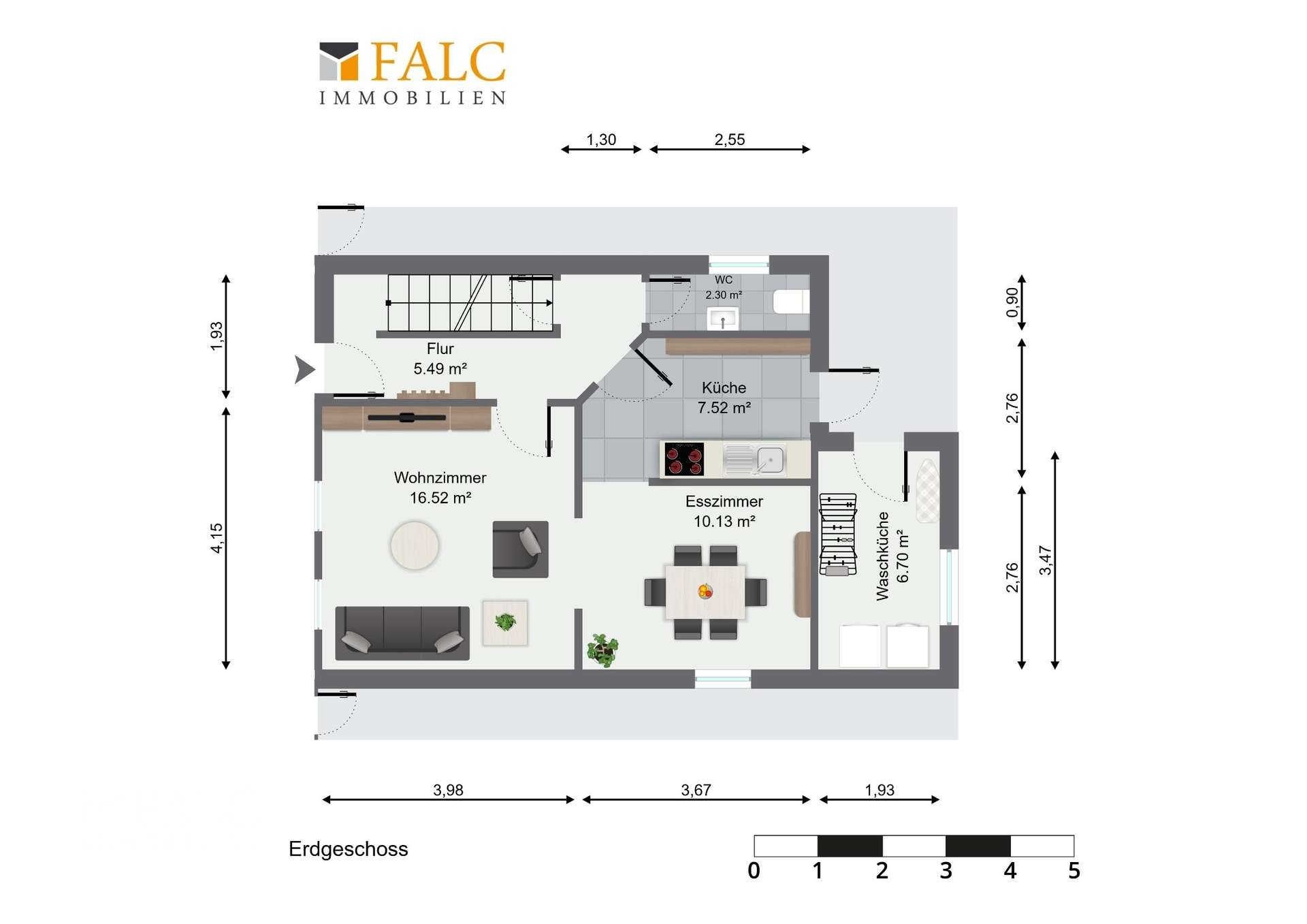 Für Besucher oder Ihren Engsten steht zudem ein sep. Gäste-WC angrenzenden zu Ihrer Küche zur Verfügung.
