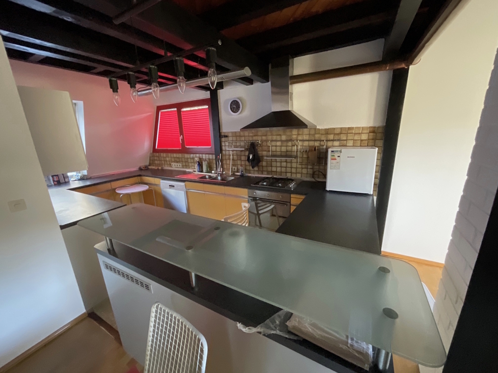 Neuwertige Einbauküche Kaminofen für feste Brennstoffe Fußböden Parkett und Fliesen. Gaszentralheizung von 2011