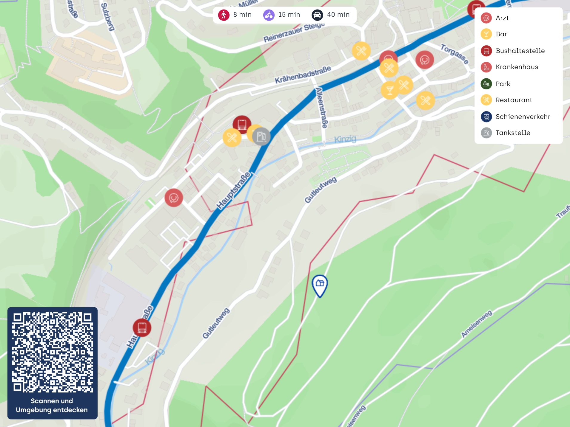 Die Lage am Gutleutweg verbindet eine ruhige Wohnatmosphäre mit kurzen Wegen in den Ortskern von Alpirsbach. Durch die leicht erhöhte Position genießen Sie einen attraktiven Ortsblick – angenehm zurückgezogen und dennoch zentrumsnah.