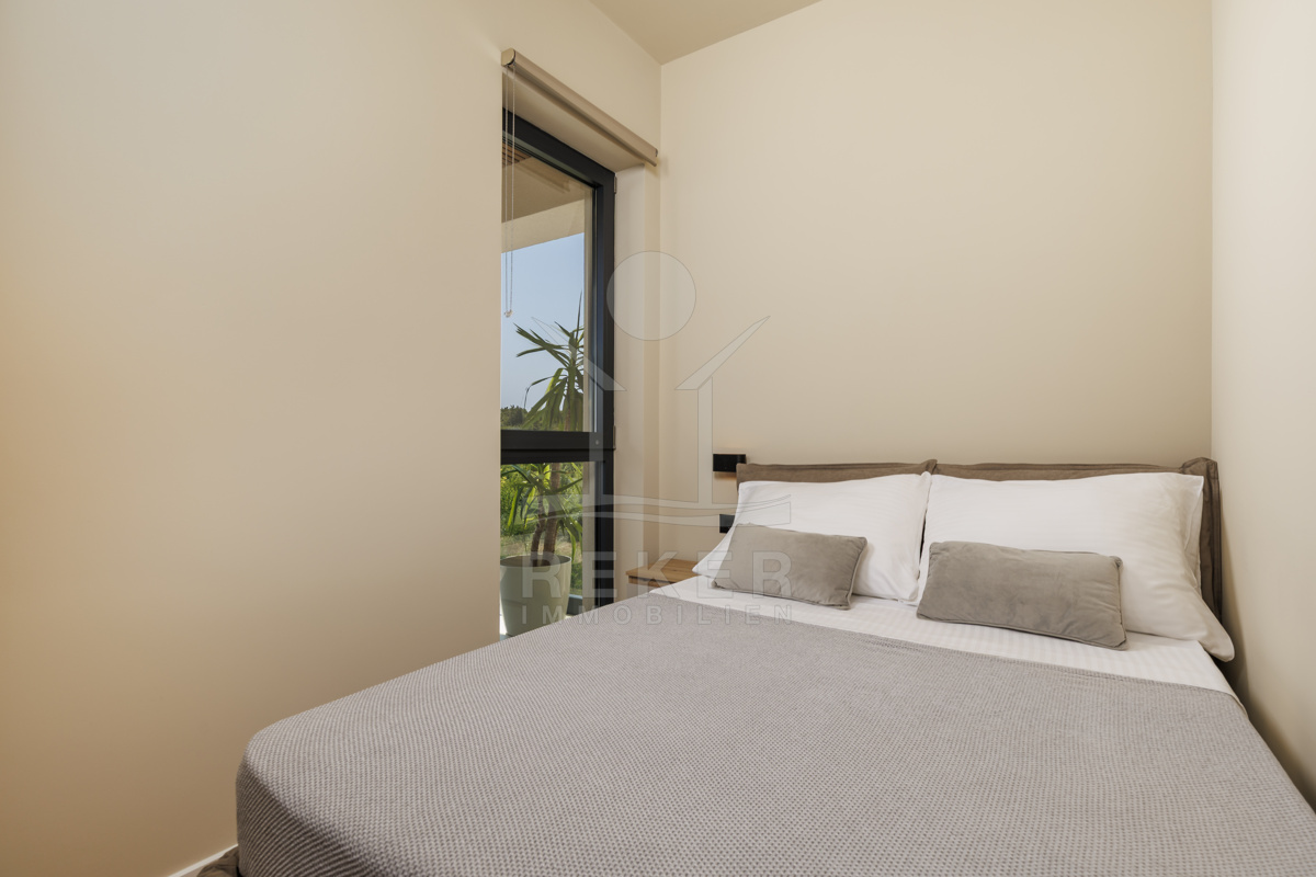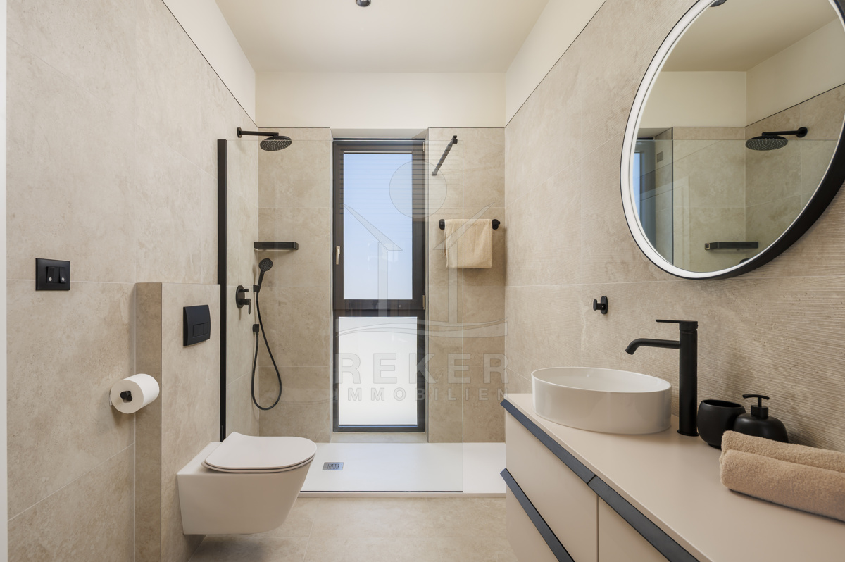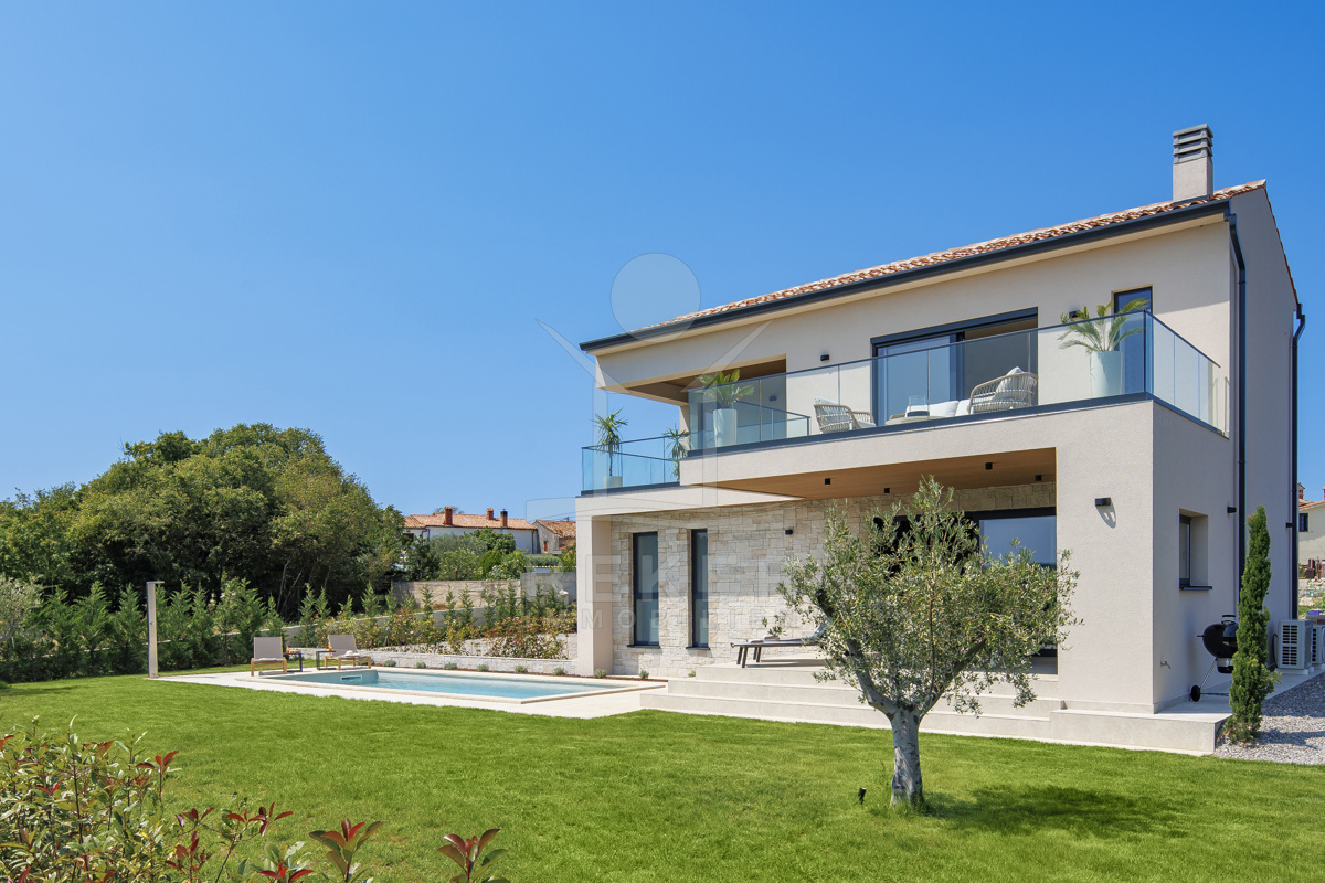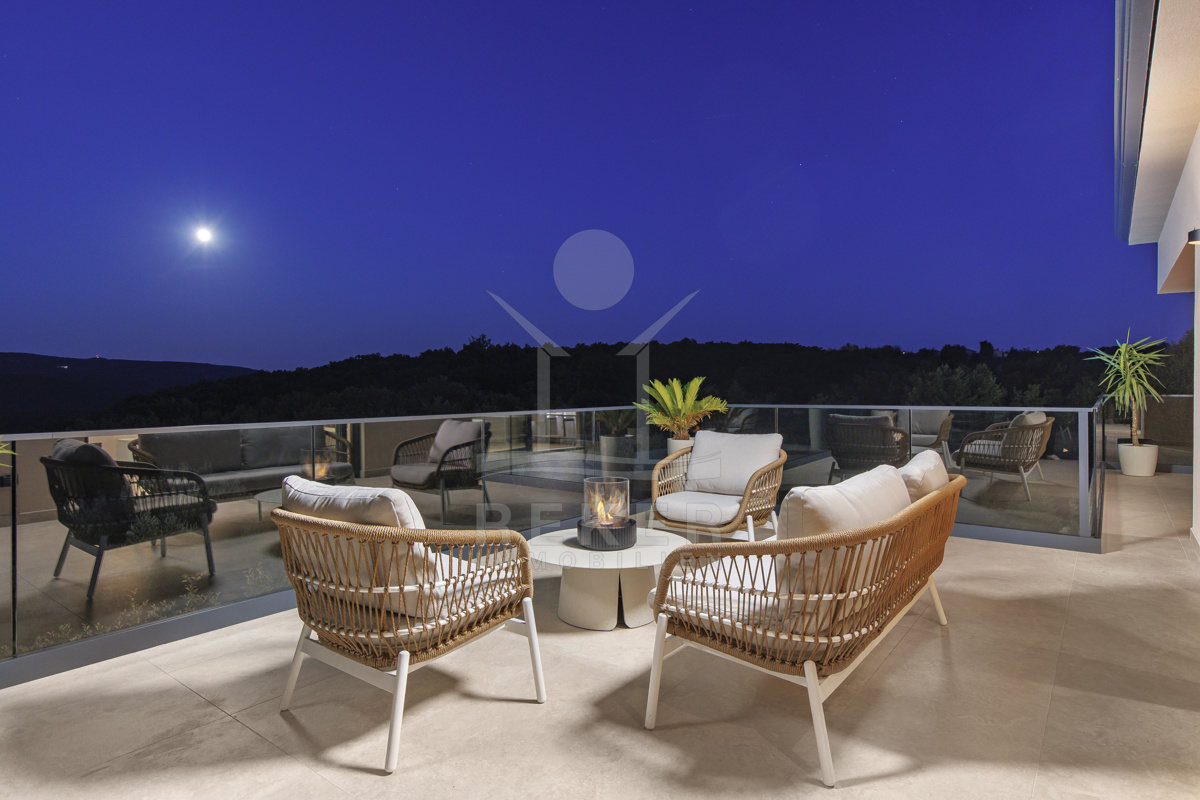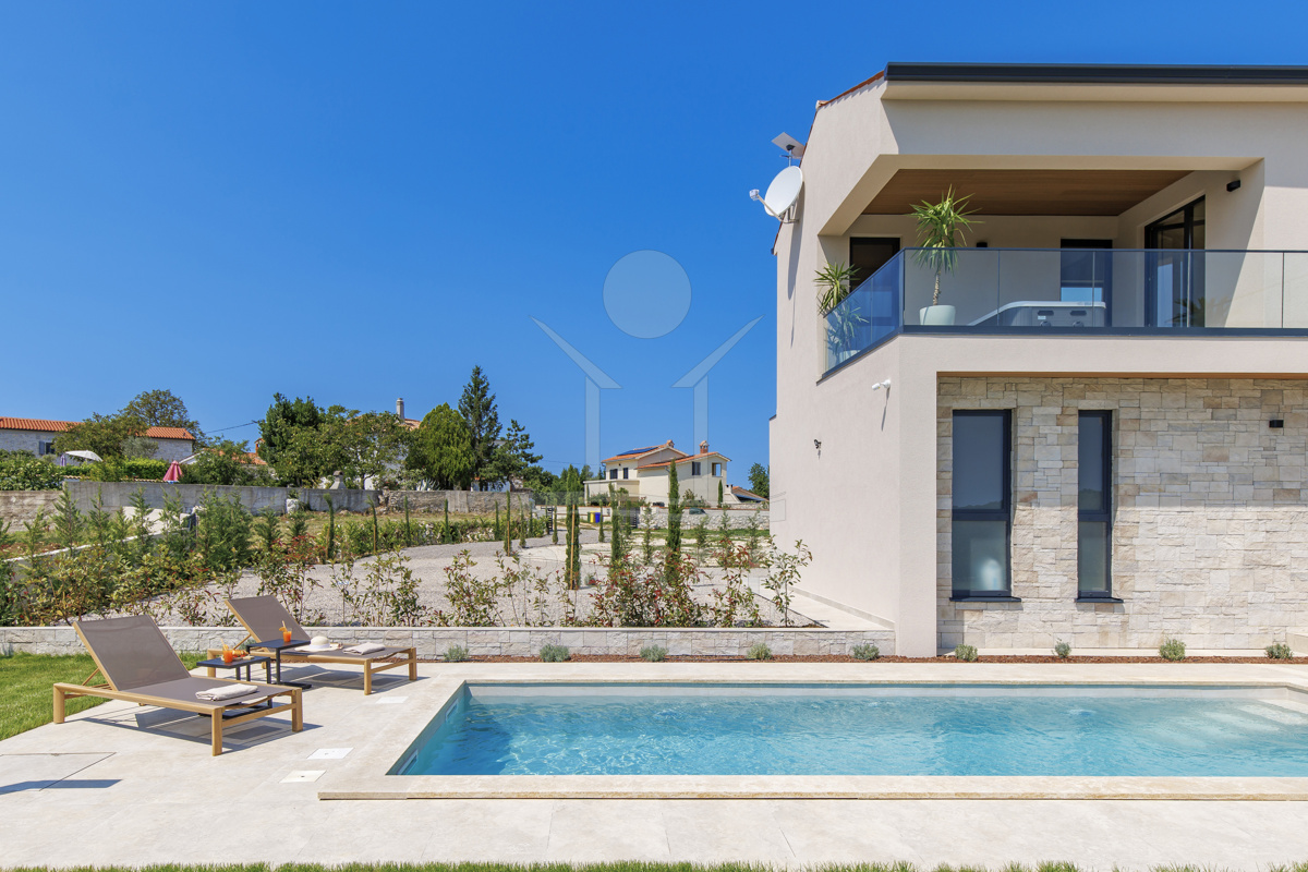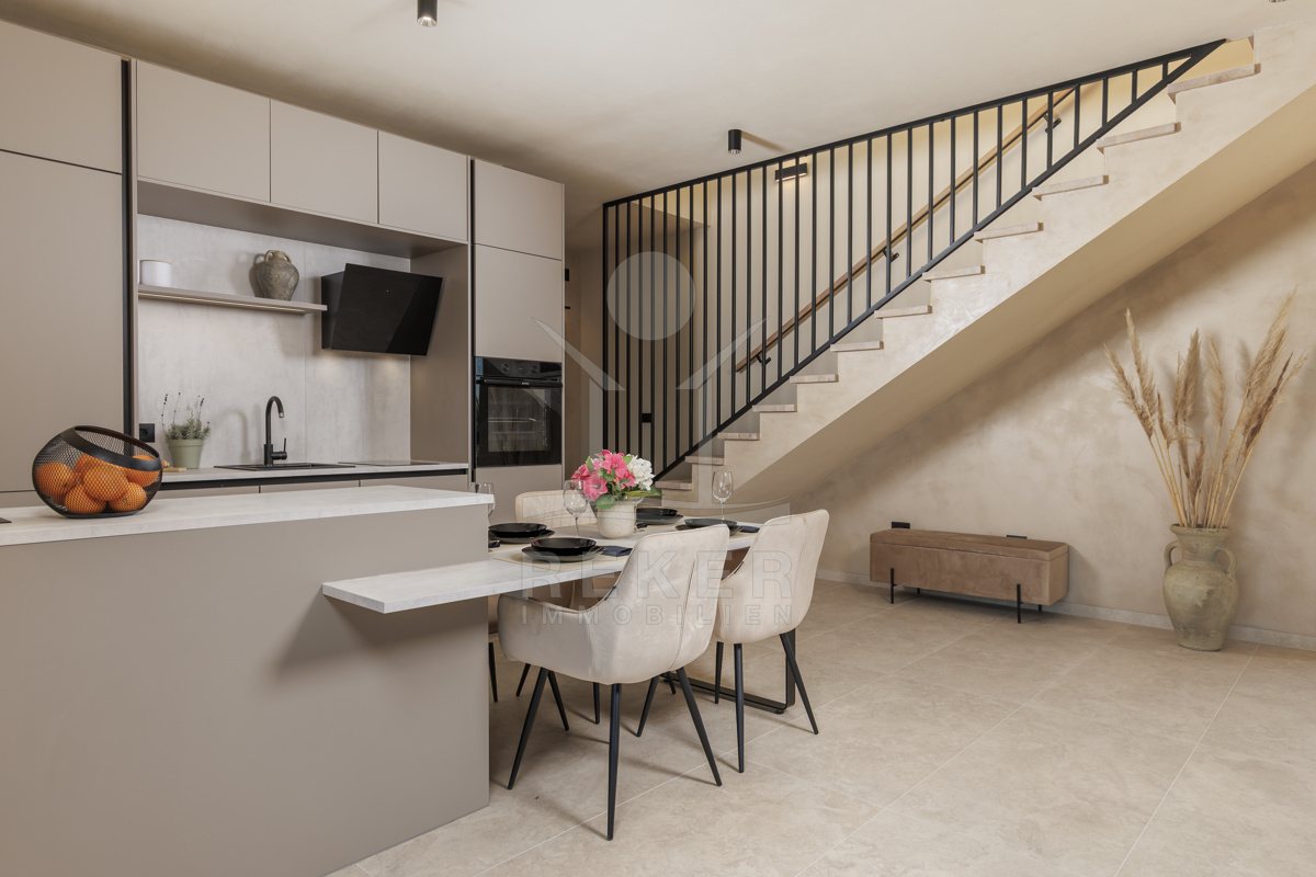 Am Rand des kleinen Dorfes Kunj, nur 8 km von der historischen Stadt Labin entfernt, wartet diese moderne Villa auf neue Bewohner. Hier genießen Sie Ruhe und einen weiten Blick über Olivenhaine und den Berg Učka. Die Küste erreichen Sie in rund 15 Minuten mit dem Auto. Labin bietet Restaurants, Supermärkte und ein vielseitiges Kulturangebot. Auf dem Grundstück stehen mehrere Stellplätze für Ihre Fahrzeuge bereit.