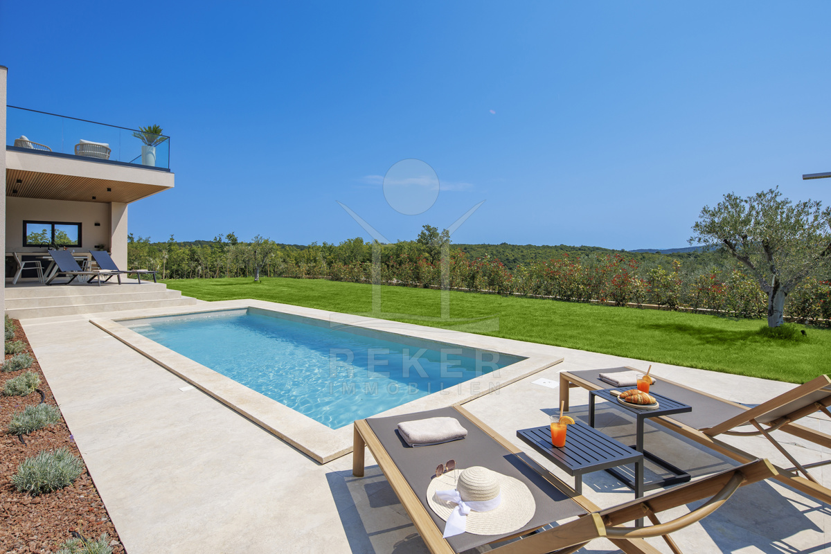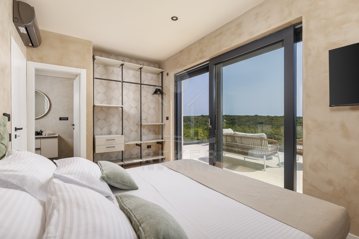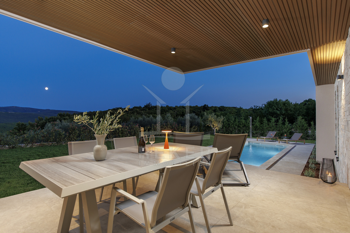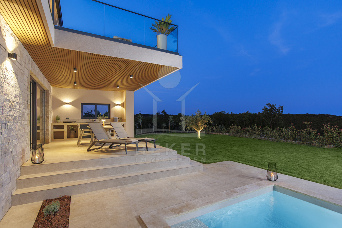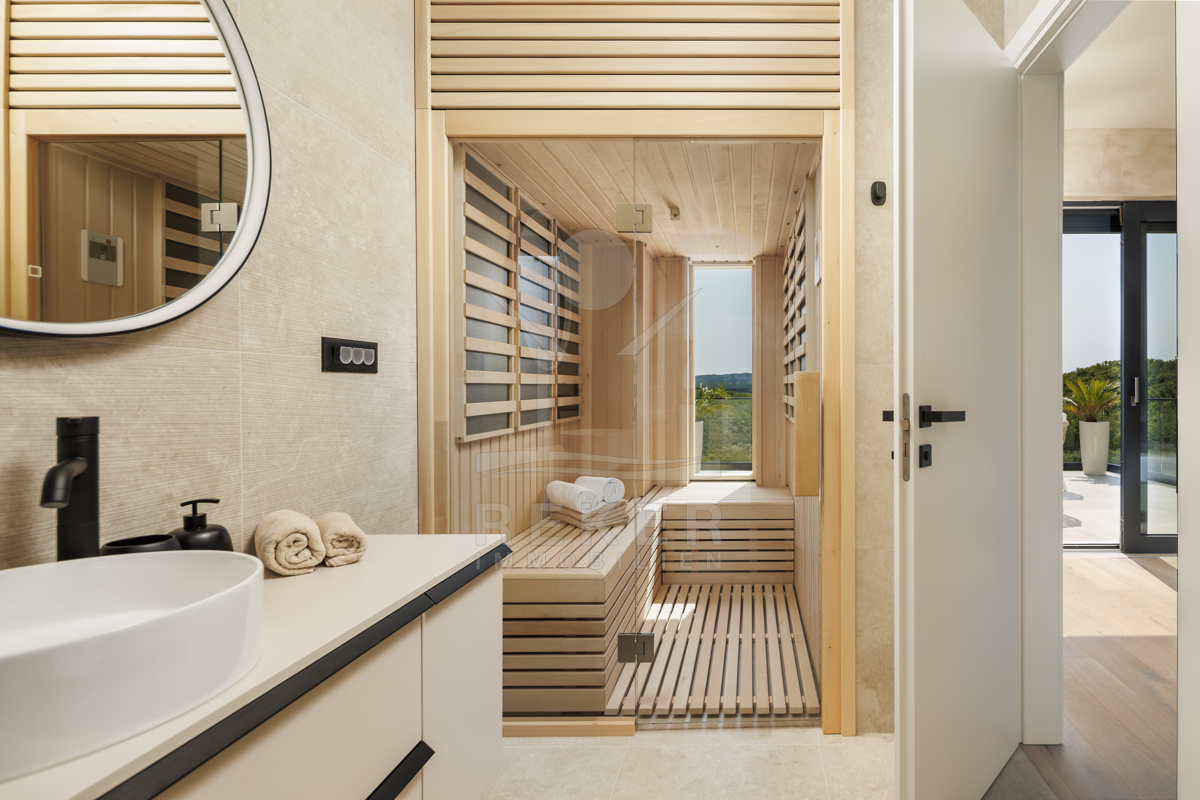 Ein Morgen in der Natur mit Blick auf Olivenhaine, ein Bad im privaten Pool und abends Entspannung in der Sauna – so sieht Ihr Alltag in dieser modernen Villa aus. Das Zusammenspiel von Design und Landschaft bietet ein einzigartiges Lebensgefühl, nur wenige Minuten von Labin entfernt.