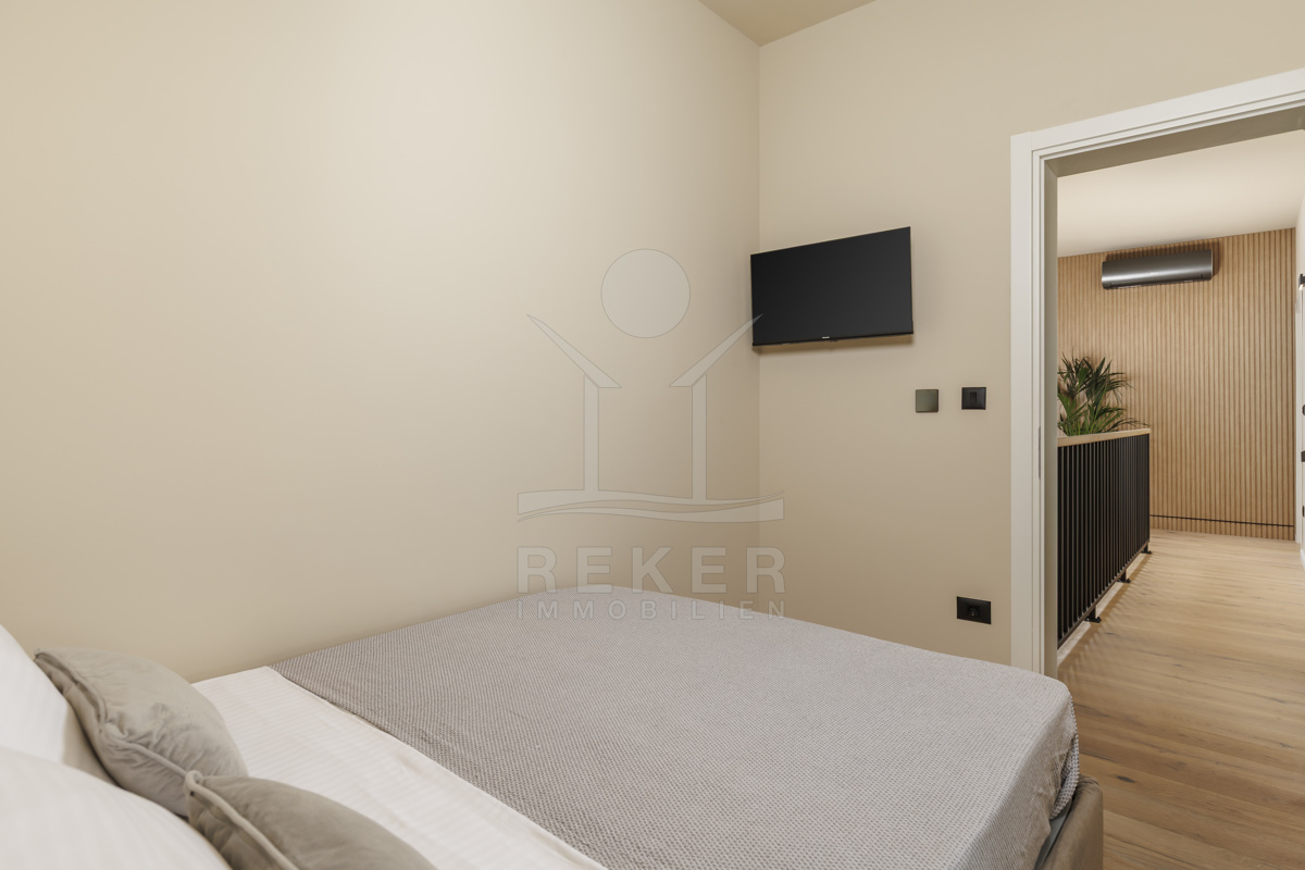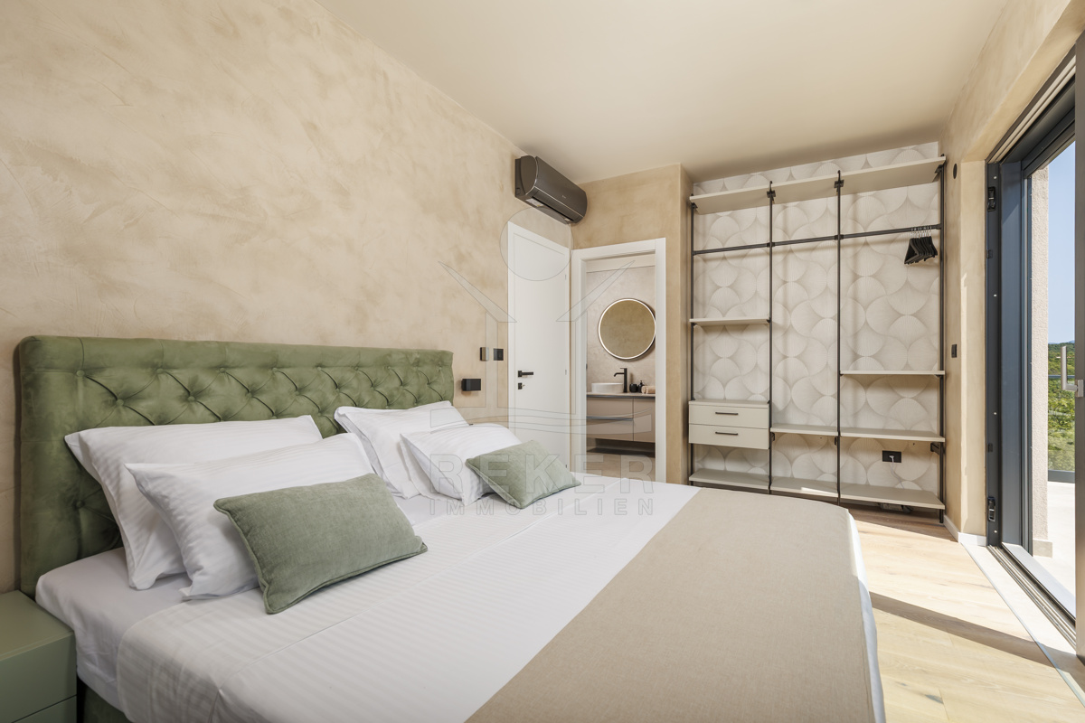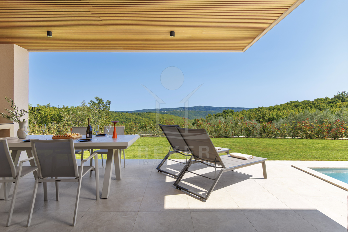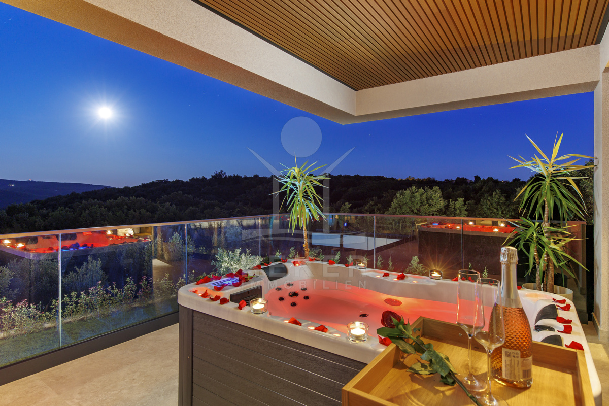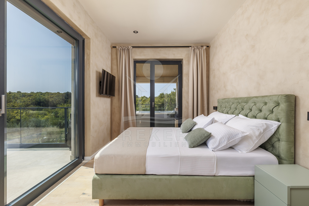 Ein Morgen in der Natur mit Blick auf Olivenhaine, ein Bad im privaten Pool und abends Entspannung in der Sauna – so sieht Ihr Alltag in dieser modernen Villa aus. Das Zusammenspiel von Design und Landschaft bietet ein einzigartiges Lebensgefühl, nur wenige Minuten von Labin entfernt.