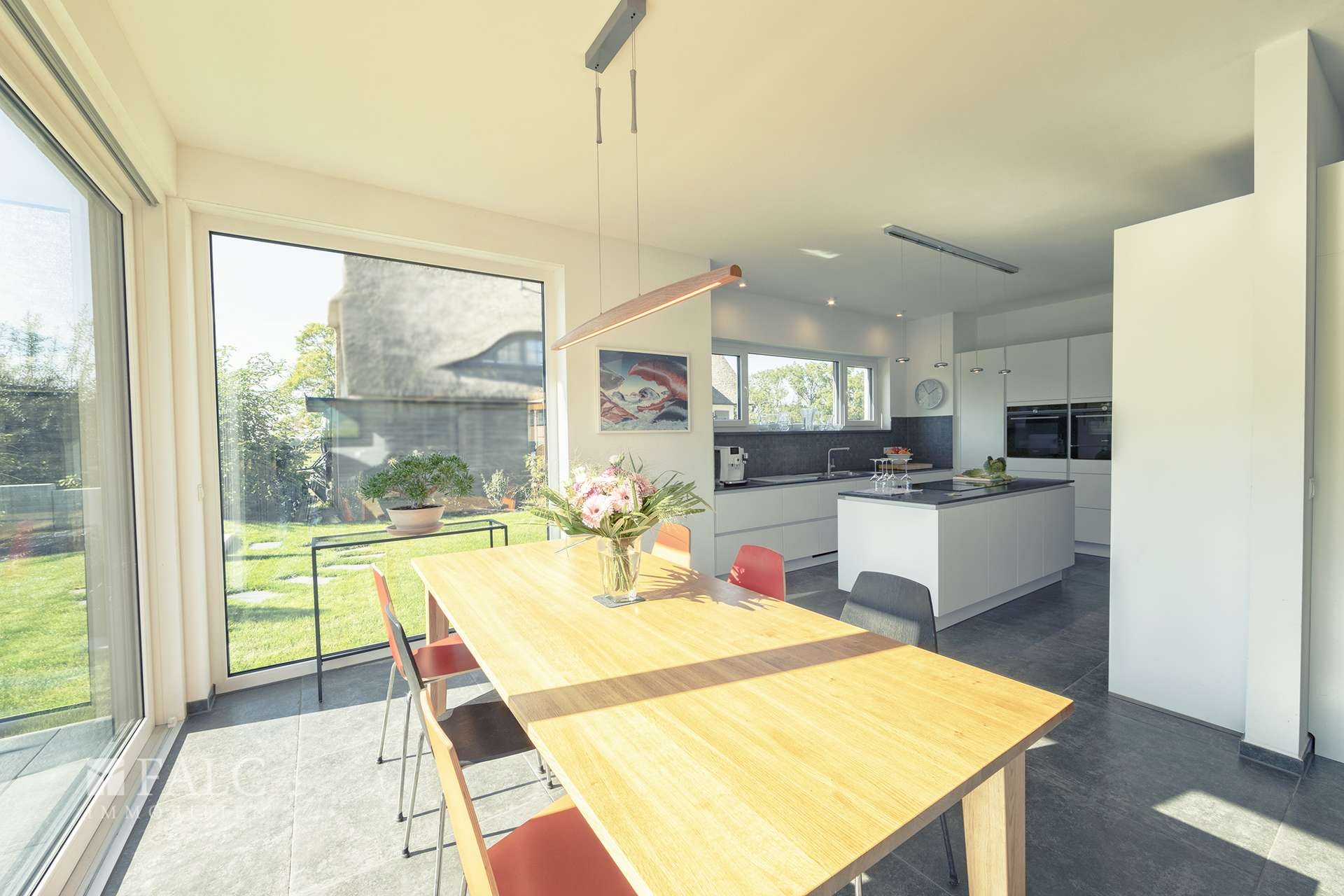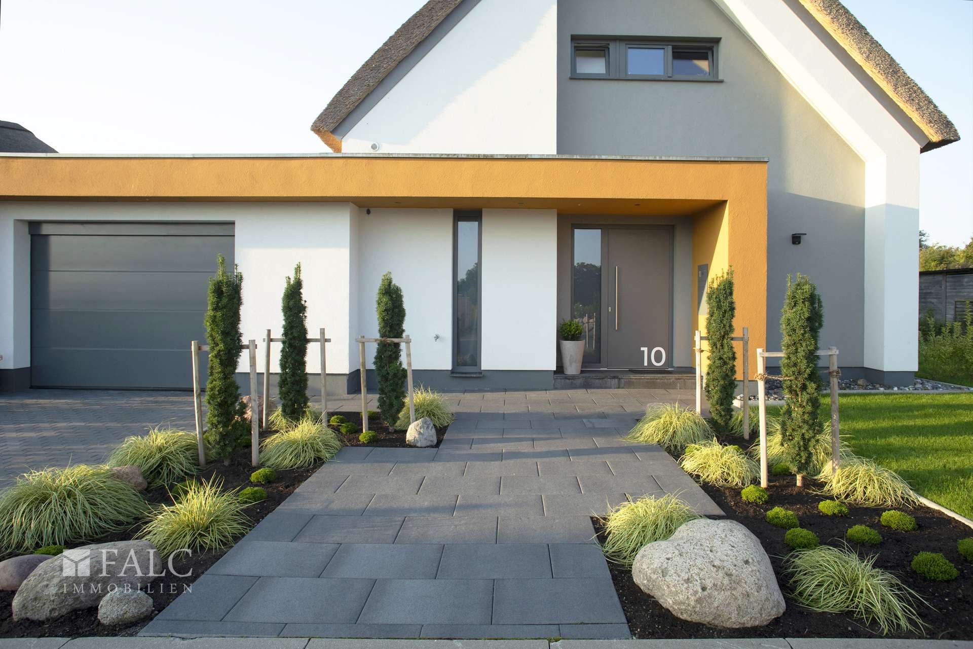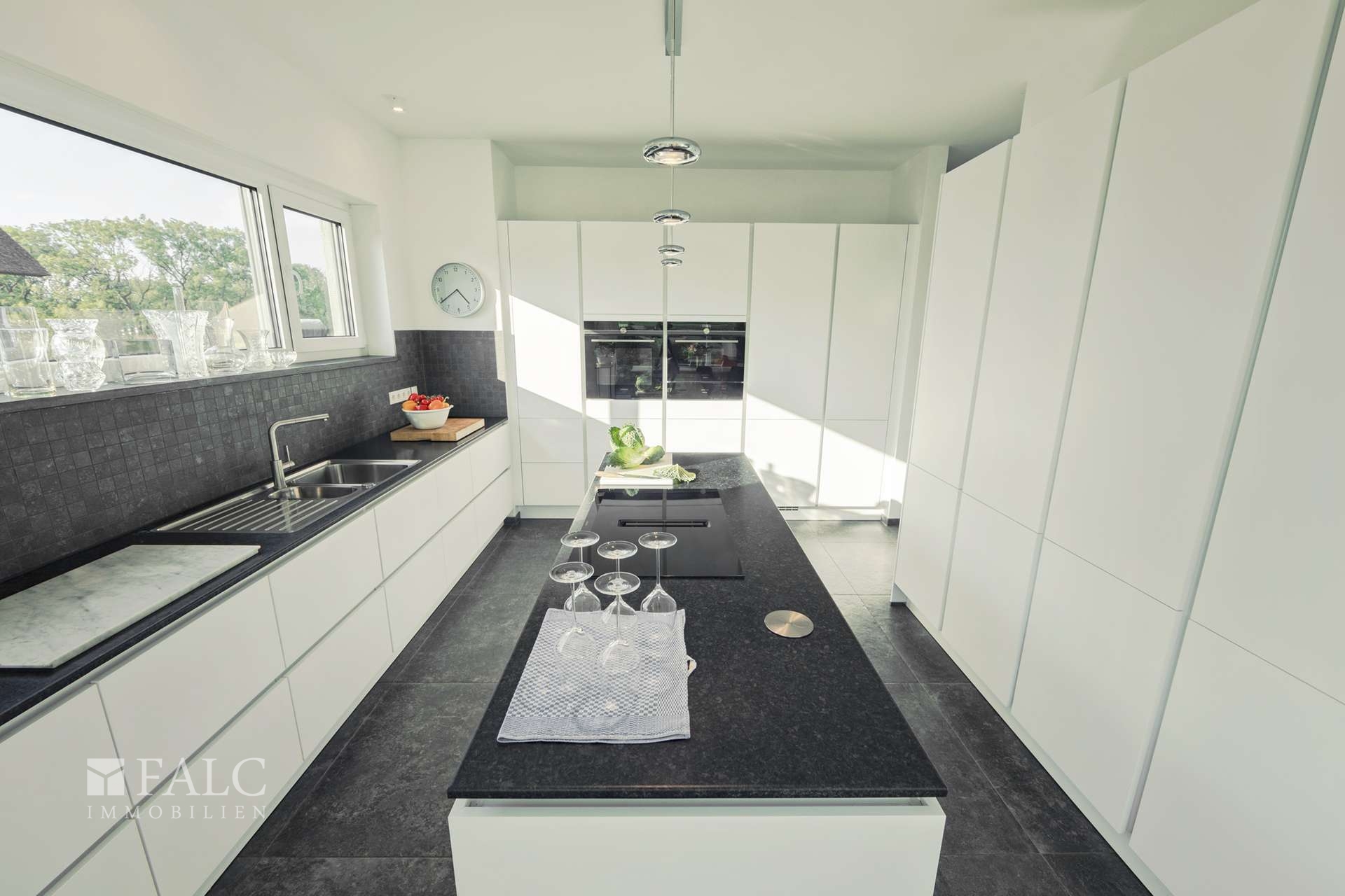 „Zuhause ist, wo die Wellen rauschen.“ Wenn Sie auf der Suche nach einem eleganten, modernen Zuhause für Ihre Familie sind – einem Ort, an dem hochwertiges Design auf durchdachte Wohnqualität trifft – dann wird Sie dieses außergewöhnliche Immobilienangebot begeistern. Anspruchsvoll, jung und stilvoll – so lässt sich der erste Eindruck dieses Hauses wohl am treffendsten beschreiben. Klare Linien, moderne Materialien und lichtdurchflutete Räume schaffen eine Atmosphäre zum Wohlfühlen und Ankommen. Das Herzstück des Hauses bildet der offen gestaltete Wohn-Ess- und Kochbereich. Die hochwertige, weiße Küche mit zentraler Kochinsel ist ein echter Blickfang und bietet mit modernen Elektrogeräten alles, was das Kochherz begehrt. Hier wird gemeinsames Kochen zum Erlebnis. Küche ist im Kaufpreis enthalten. Direkt angrenzend lädt der Essbereich mit Schiebetür zur Südterrasse zu entspannten Stunden im Freien ein. Die großzügige Terrasse öffnet sich zum weitläufigen Garten, dessen Hanglage nicht nur Struktur, sondern auch eine besondere Atmosphäre schafft. Der traumhafte Blick ins Grüne und die Südausrichtung garantieren ganztägigen Sonnengenuss. Im Obergeschoss erwarten Sie drei vielseitig nutzbare Räume – ideal als Schlafzimmer, Kinderzimmer oder Homeoffice. Die Räume überzeugen durch Großzügigkeit, viel Tageslicht und ein angenehmes Wohnklima. Das Hauptschlafzimmer bietet einen ganz besonderen Rückzugsort mit direktem Zugang zum Südbalkon, genießen Sie hier einen herrlichen Ausblick ins Grüne. Die Garage mit elektrischem Rolltor ermöglicht bequemes Parken direkt neben dem Haus. Von hier aus gelangen Sie wahlweise durch einen separaten Seiteneingang direkt in den Hauswirtschaftsraum.