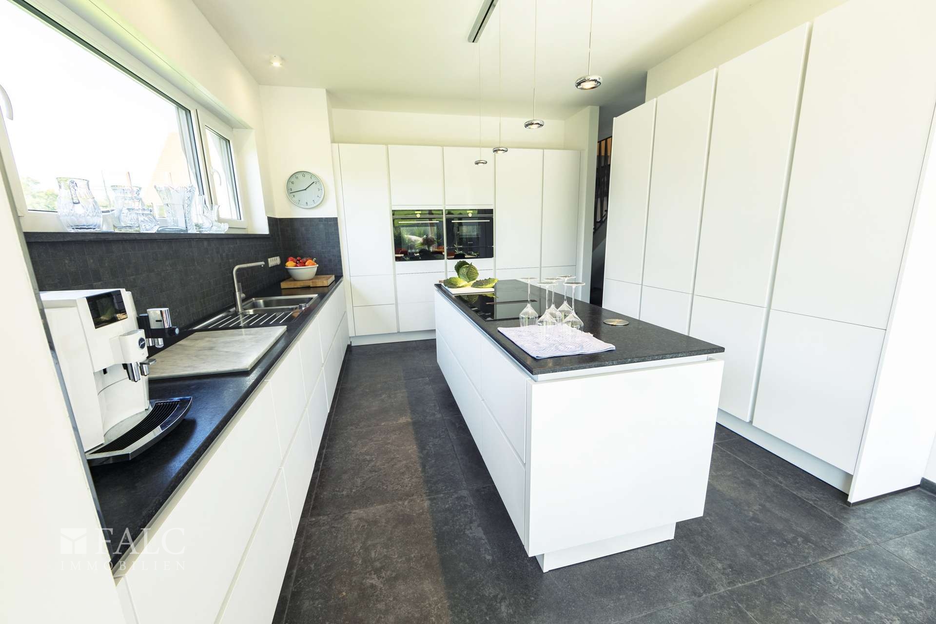 Ein echtes Zuhause zum Verlieben! Dieses im Jahr 2022 in sehr hochwertiger Massivbauweise errichtete Einfamilienhaus begeistert mit zeitgemäßer Architektur, exzellenter Bauqualität und einer durchdachten Raumaufteilung, die modernes Wohnen perfekt in Szene setzt. Auf einer Wohnfläche von ca. 150 m² verteilen sich sechs Zimmer, darunter zwei großzügige Schlafzimmer, zwei Gästezimmer, drei stilvolle Duschbäder sowie ein offener Wohn- und Essbereich mit Zugang zur sonnigen Südterrasse. Die hochwertige Küche mit Kochinsel lädt zum Kochen und Verweilen ein. Große Panoramafenster mit integrierter Schiebetür schaffen ein lichtdurchflutetes Wohnambiente. Dabei sichern die dreifach verglasten Kunststofffenster eine hervorragende Wärmedämmung.