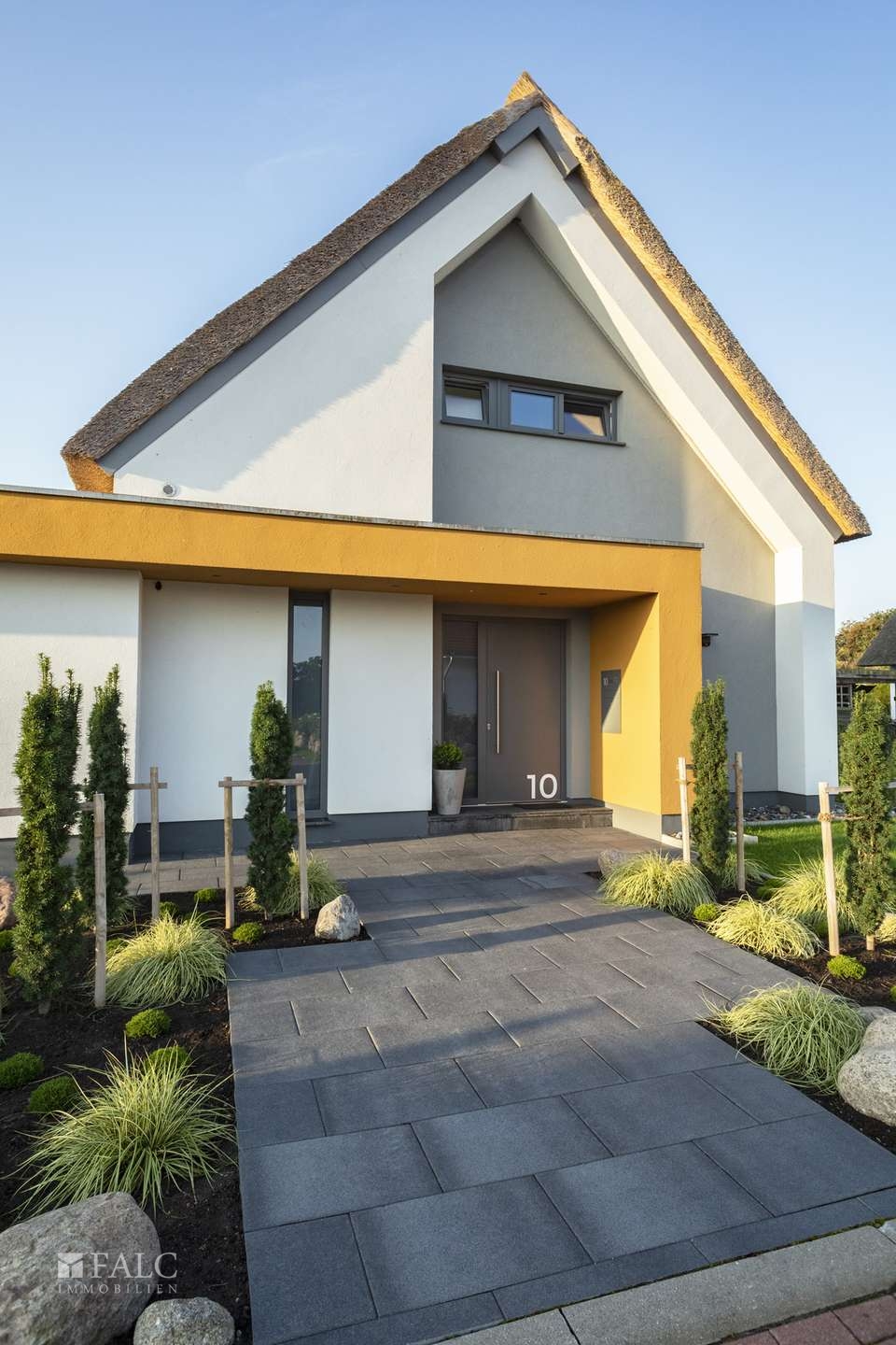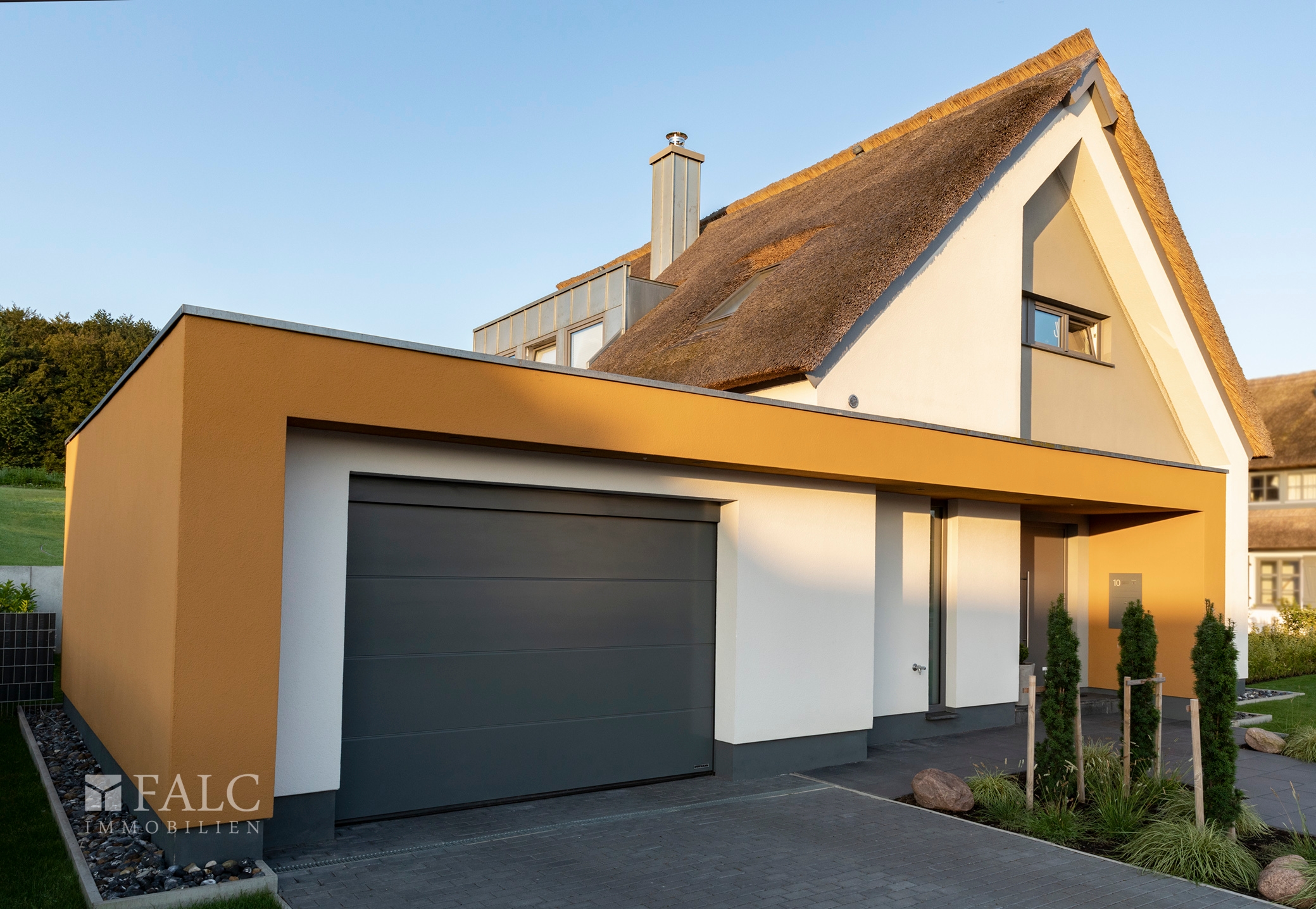 Das Reetdach trägt zu einem besonders behaglichen Raumklima bei. Dank des eingebauten Schornsteins und einer verstärkten Fundamentierung steht dem Einbau eines Kamins nichts im Wege. Auf großzügigen 812 m² entfaltet sich ein wahres Paradies – pflegeleicht gestaltet, damit Sie mehr Zeit zum Genießen haben. Der vollautomatische Mähroboter übernimmt für Sie die Arbeit, während Sie die Ruhe im Grünen genießen. Ein liebevoll angelegtes Hochbeet verleiht dem Garten eine besonders stilvolle Note und rundet das harmonische Gesamtbild perfekt ab. Die angegebene Wohnfläche beinhaltet anteilig 25 % der Terrassenfläche gemäß der gängigen Wohnflächenverordnung (WoFlV). Die Terrasse trägt somit teilweise zur Gesamtwohnfläche bei.