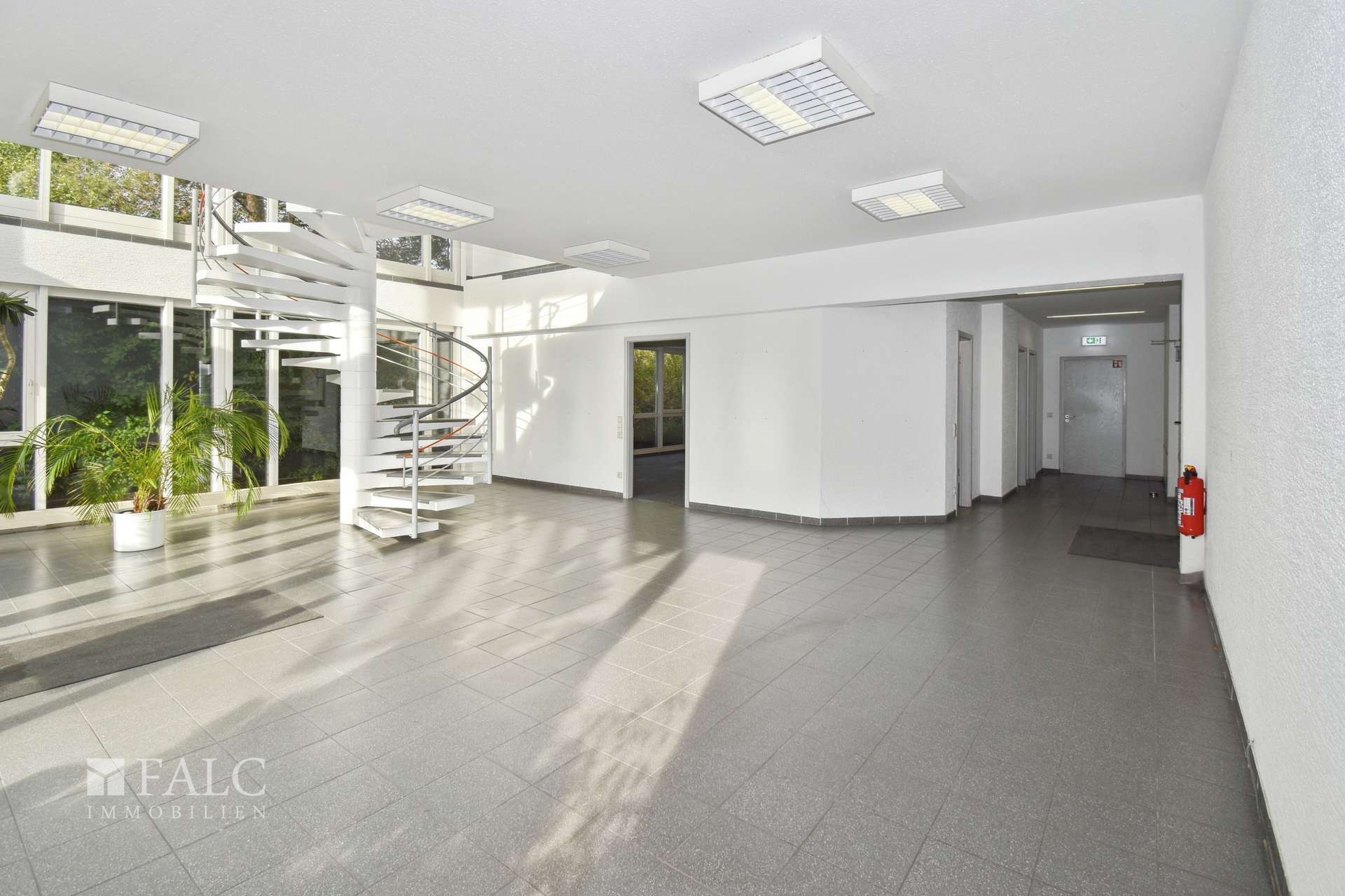 - Bürofläche auf zwei Etagen - Repräsentative Empfangsbereiche im Erdgeschoss und Obergeschoss - Großzügige Fensterfronten für helle Arbeitsräume - Sanitäranlagen auf beiden Etagen - Teeküche vorhanden - 10 PKW-Stellplätze - Optionale Lagerhalle mit ca. 248 m² und ca. 5 m Deckenhöhe zur zusätzlichen Anmietung