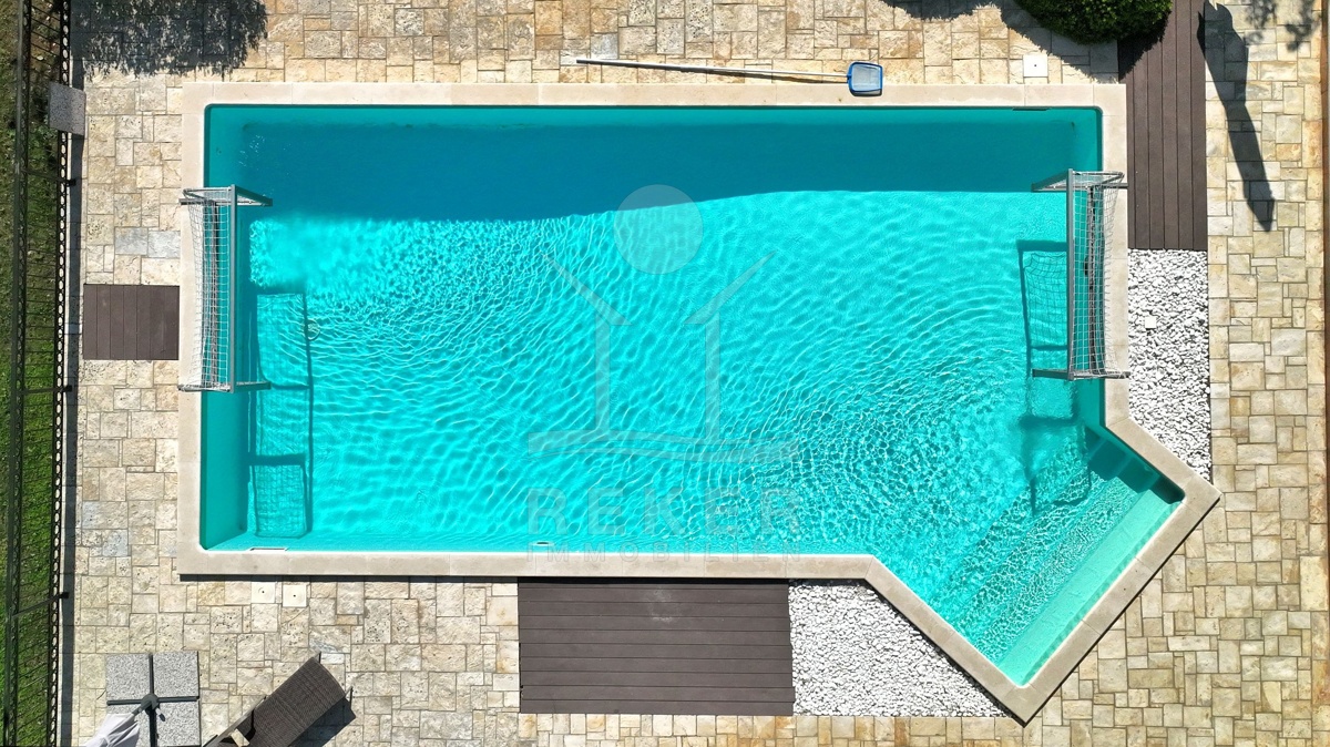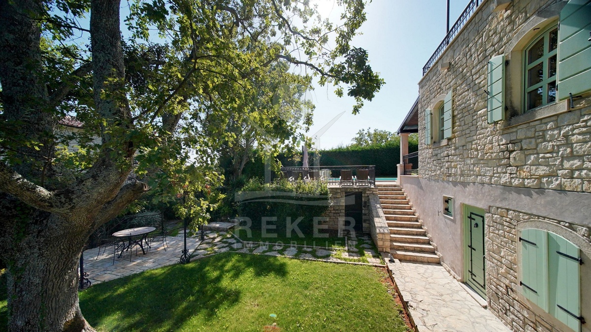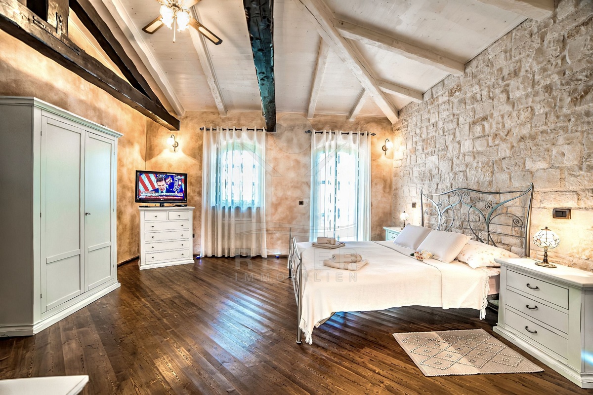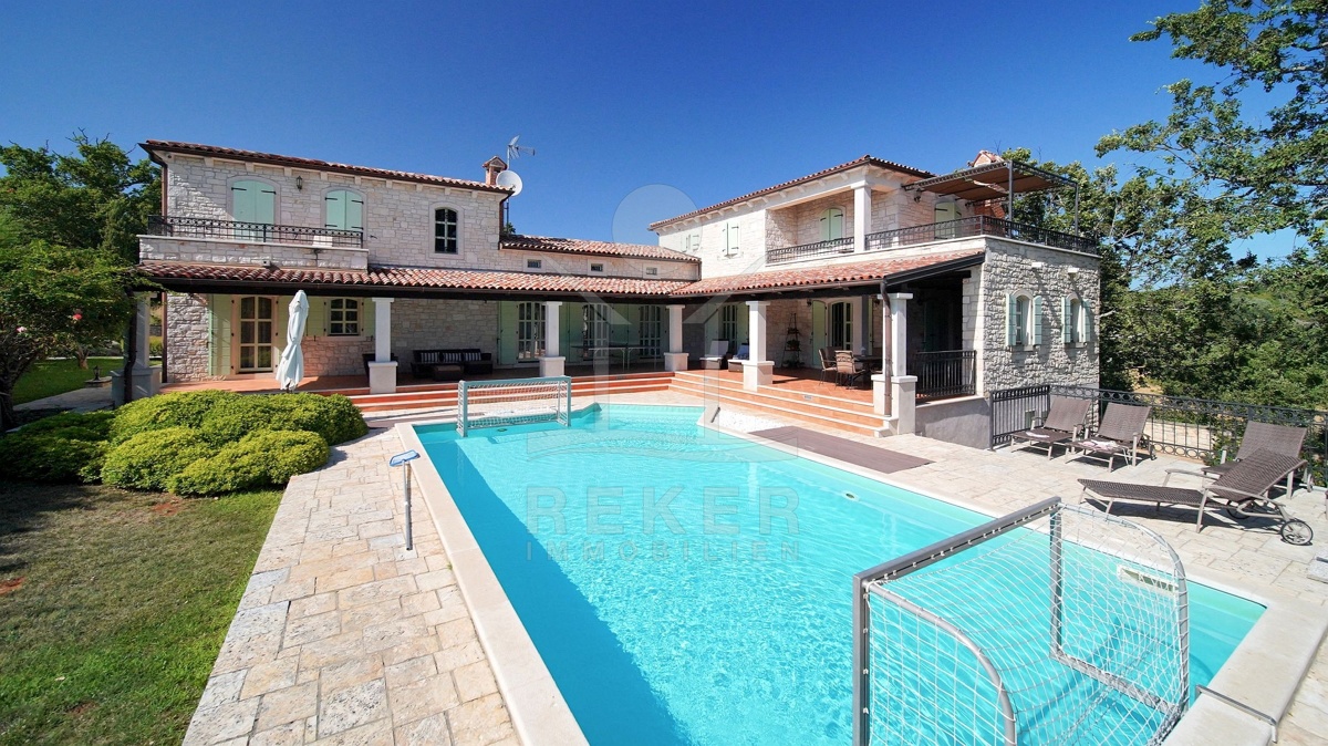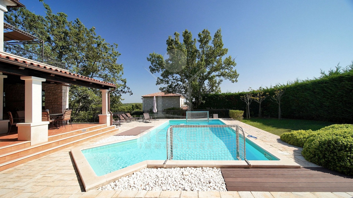 Tauchen Sie ein in die kroatische Tradition und lassen Sie sich von dieser faszinierenden 5-Sterne Luxusvilla in mediterranem Stil nahe Poreč verzaubern! Dieses traditionelle Juwel bietet Ihnen einen unvergleichlichen Aufenthalt. Genießen Sie entspannte Tage am Pool oder verbringen Sie gemütliche Abende auf der überdachten Terrasse. Die Villa beeindruckt mit ihrer außergewöhnlichen Architektur und ihrer hochwertigen Ausstattung. Die Outdoor-Küche lädt zum gemeinsamen Kochen und Essen im Freien ein. Erleben Sie den Luxus, in einem Steinhaus zu wohnen und profitieren Sie von der Nähe zu Poreč, einem der schönsten Küstenorte Istriens. Hier erwartet Sie ein Lebensstil, der Tradition und Luxus auf einzigartige Weise vereint.