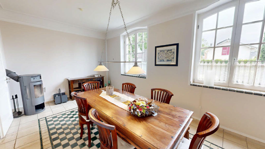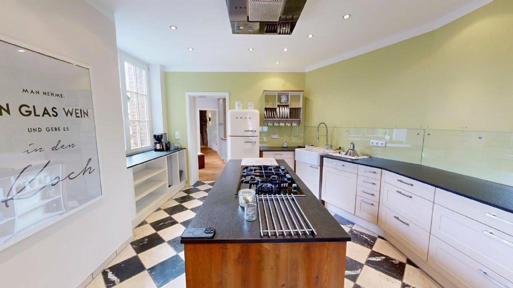 Die Innenräume begeistern nicht nur durch ihre Architektur, sondern auch durch ihre technische und baubiologische Qualität: Lehmputz an den Wänden sorgt für ein natürliches, gesundes Raumklima, teilweise echter Stuck verleiht den Räumen besonderen Glanz.