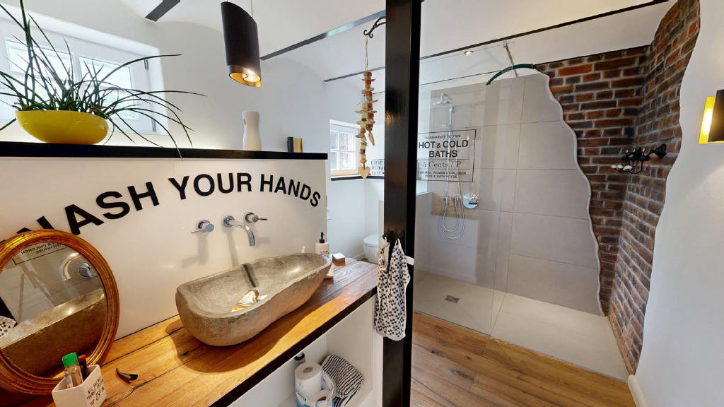 Rechts befindet sich das Wohnhaus, das mit viel Fingerspitzengefühl modernisiert wurde und dennoch seine historische Seele bewahrt hat: