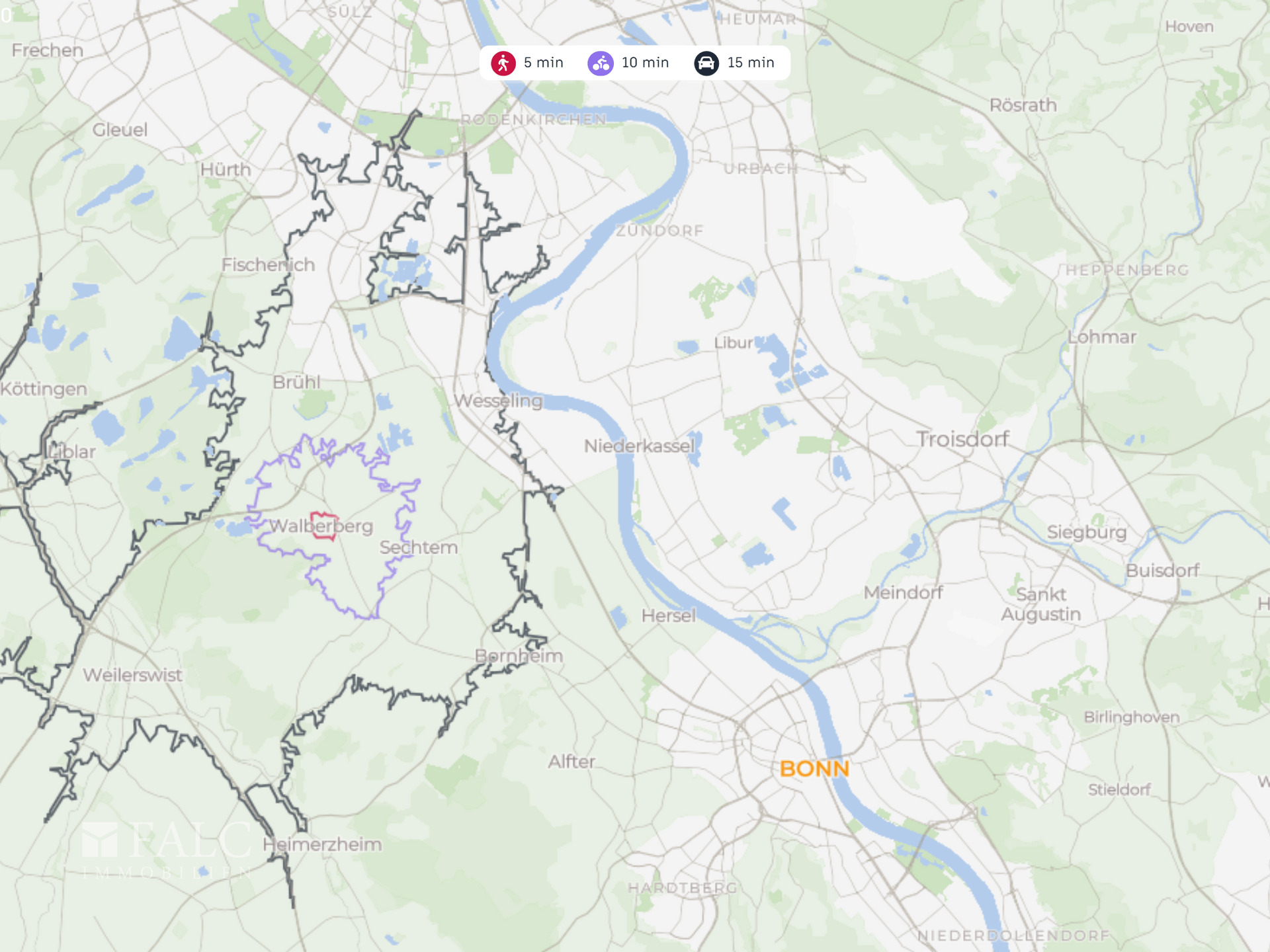 Die Anbindung an den öffentlichen Nahverkehr ist komfortabel. Die Bushaltestellen Kalkstraße und Bornheim Mühlenstraße sind fußläufig erreichbar, der Bahnhof Dersdorf liegt in ca. 1 km Entfernung. Für Pendler und Ausflüge mit dem Auto sind mehrere Autobahnauffahrten zur A 555 in wenigen Kilometern erreichbar.