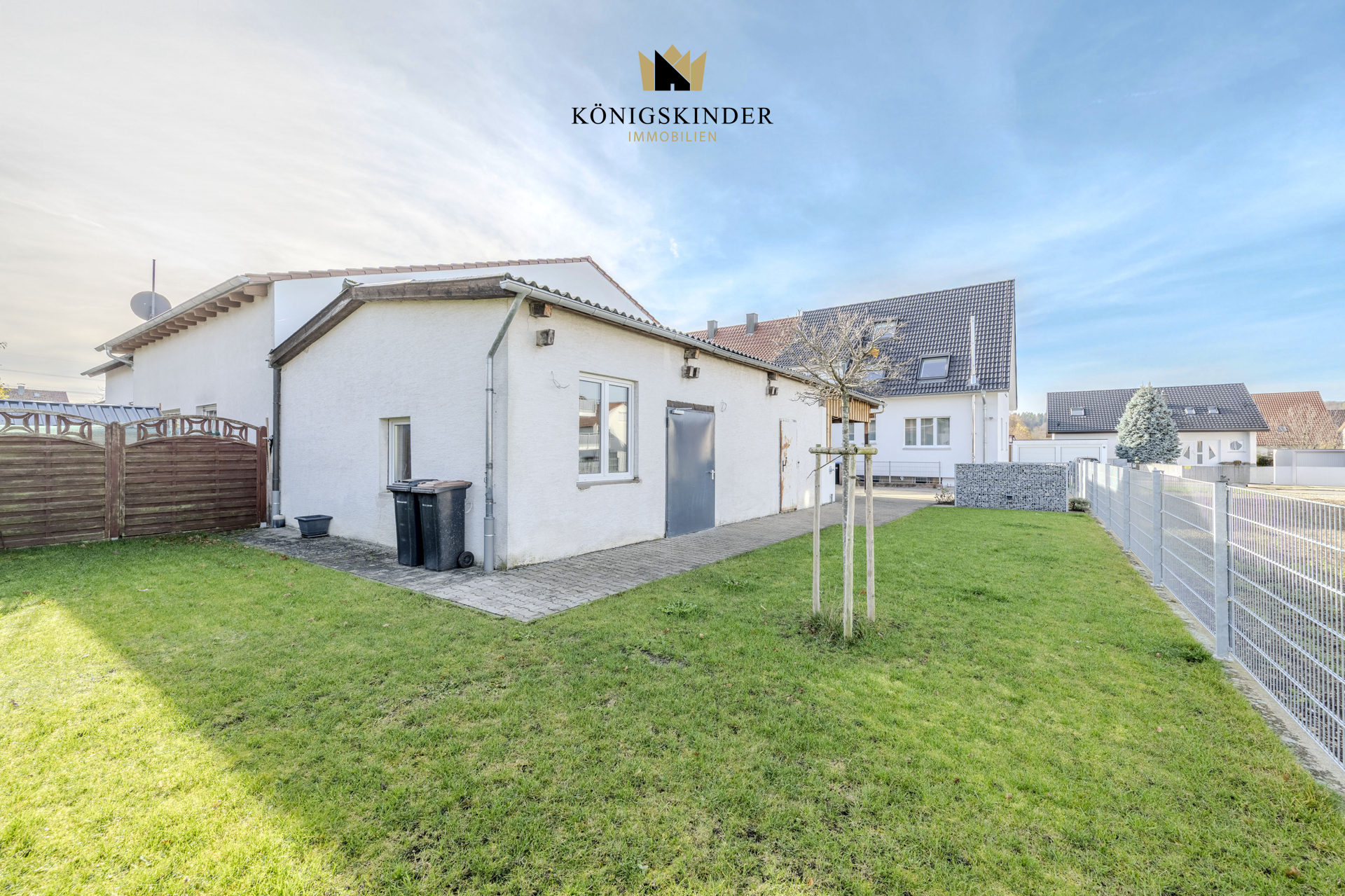 Der Außenbereich besticht durch einen pflegeleichten Garten und eine große Scheune, die mit ihrer Flexibilität begeistert. Ob als Unterstellplatz für Motorräder und Fahrräder, als Werkstatt, Atelier oder Lagerfläche – hier ist fast alles denkbar. Ein isolierter Raum eignet sich ideal als Getränkelager, während der überdachte Freisitz mit Wasseranschluss wie geschaffen ist für eine Outdoor-Küche oder gesellige Abende im Freien.