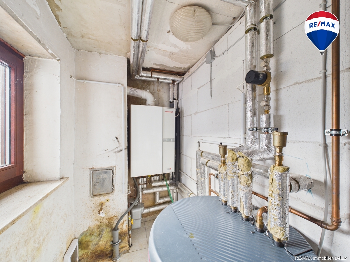 Im Erdgeschoss befindet sich außerdem ein modernisiertes Badezimmer mit Dusche, das im Jahr 2013 erneuert wurde, sowie der Heizungsraum. Die Heizungsanlage wurde ebenfalls 2013 vollständig erneuert und sorgt für eine zuverlässige und effiziente Wärmeversorgung.