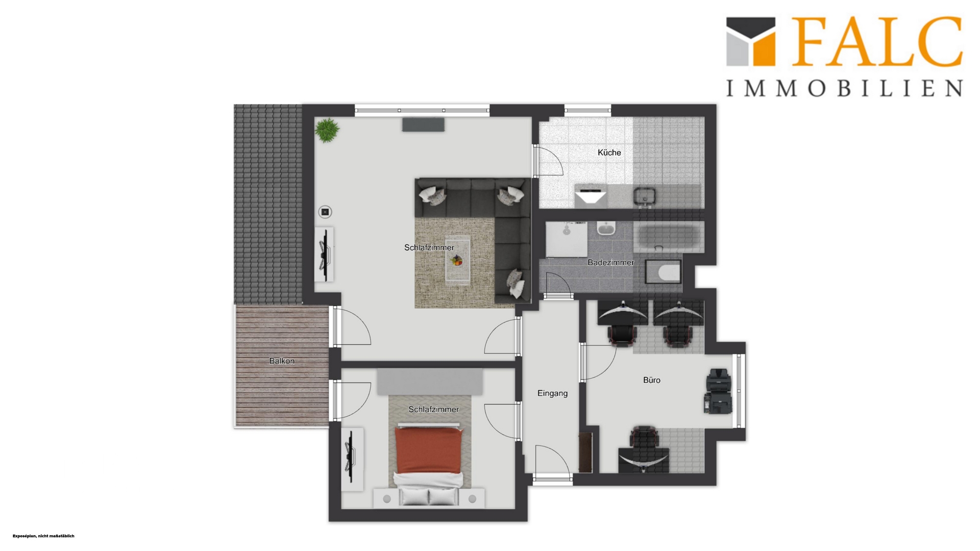 Die gelungene Kombination aus klarer Raumaufteilung, hellen Wohnbereichen und direktem Balkonzugang aus zwei Zimmern unterstreicht den besonderen Wohnwert dieser Dachgeschosswohnung.