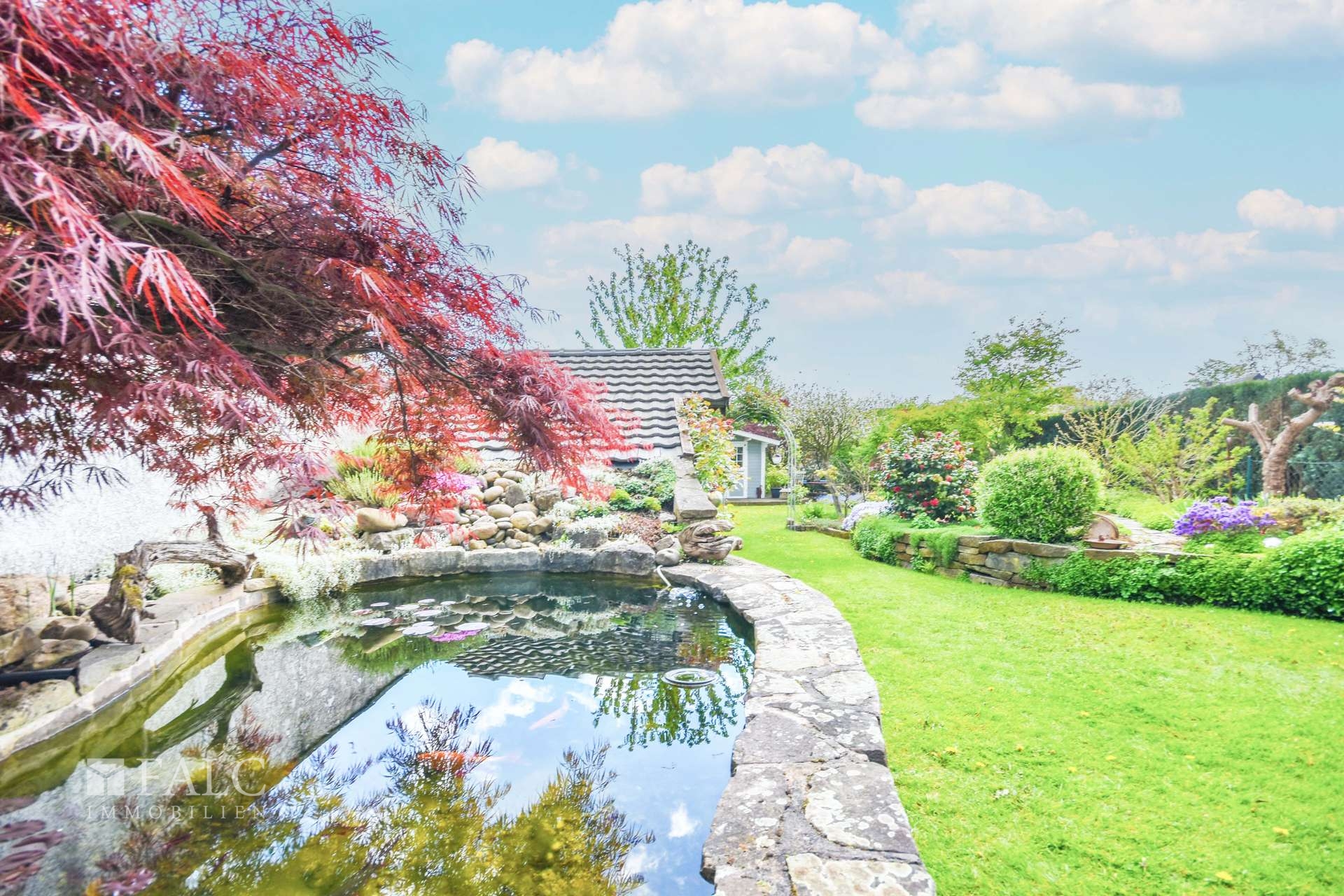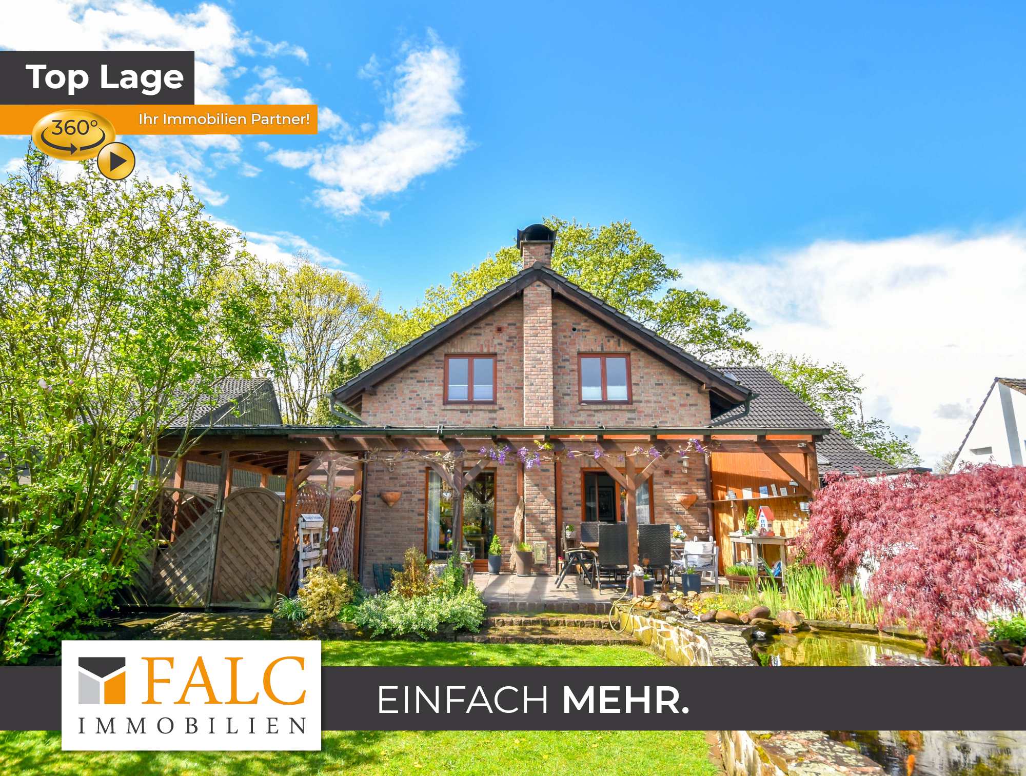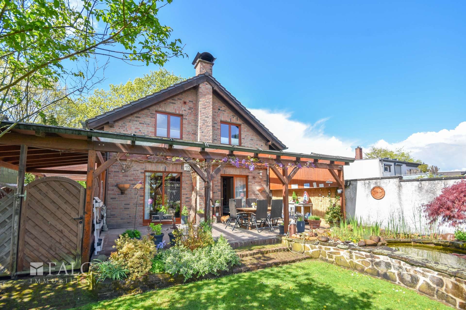 Außenbereich & Garten & Stellplätze + Wunderschön angelegter, sehr gepflegter Garten mit vielfältigen Rückzugsbereichen + Großzügige, ca. 32 m² überdachte Terrasse mit Glasdach + Naturverbundener Gartenteich (2011) mit Sumpfzone und heimischem Fischbestand + Zwei Gartenhäuser, davon eines (2020) hochwertig als Aufenthalts- bzw. Partyräumlichkeit ausgebaut + Liebevoll gestaltete Außenanlage mit hoher Aufenthaltsqualität und Privatsphäre + Carport mit überdachtem Einfahrtsbereich (ca. 1/3 Glasüberdachung) – komfortabel und wettergeschützt + Zwei zusätzliche Stellplätze direkt am Haus vorhanden