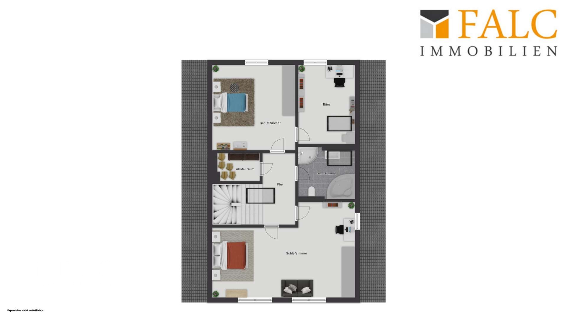 Raumaufteilung + 3-4 Schlafzimmer mit flexibler Nutzungsmöglichkeit + Großes Kinderzimmer mit geringem Aufwand in ein weiteres Schlafzimmer teilbar + Separates Homeoffice vorhanden + Durchdachte, familienfreundliche Raumstruktur mit großzügigem Wohngefühl